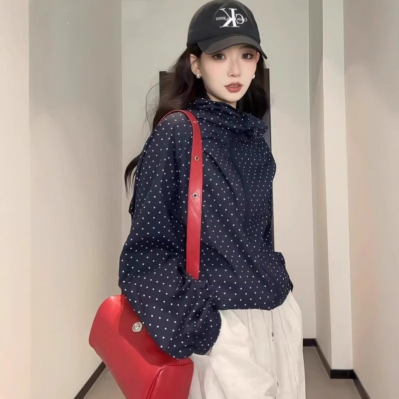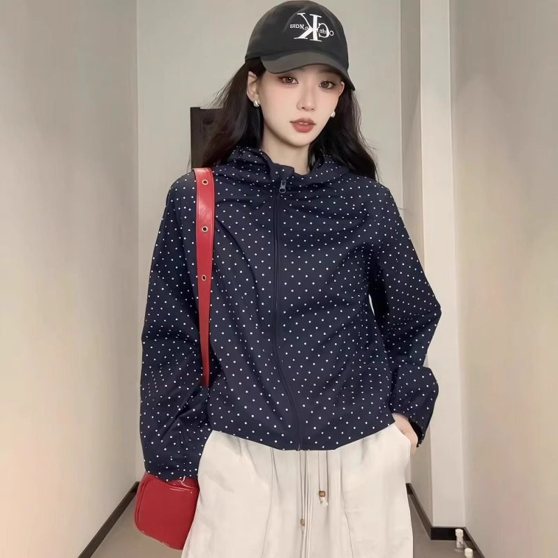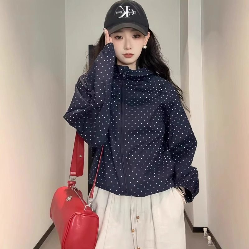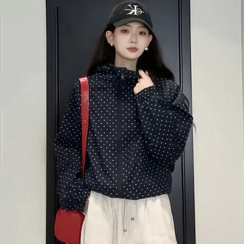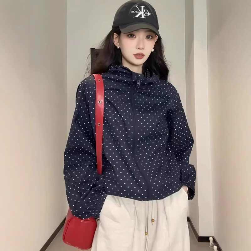 波點連帽沖鋒衣防曬外套女夏日穿搭爆款寬鬆休閒薄款氣質開衫上衣