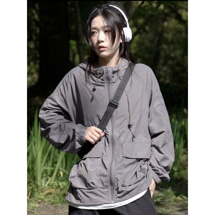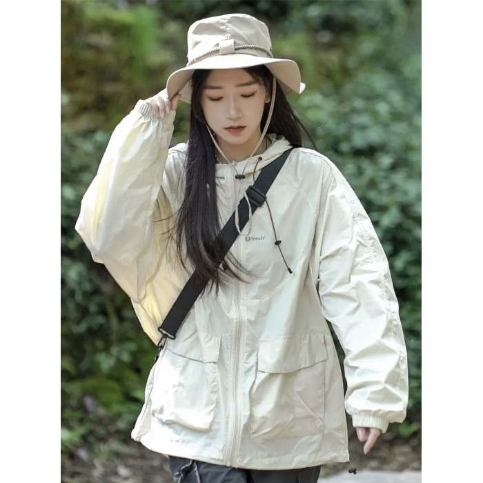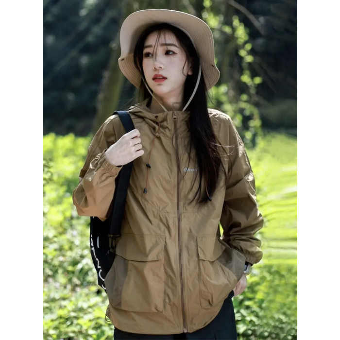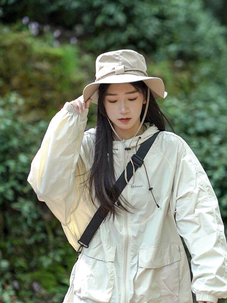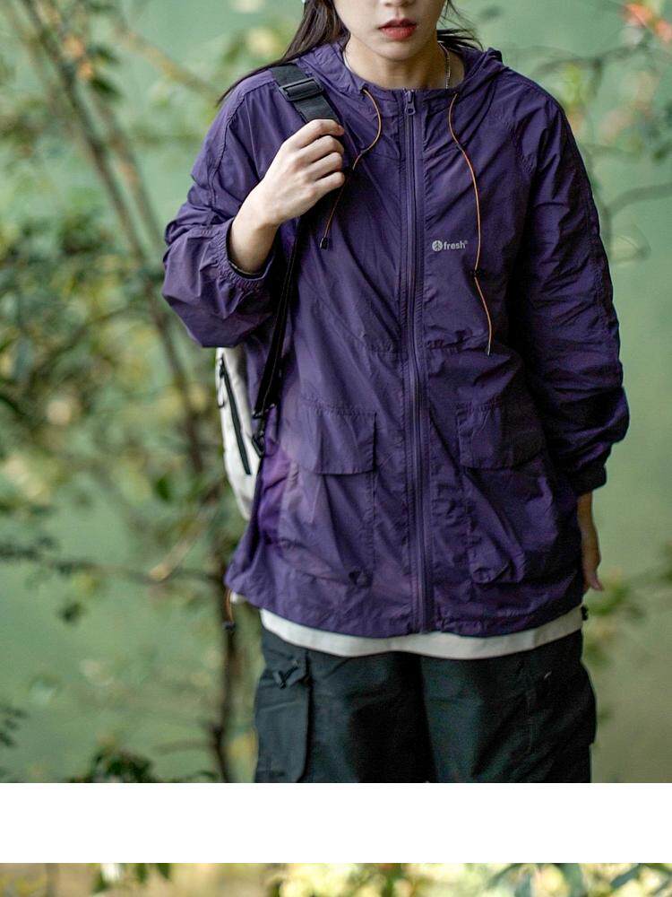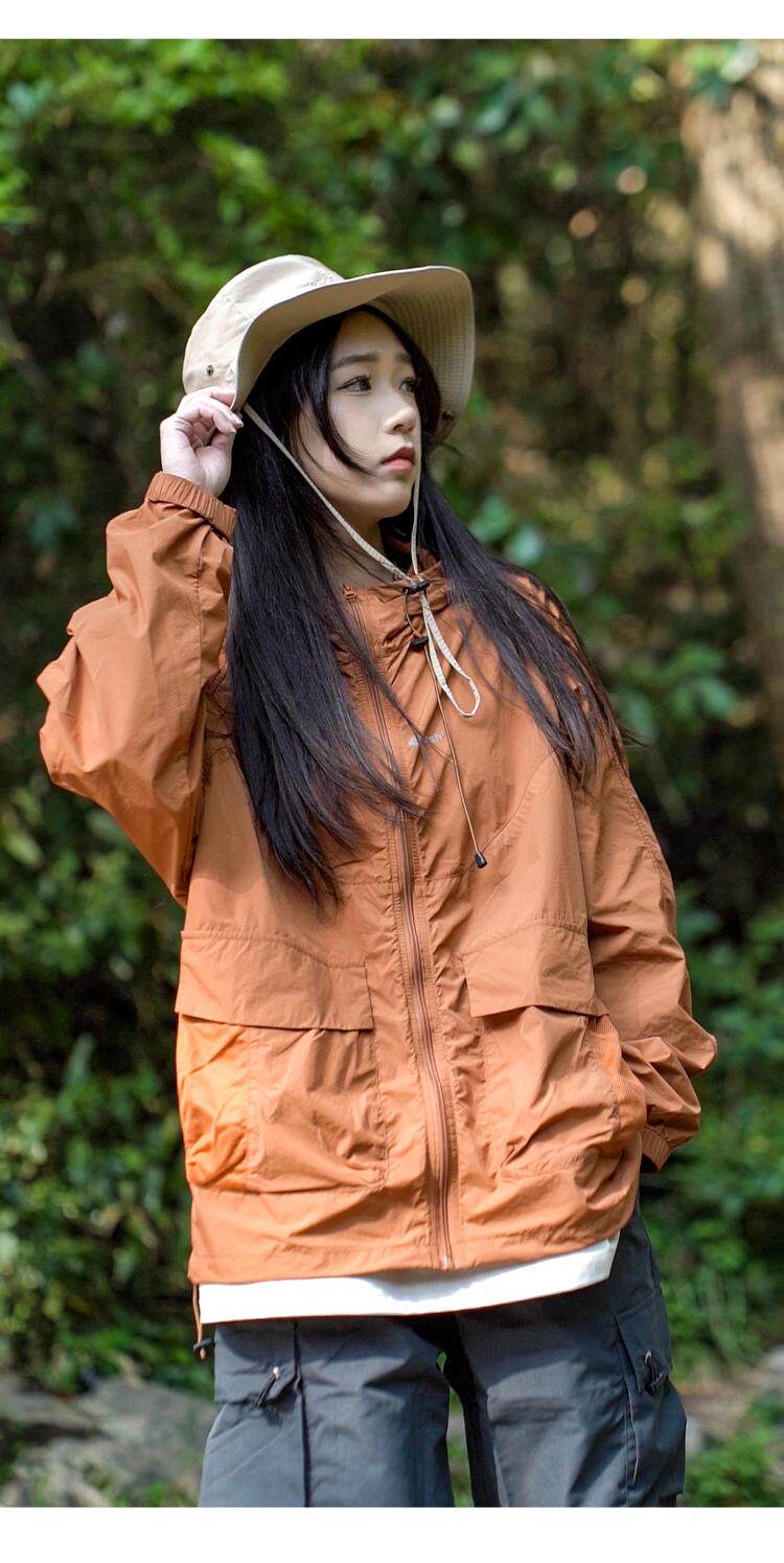 男女同款山系涼感運動防曬衣女夏季輕薄透氣寬鬆戶外沖鋒衣外套潮