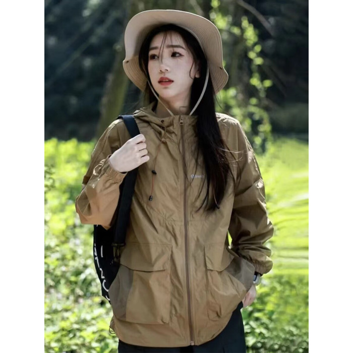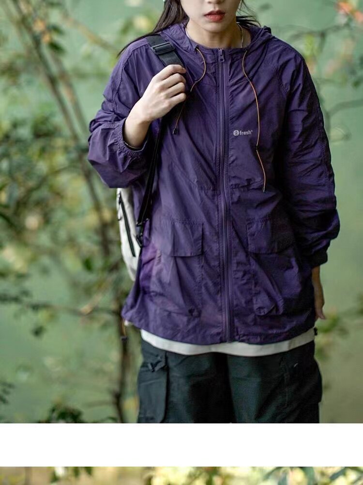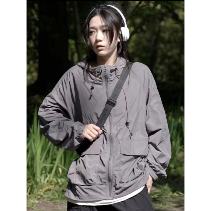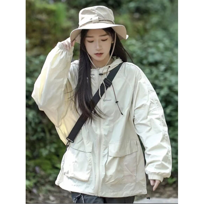 山系男女同款工裝運動防曬衣女夏季輕薄透氣寬鬆戶外沖鋒衣外套潮