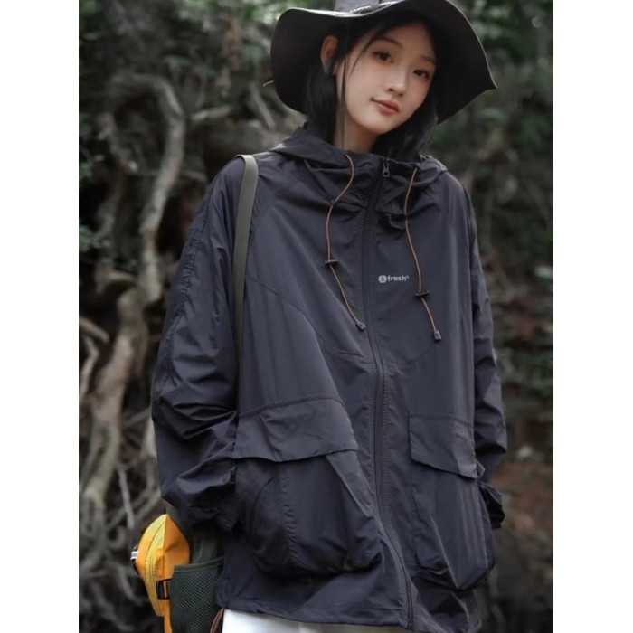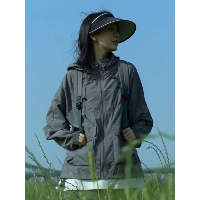 UPF50+錦綸原紗輕薄透氣涼感大碼夏季防曬衣寬鬆戶外防曬服女外套