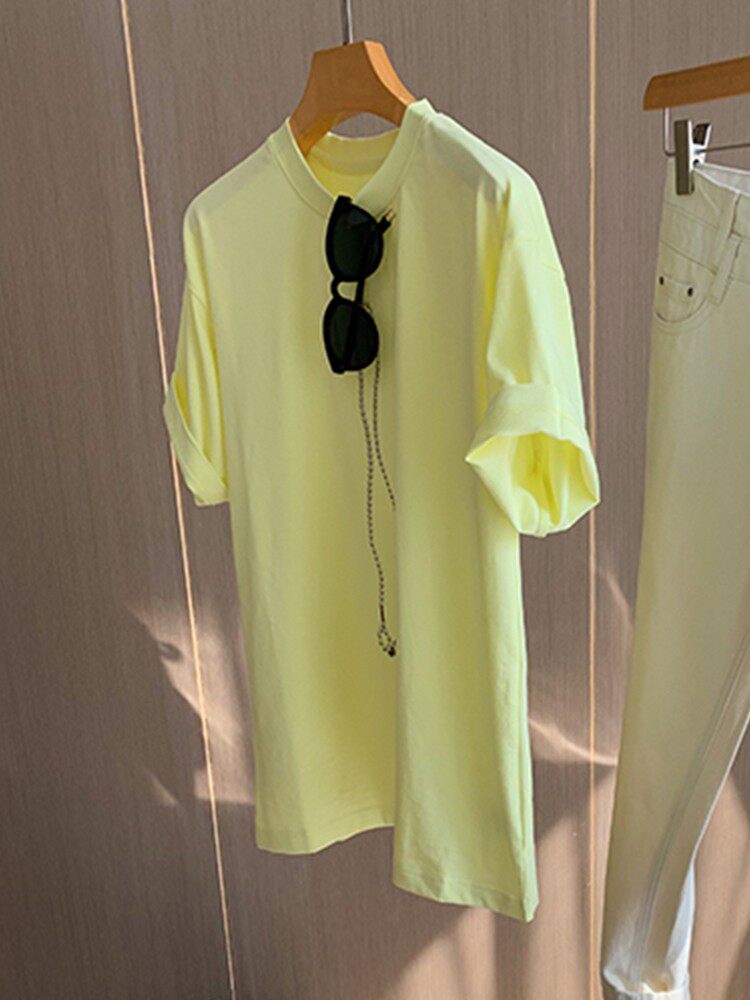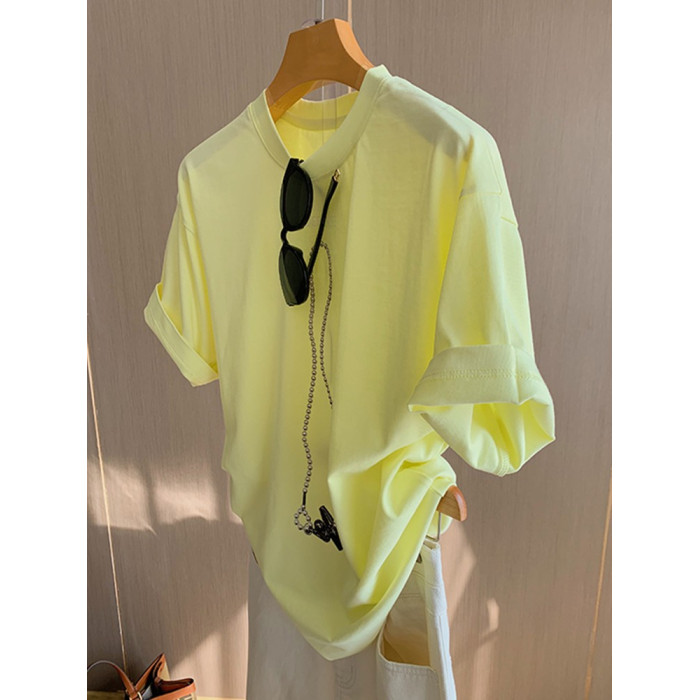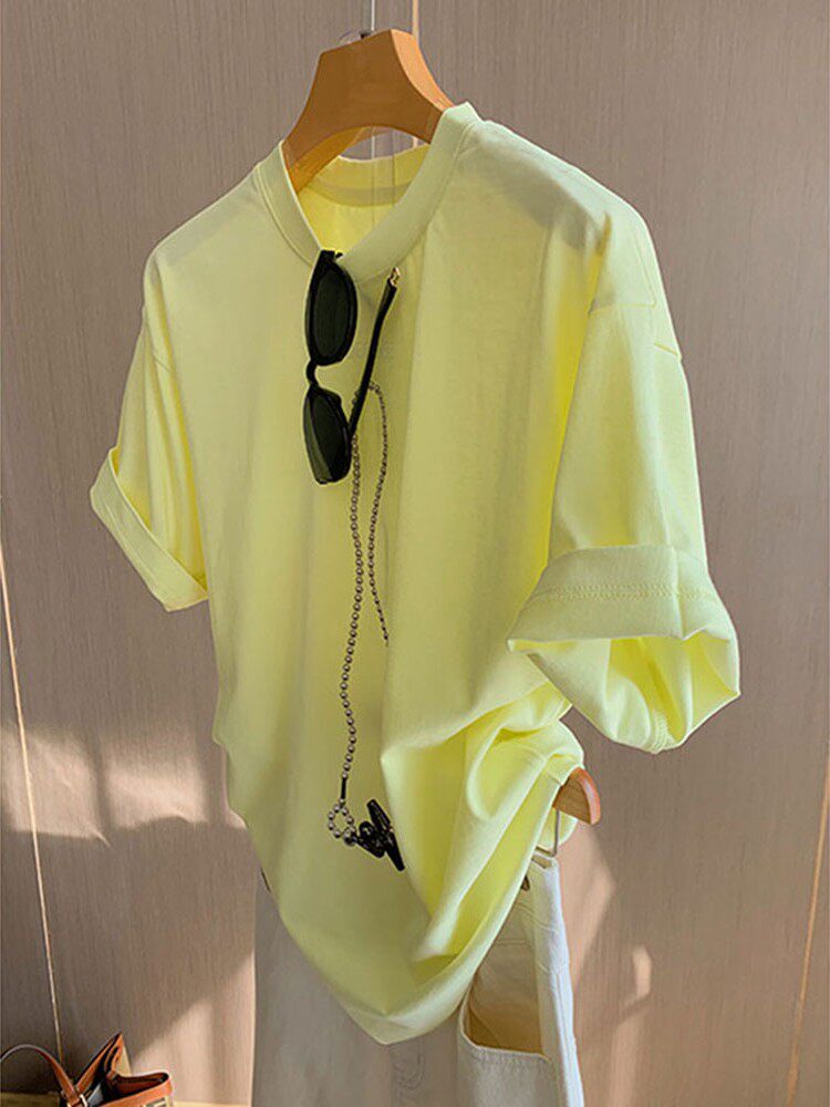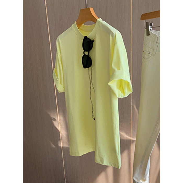 今年流行漂亮奶黃色短袖T恤女夏季新款溫柔減齡上衣百搭