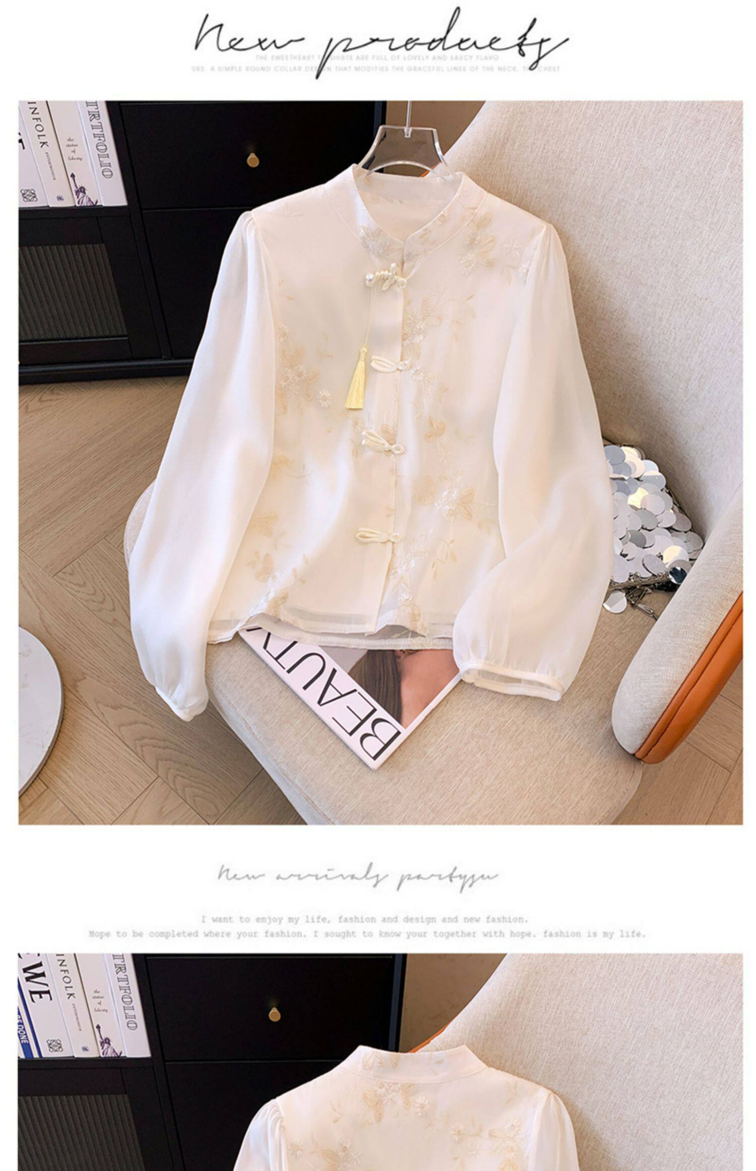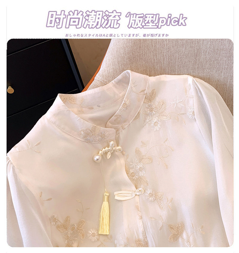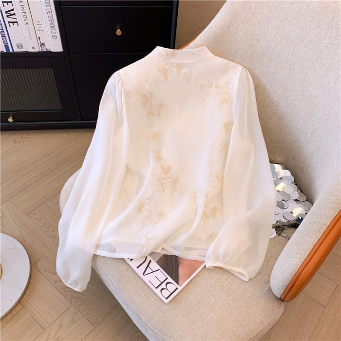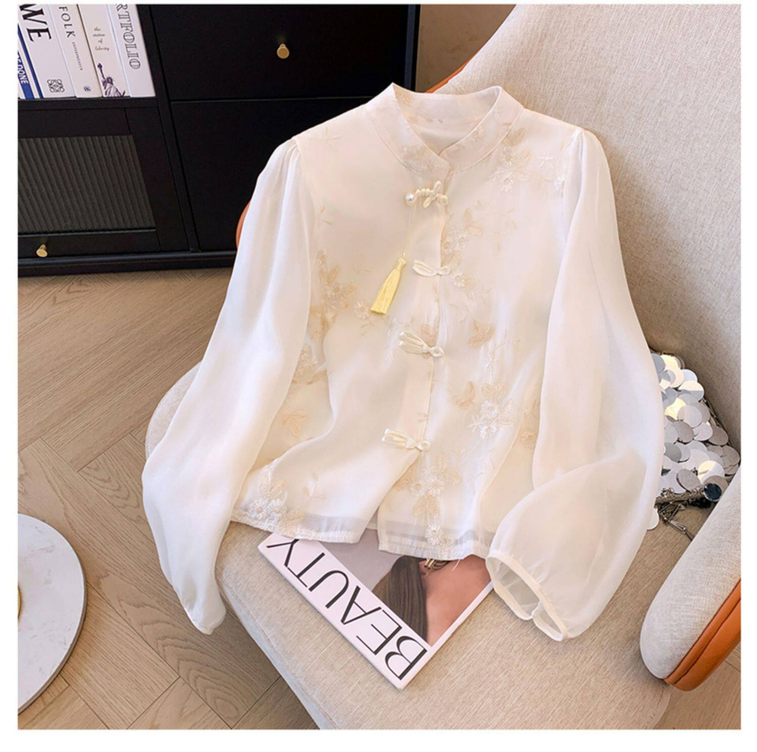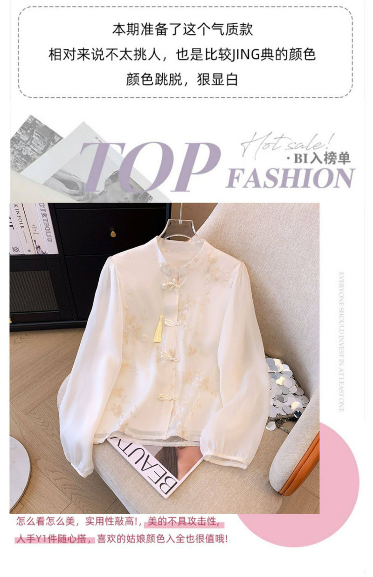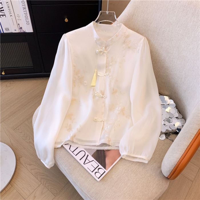 專櫃撤廻剪標新中式國風立領刺綉襯衫女春季新款設計小衆別致上衣