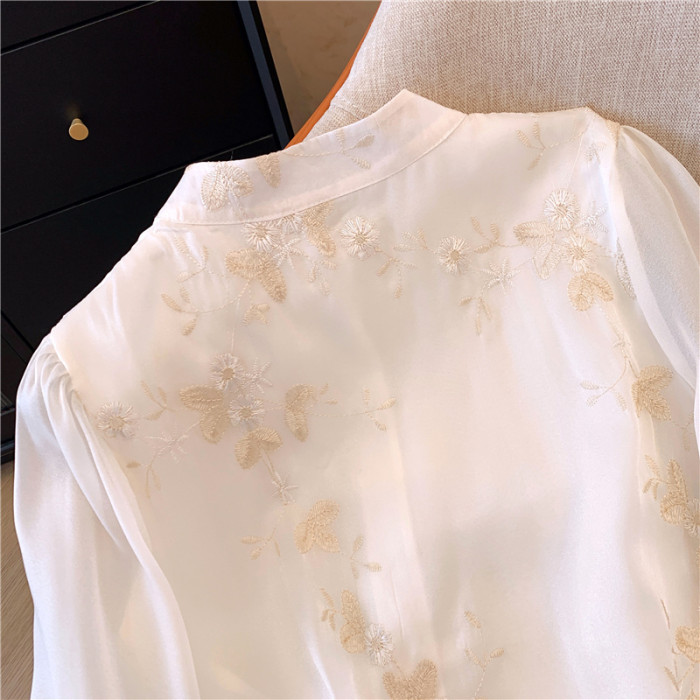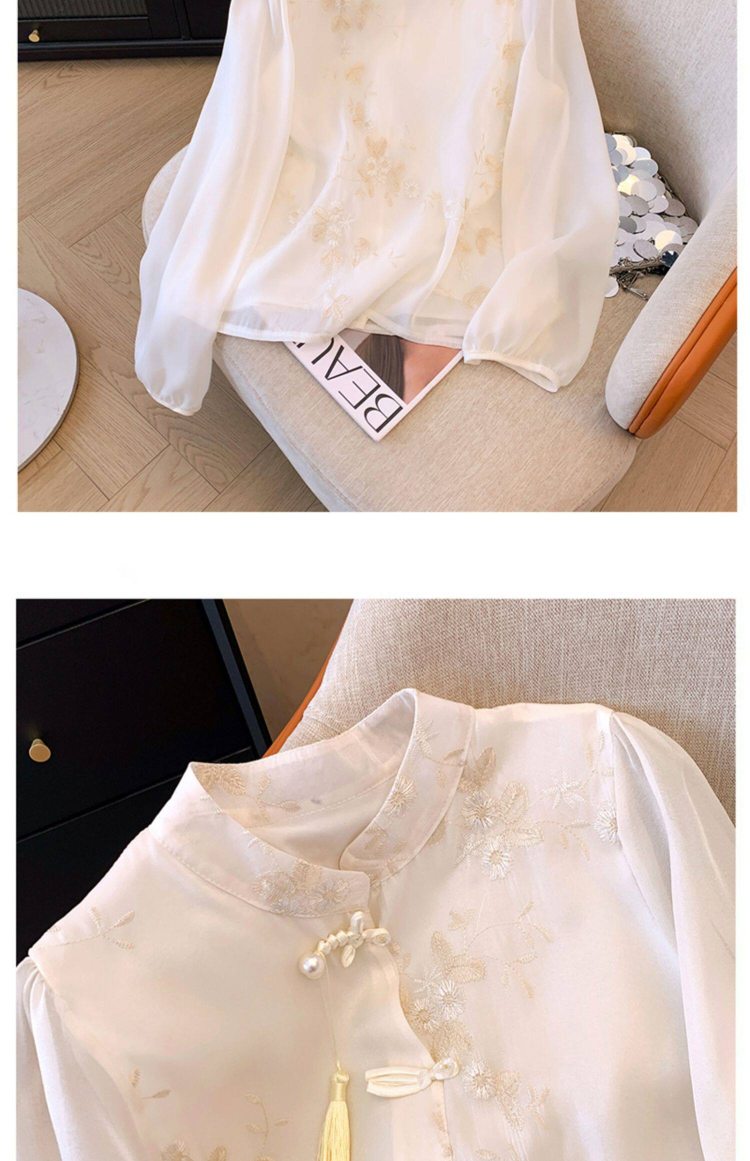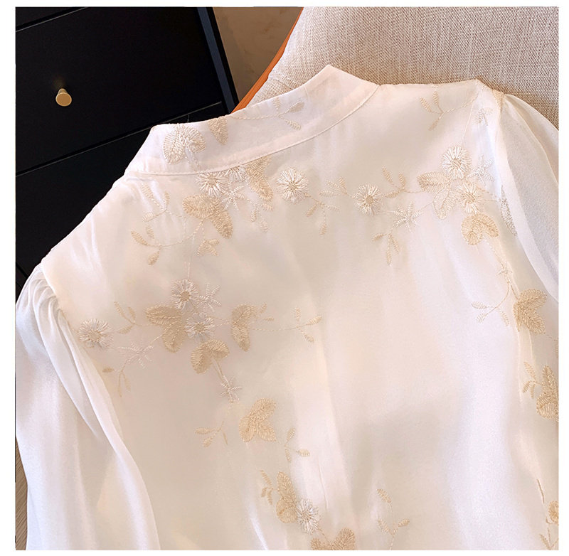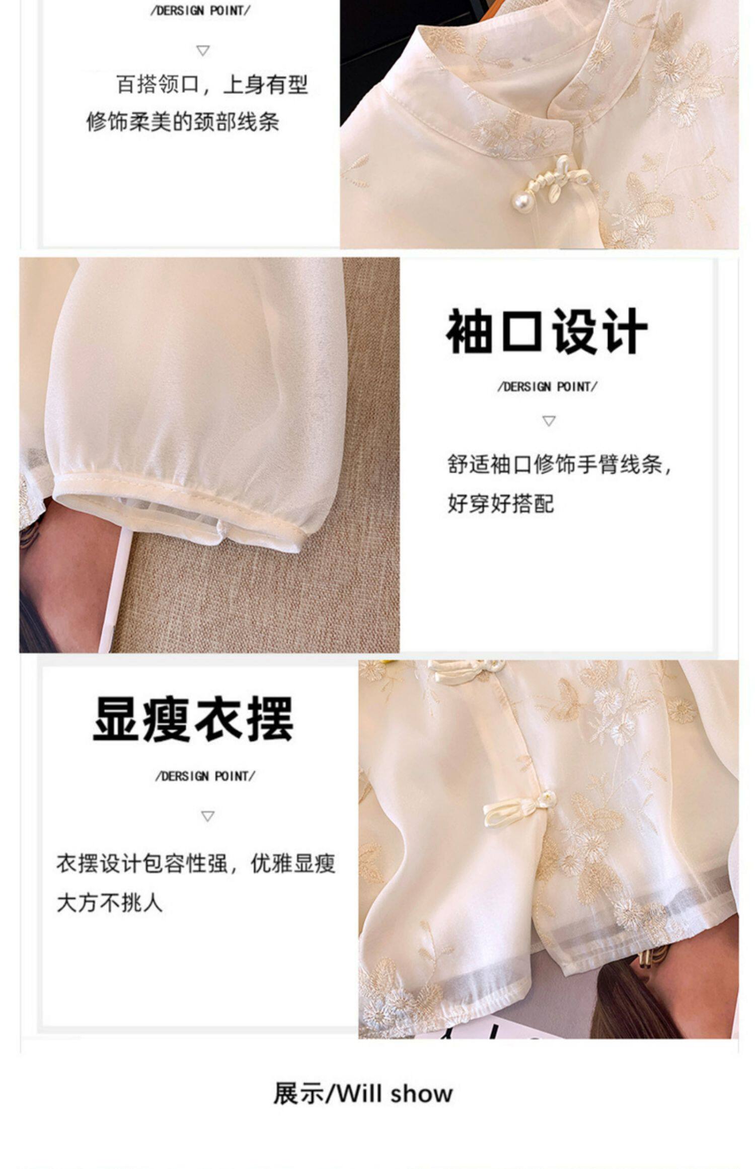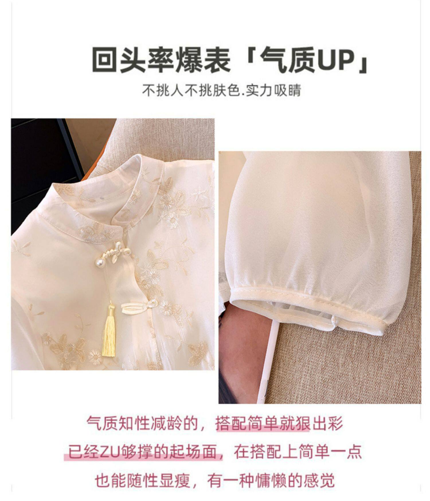 專櫃撤廻剪標新中式國風立領刺綉襯衫女春季新款設計小衆別致上衣