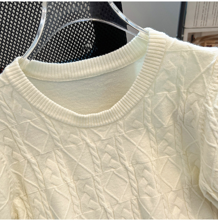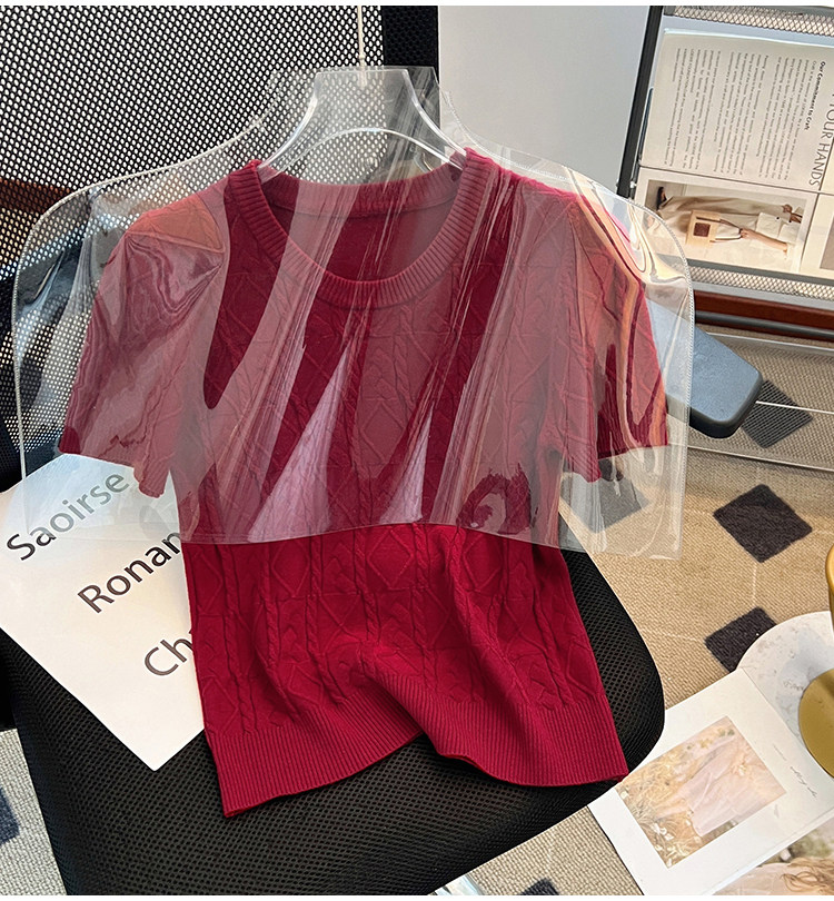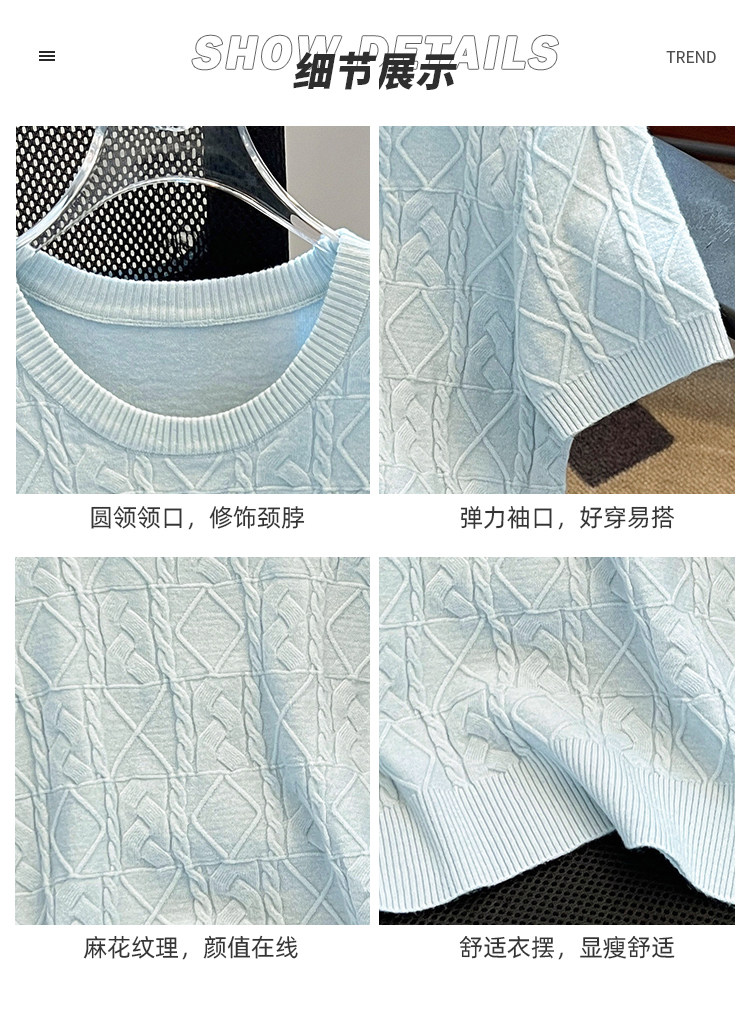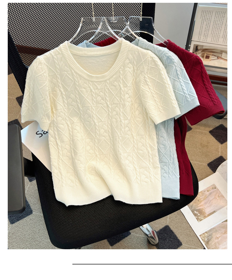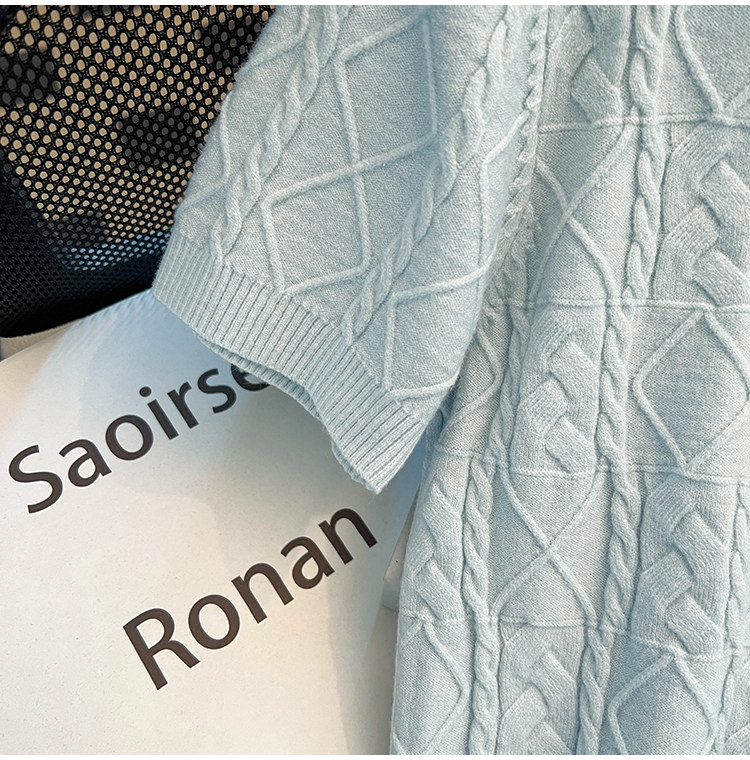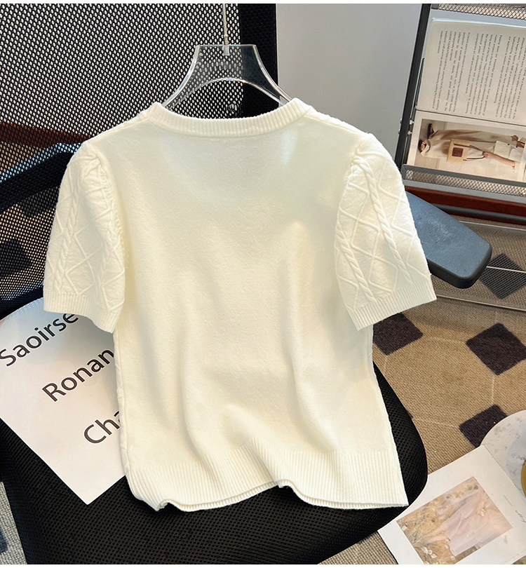 專櫃撤廻剪標復古螺紋圓領短袖針織衫女夏季新款百搭收腰短款上衣