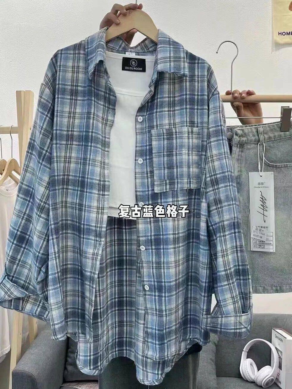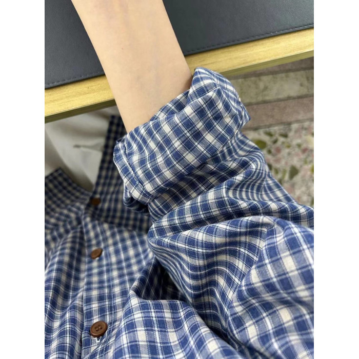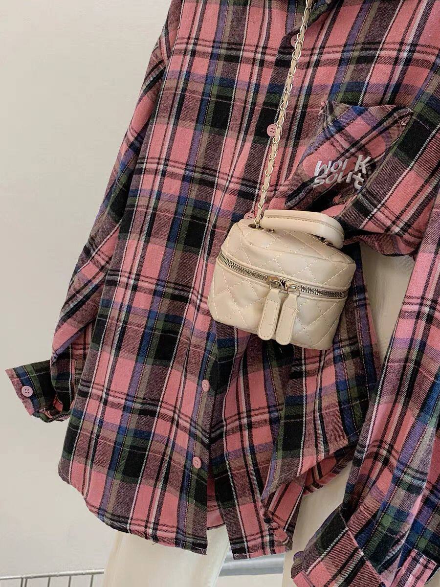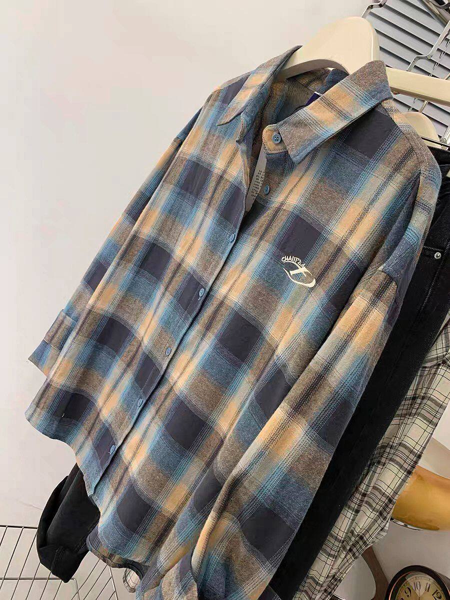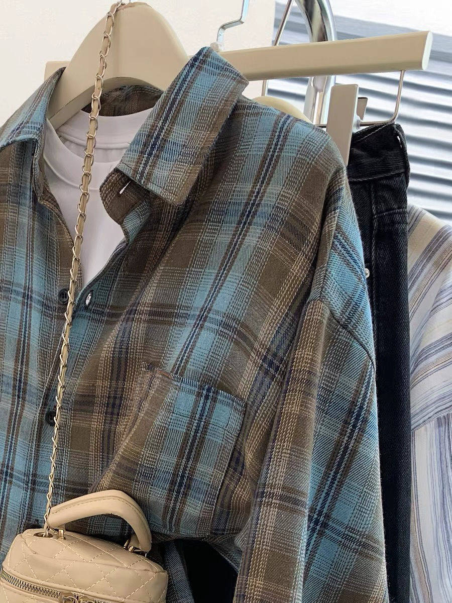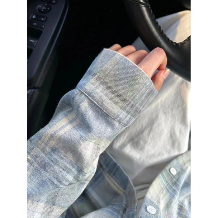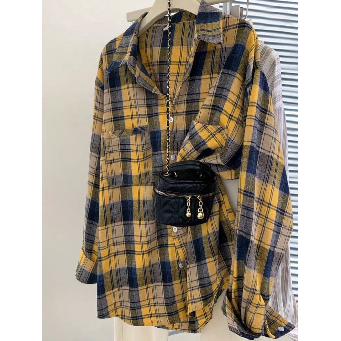小個子韓系純棉格子襯衫女寬鬆慵懶風遮肉長袖襯衣外穿上衣ins潮
