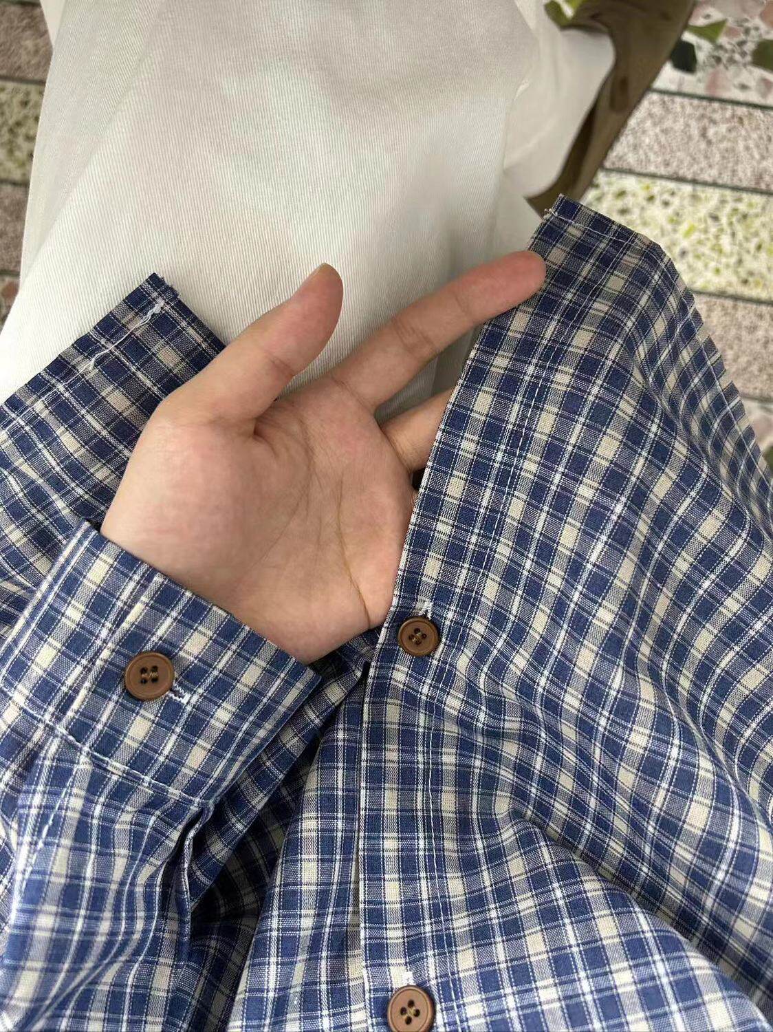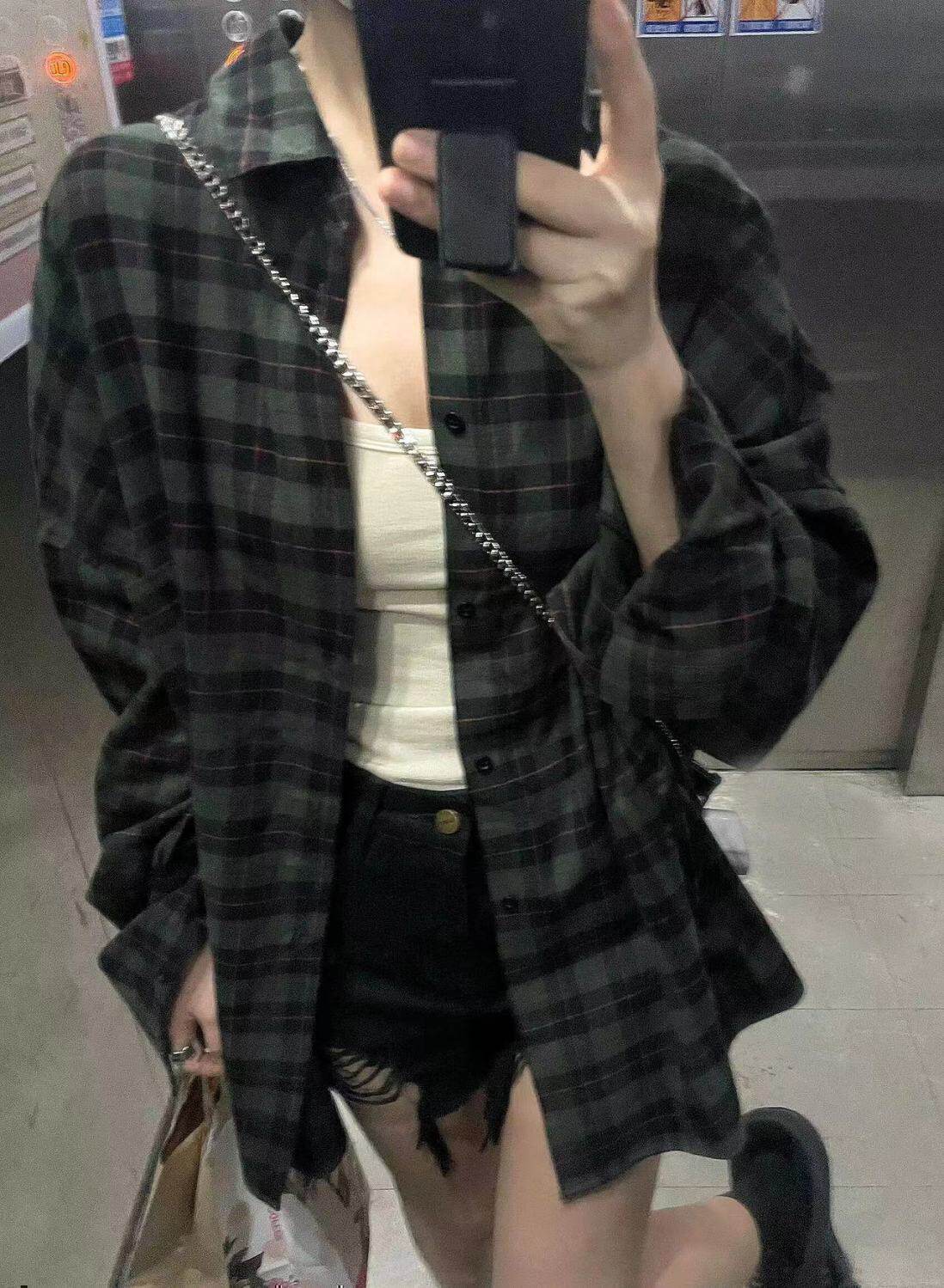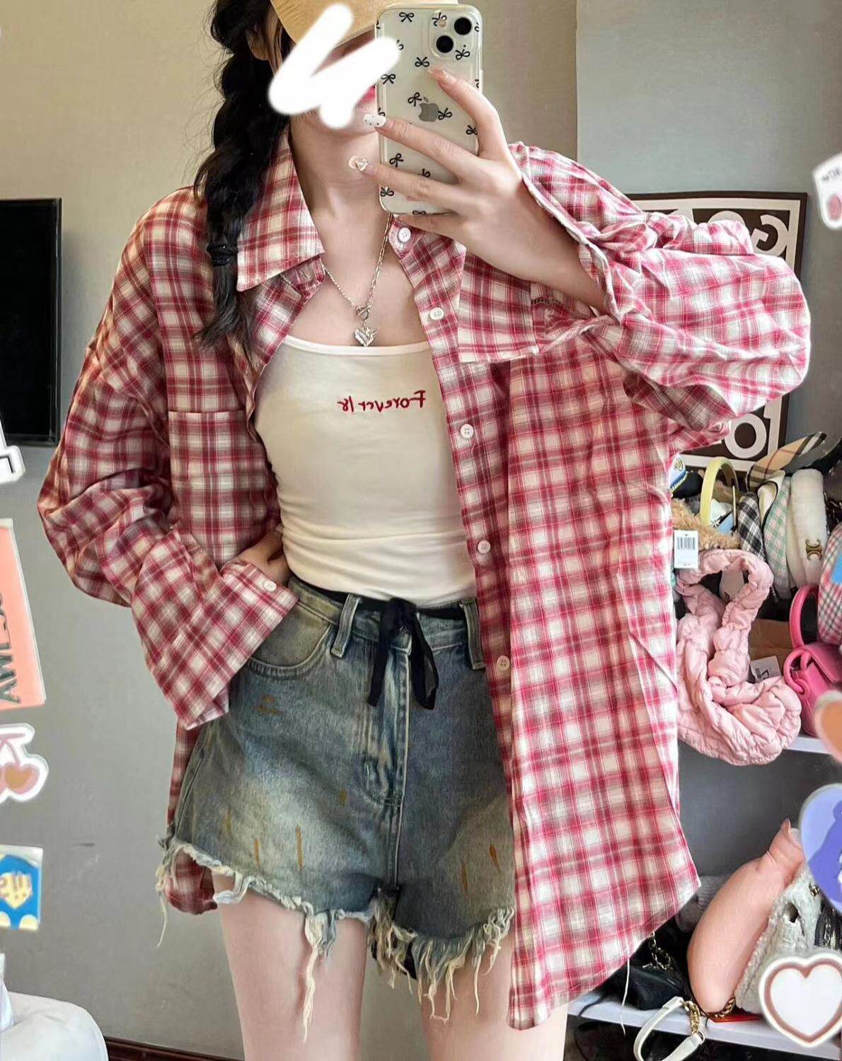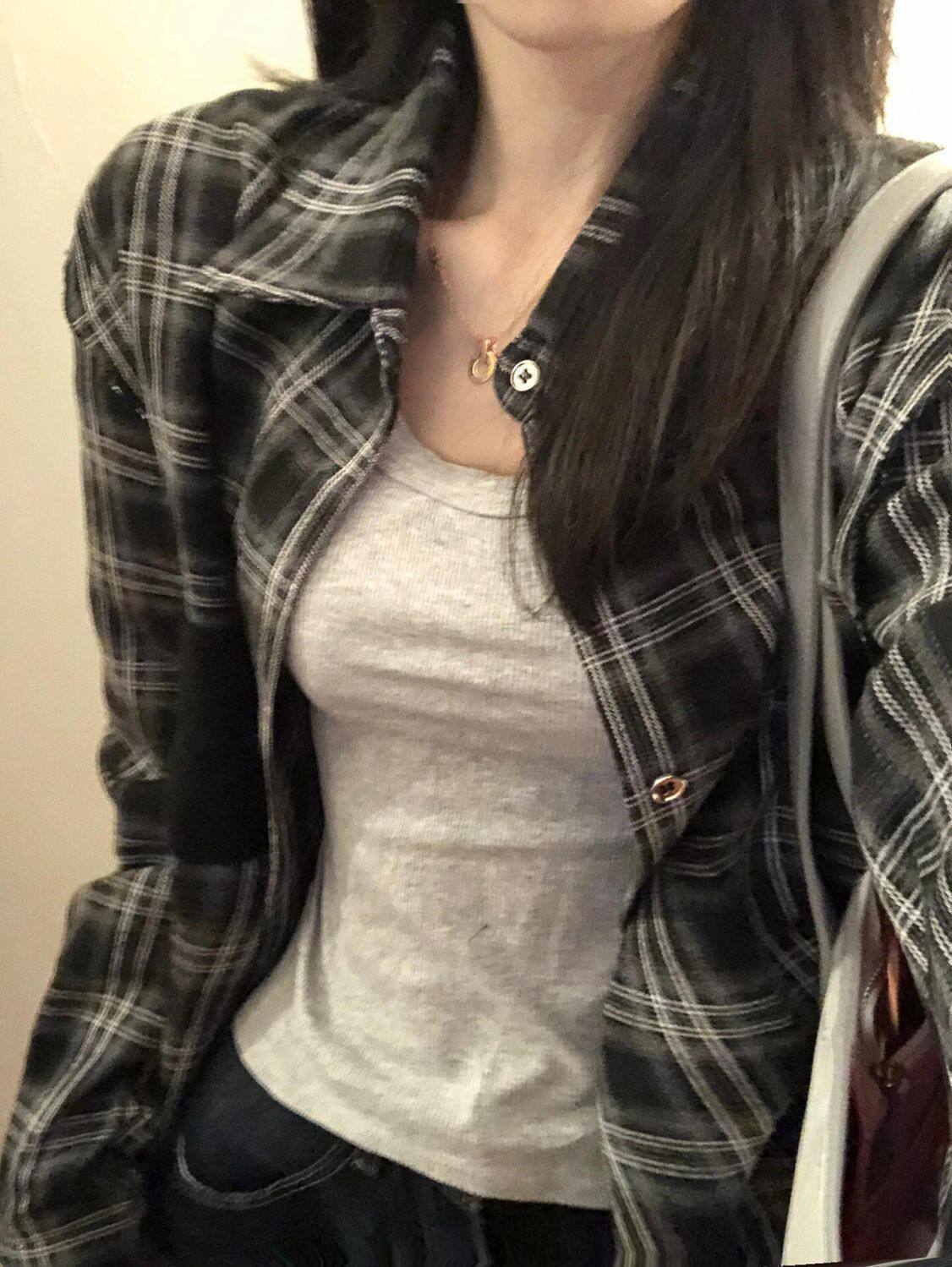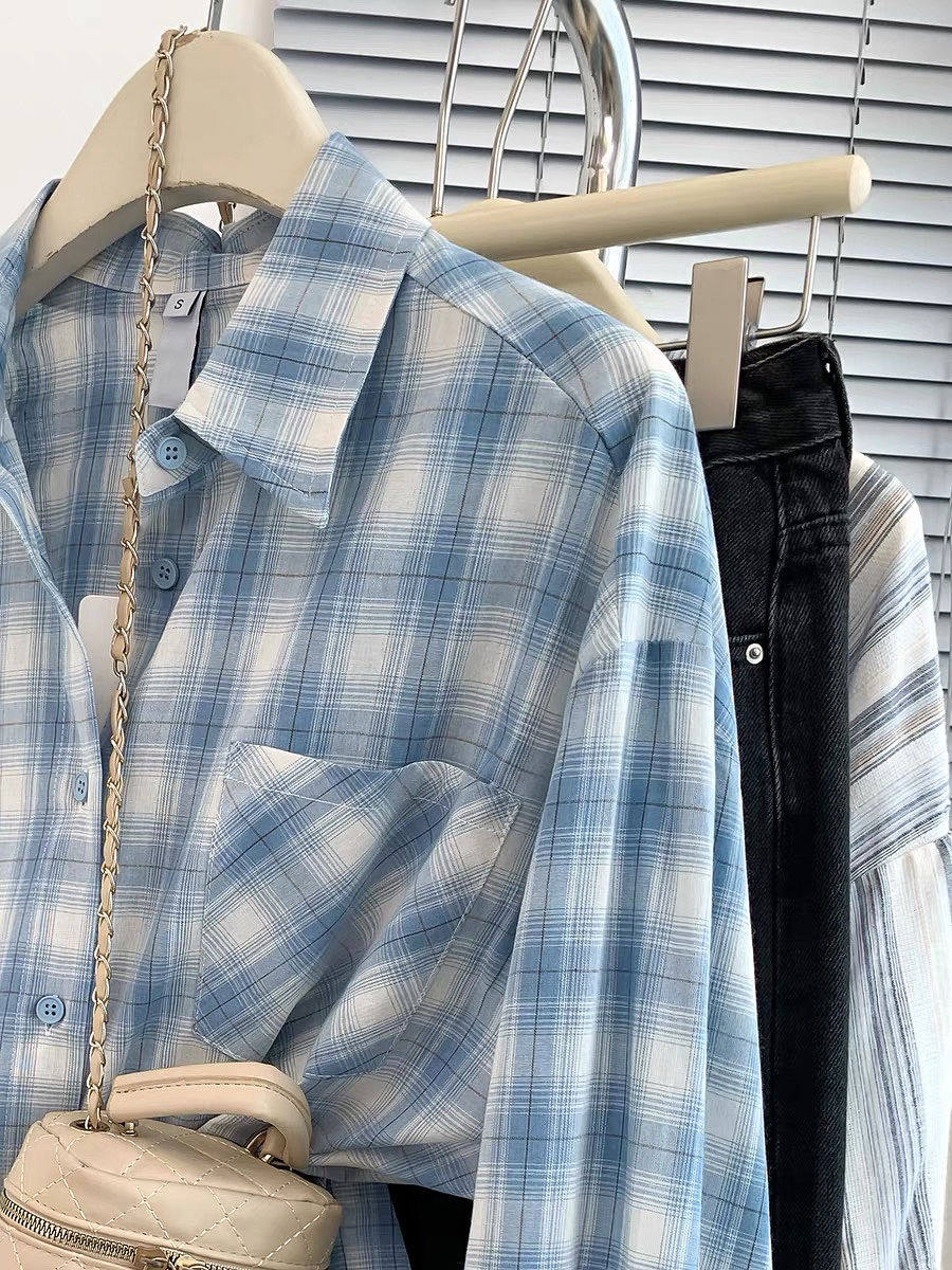 小個子韓系純棉格子襯衫女寬鬆慵懶風遮肉長袖襯衣外穿上衣ins潮