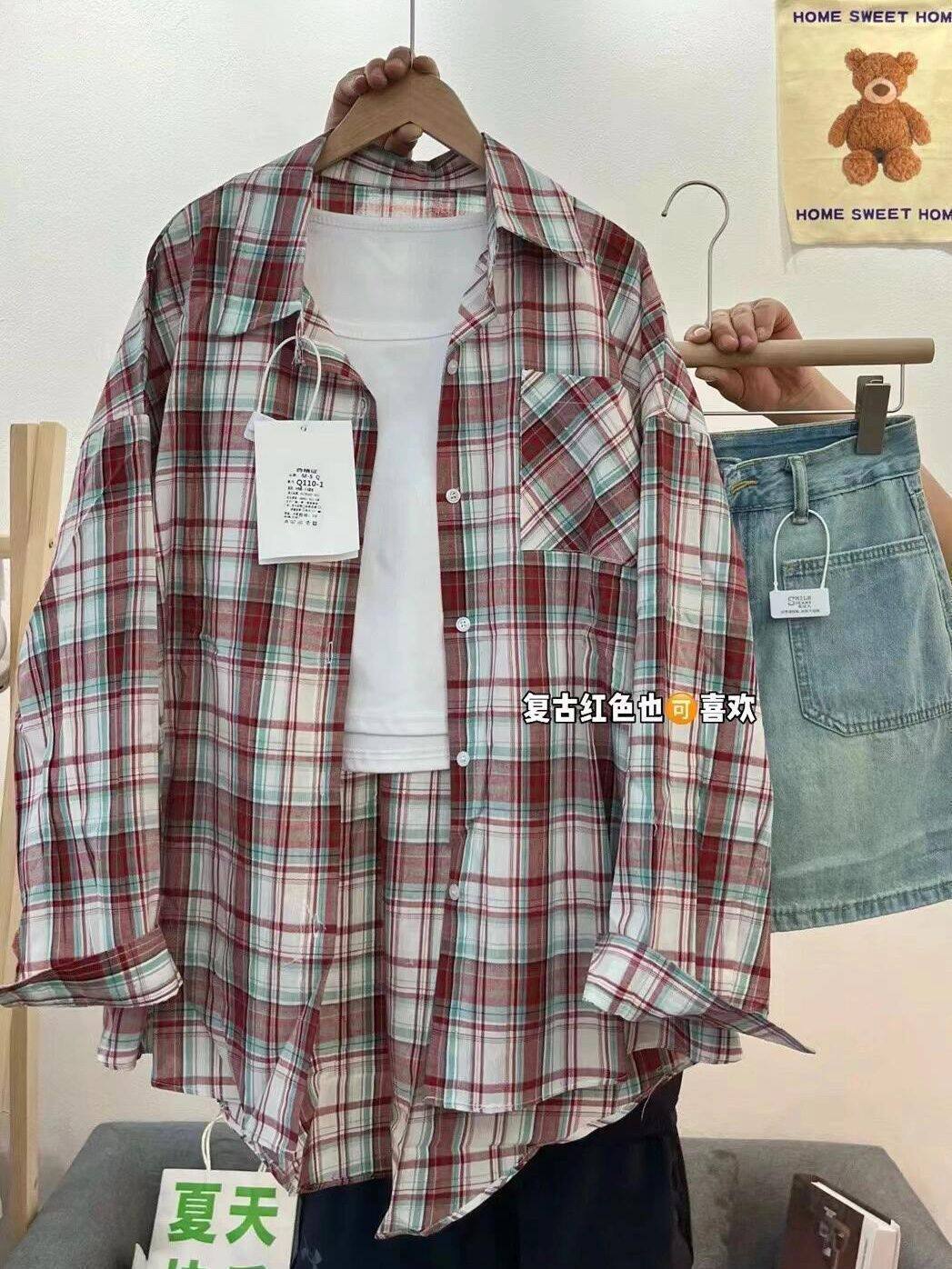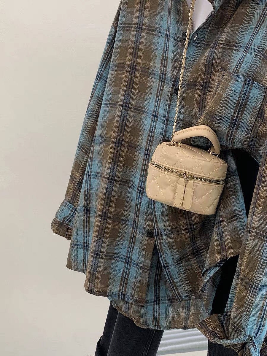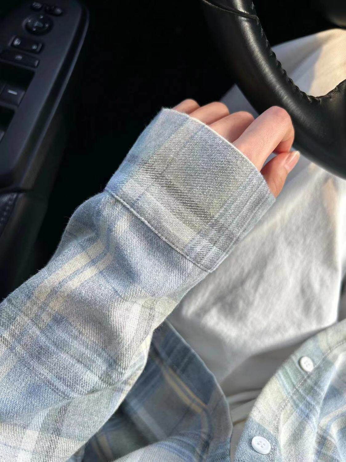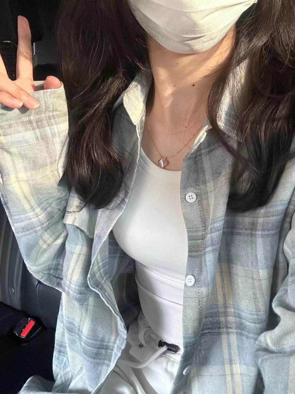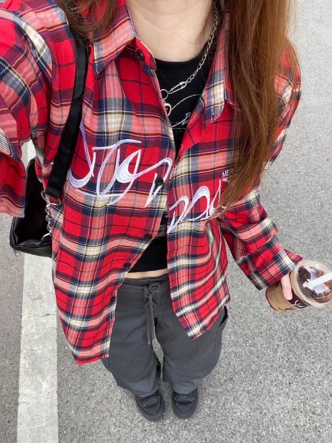 小個子韓系純棉格子襯衫女寬鬆慵懶風遮肉長袖襯衣外穿上衣ins潮