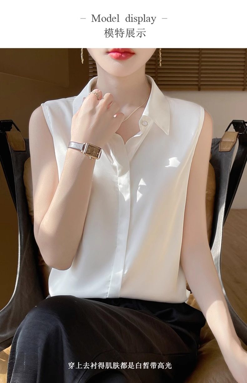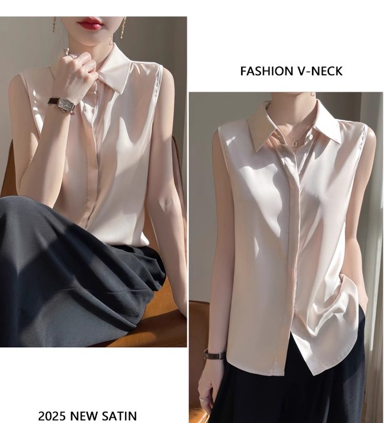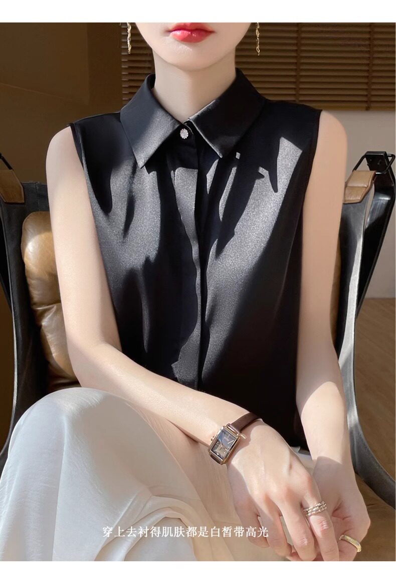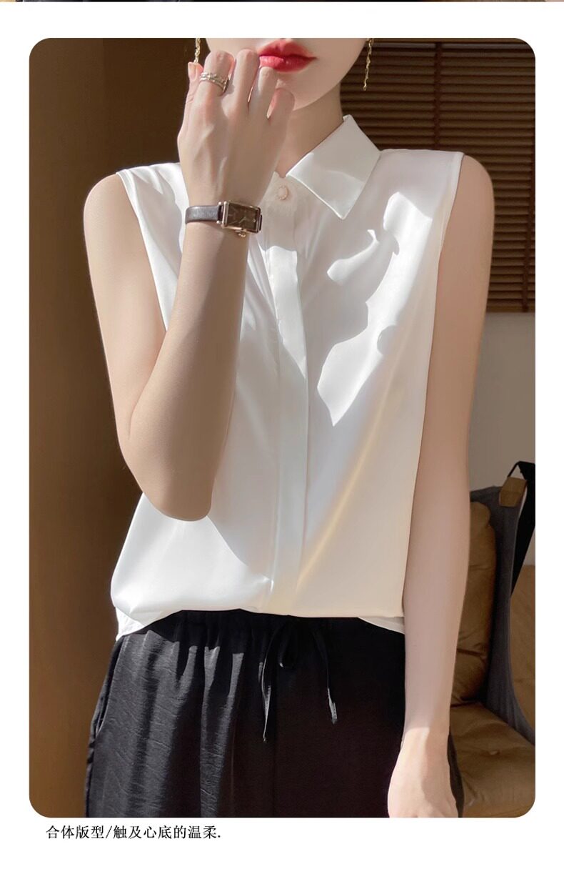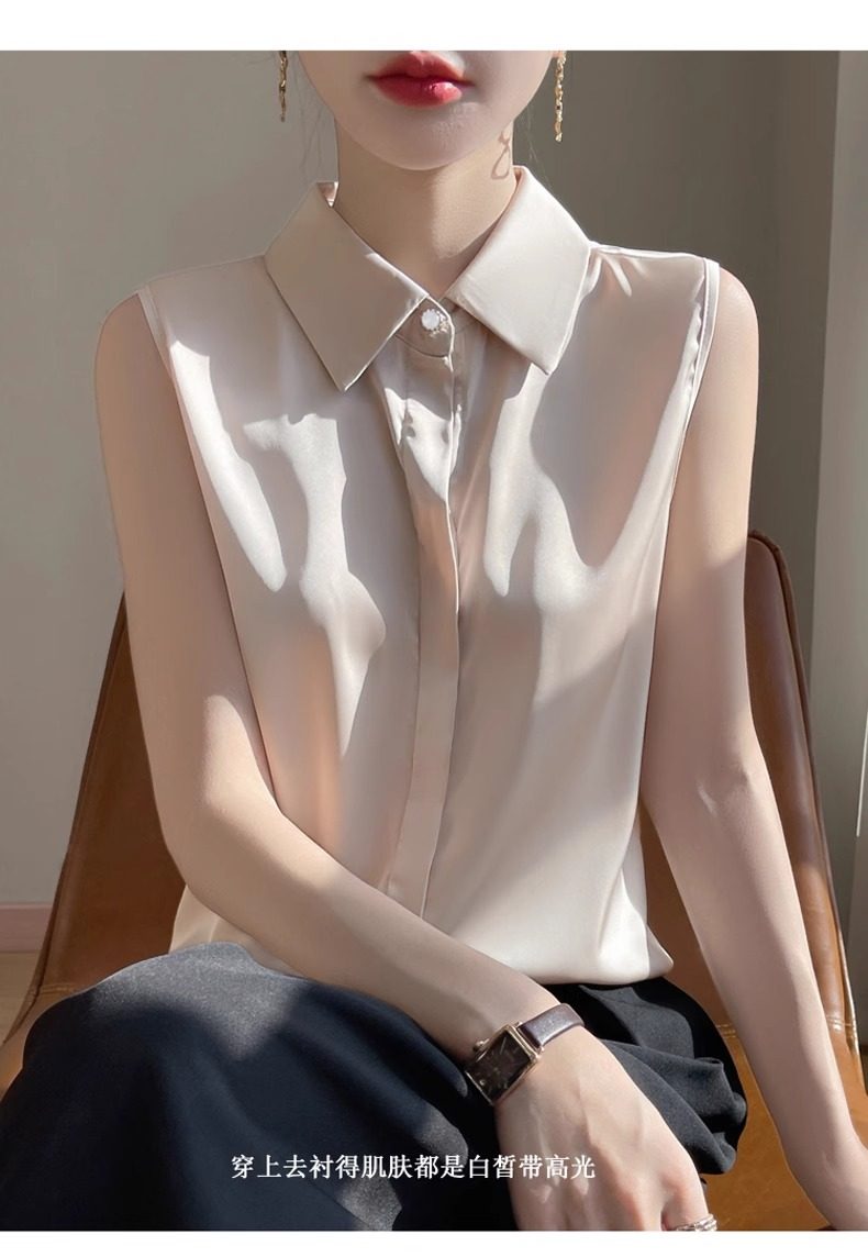 2025春夏新款優雅無袖百搭純色襯衣女配西裝內搭休閒氣質曡穿小衫