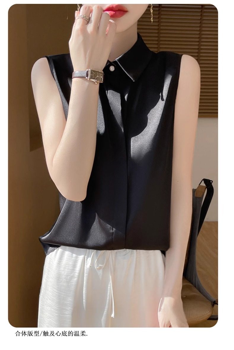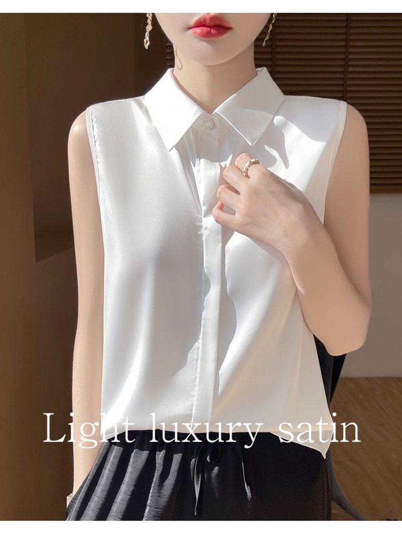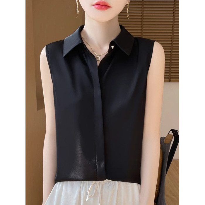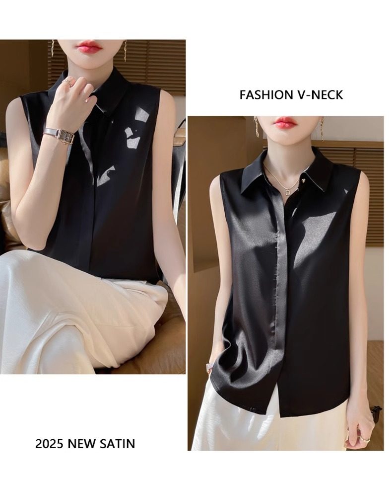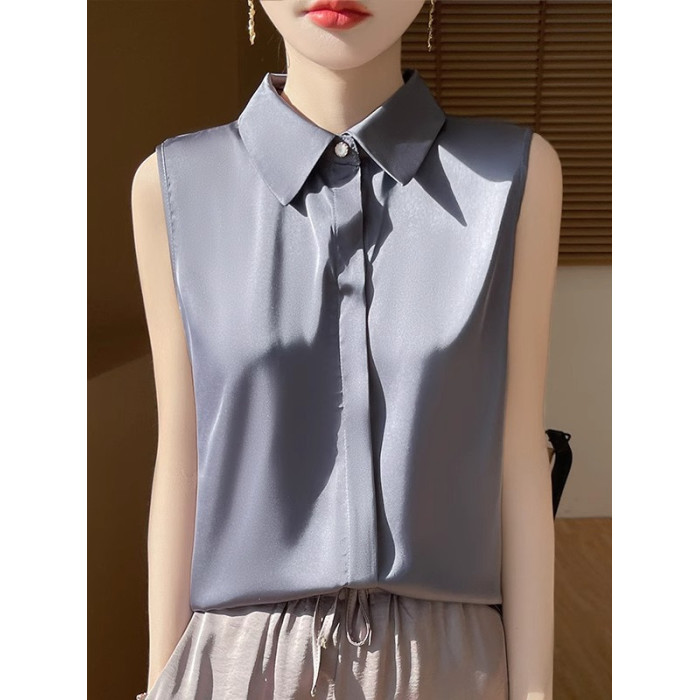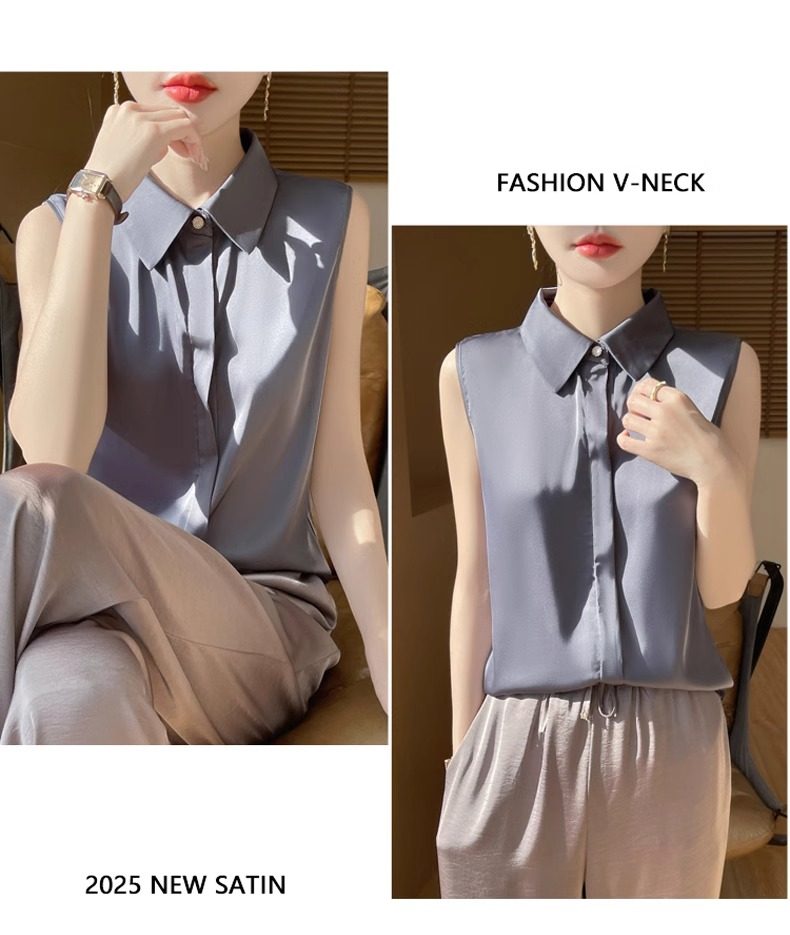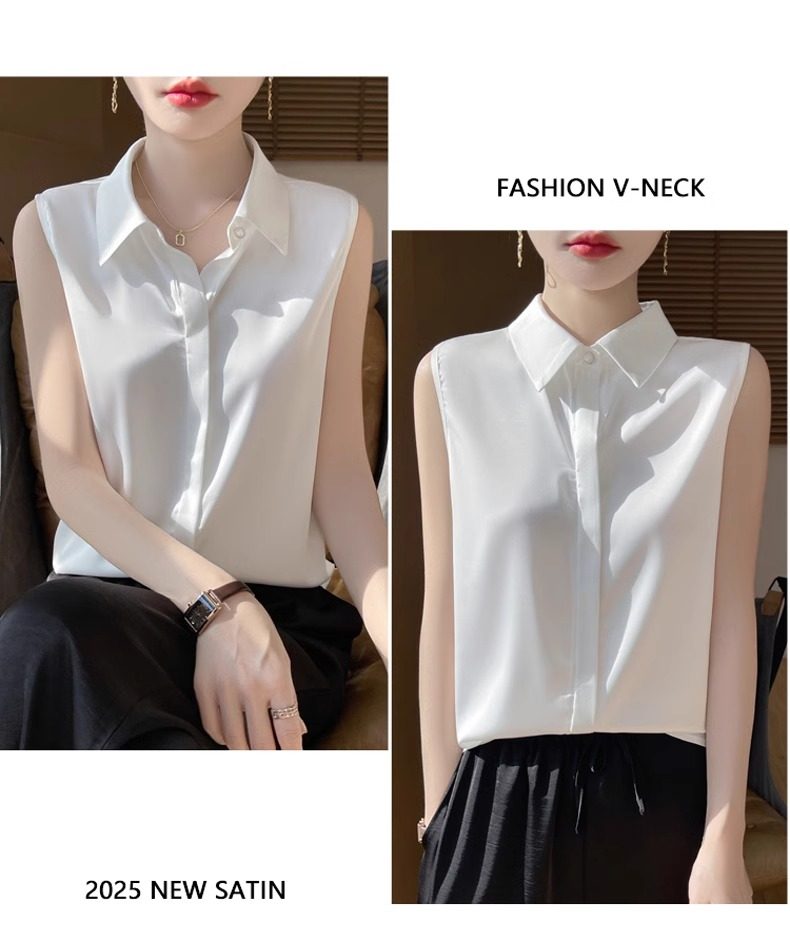 2025春夏新款優雅無袖百搭純色襯衣女配西裝內搭休閒氣質曡穿小衫