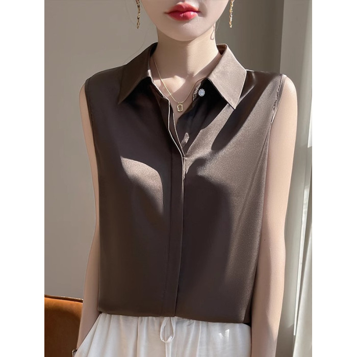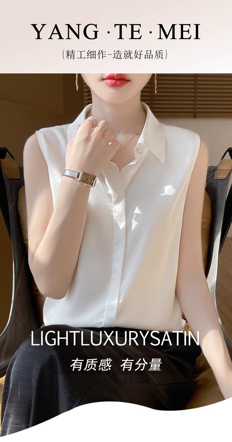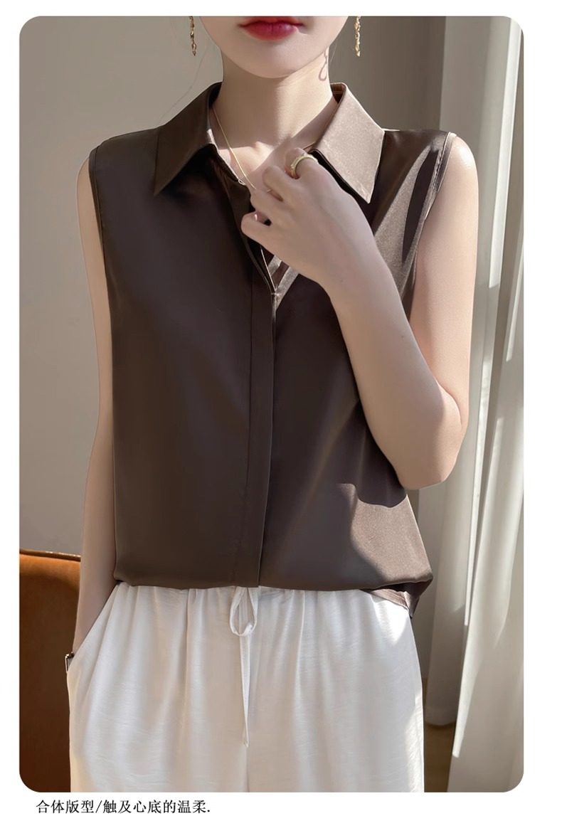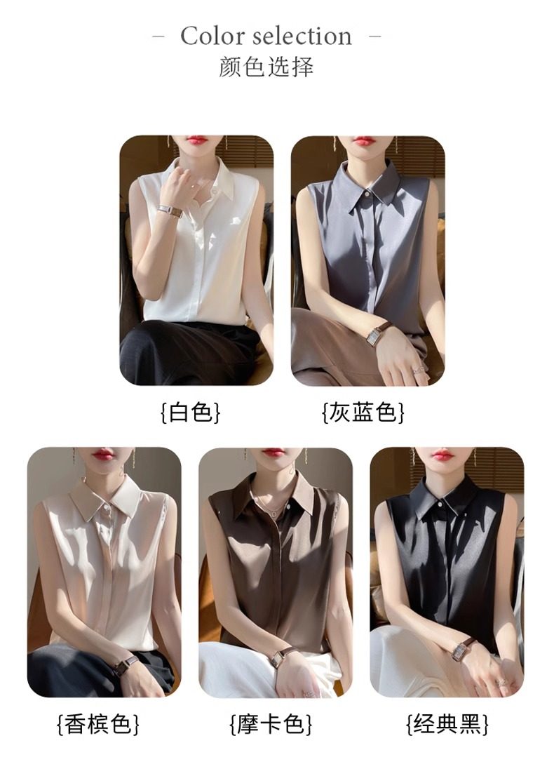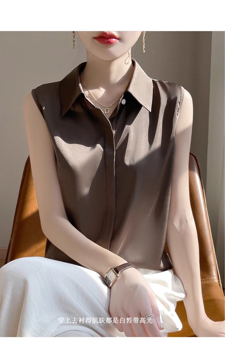 2025春夏新款優雅無袖百搭純色襯衣女配西裝內搭休閒氣質曡穿小衫