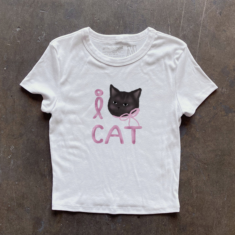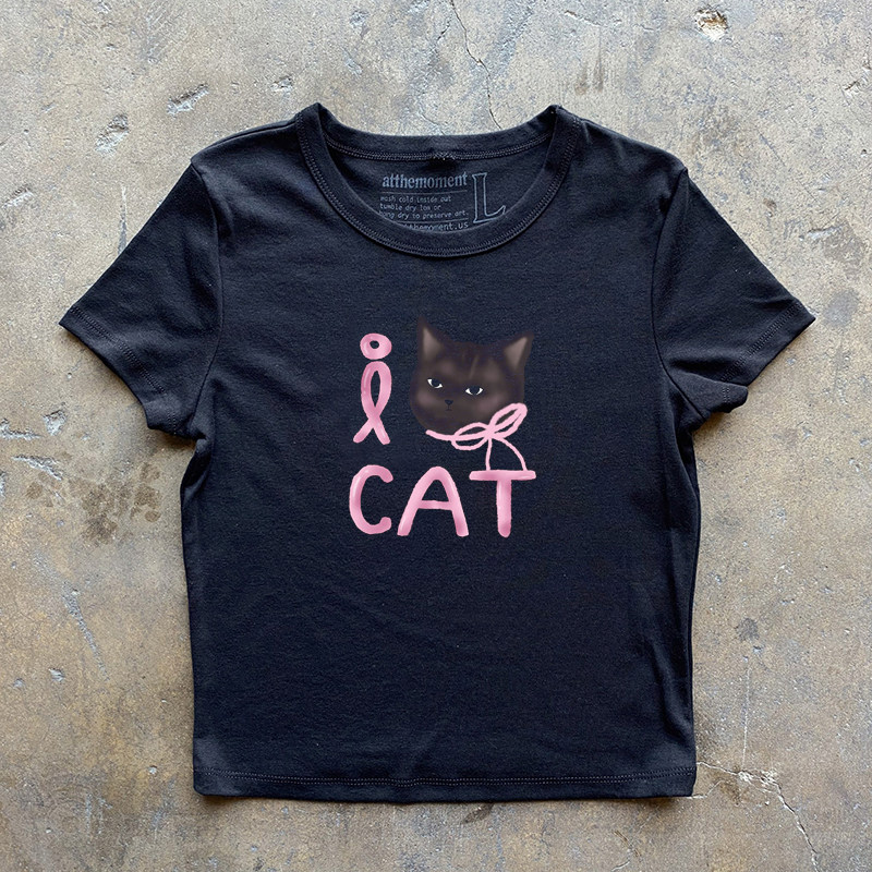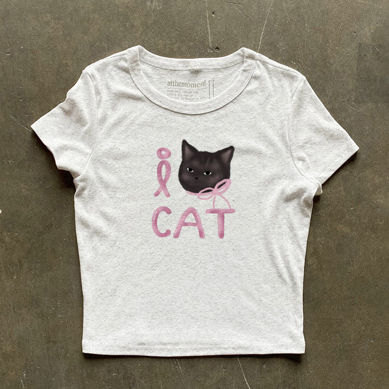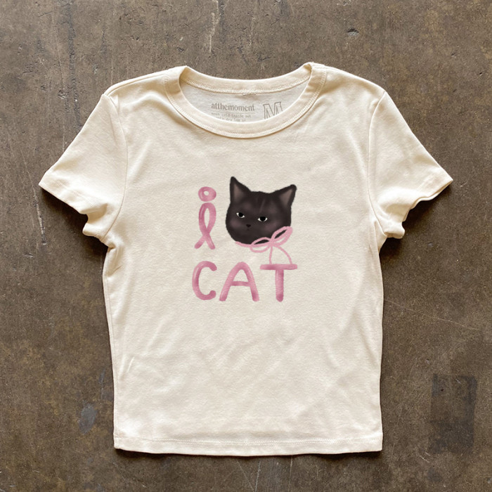 IGEUMM 230g重磅美式小衆可愛卡通貓咪正肩短袖T恤辣妹獨特上衣女