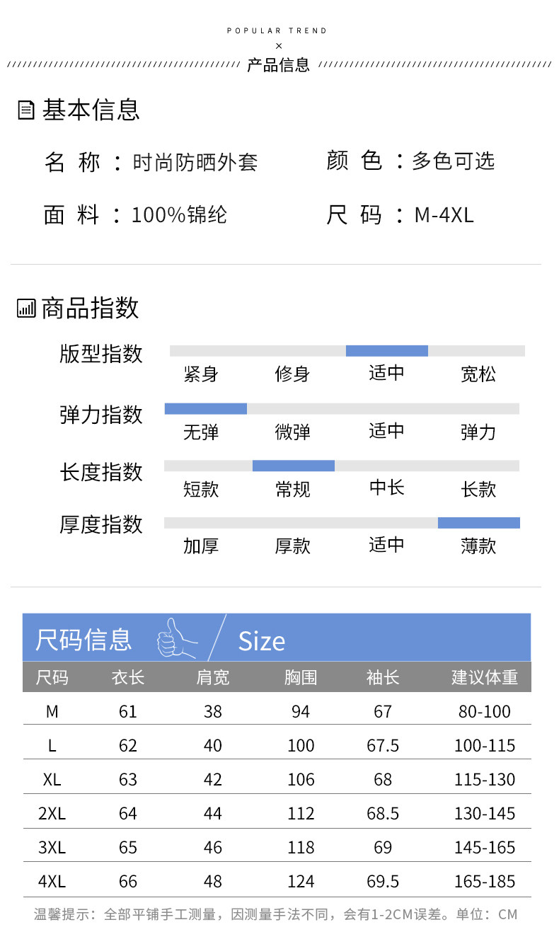 | UPF值 | UPF50+ |
