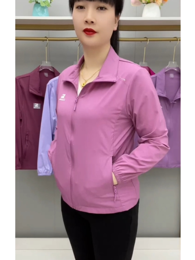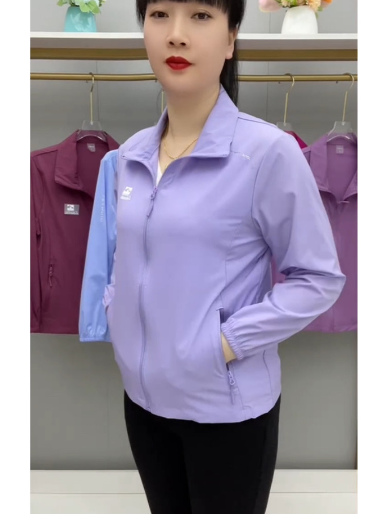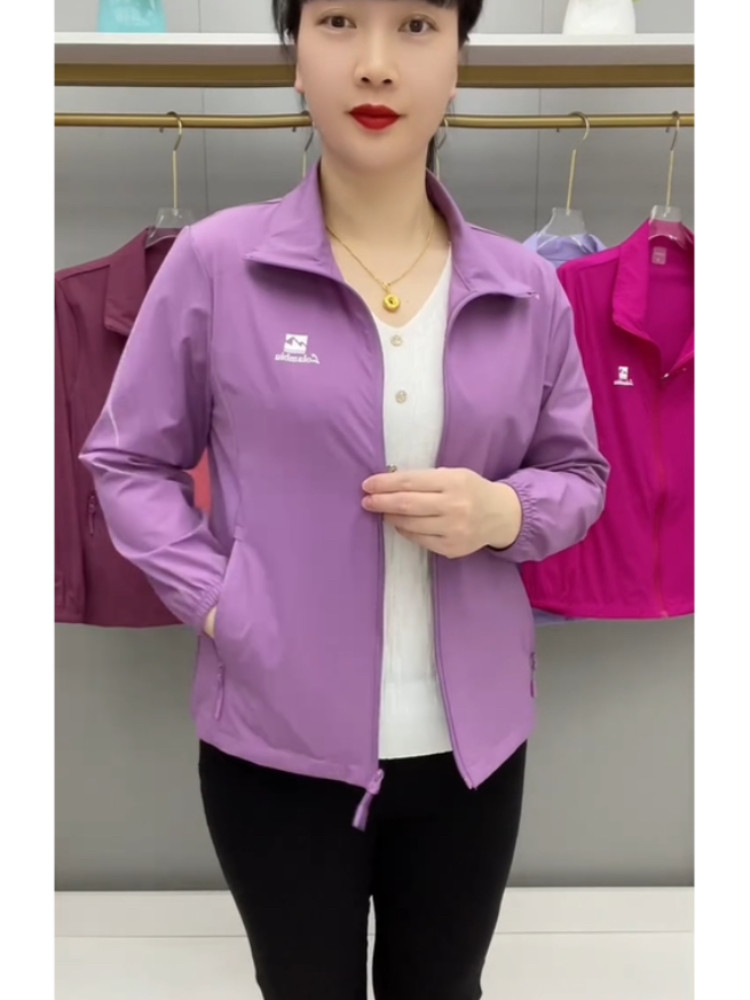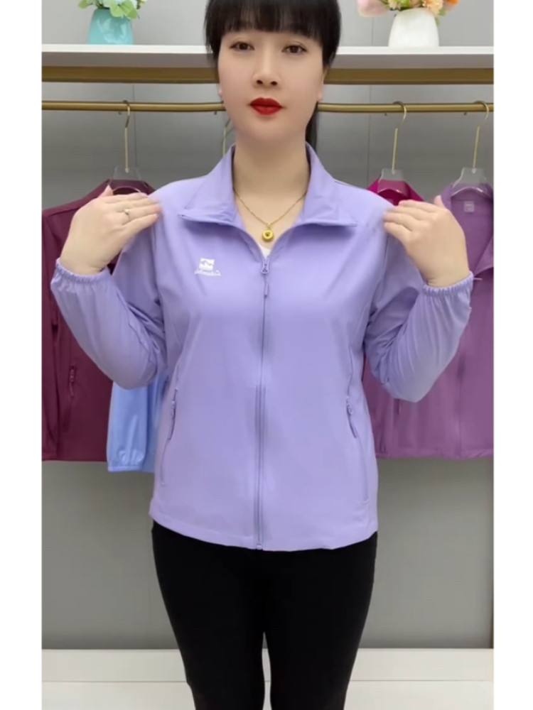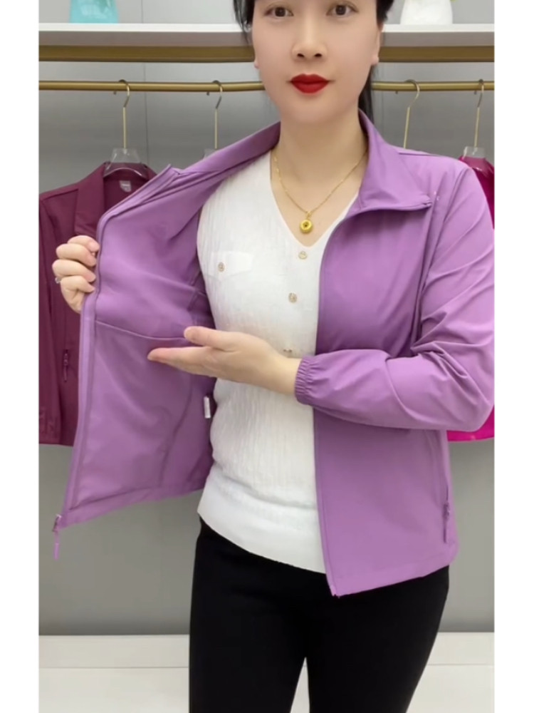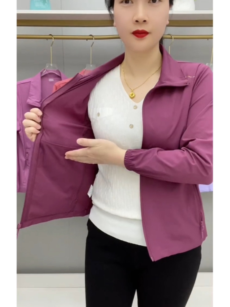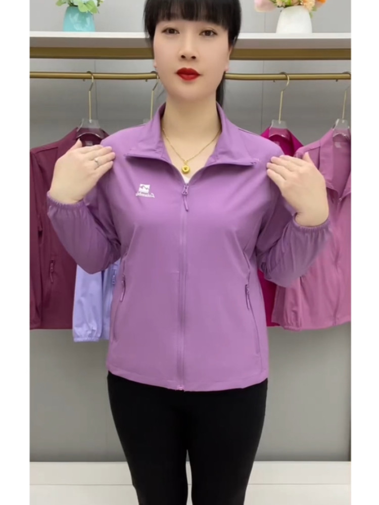 春夏薄款透氣外套拉鍊繙領中老年上衣薄料防曬衣休閒百搭減齡開衫