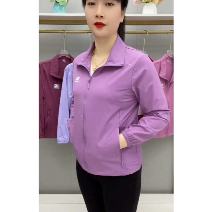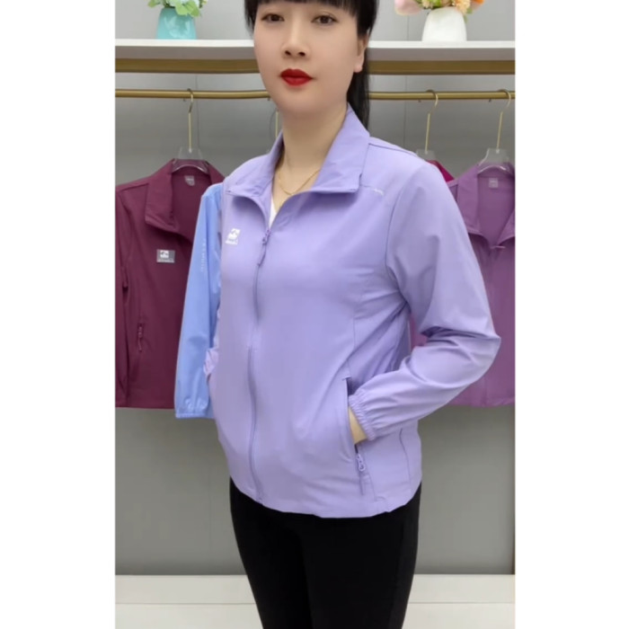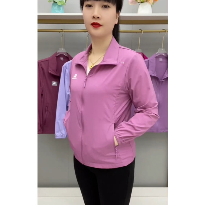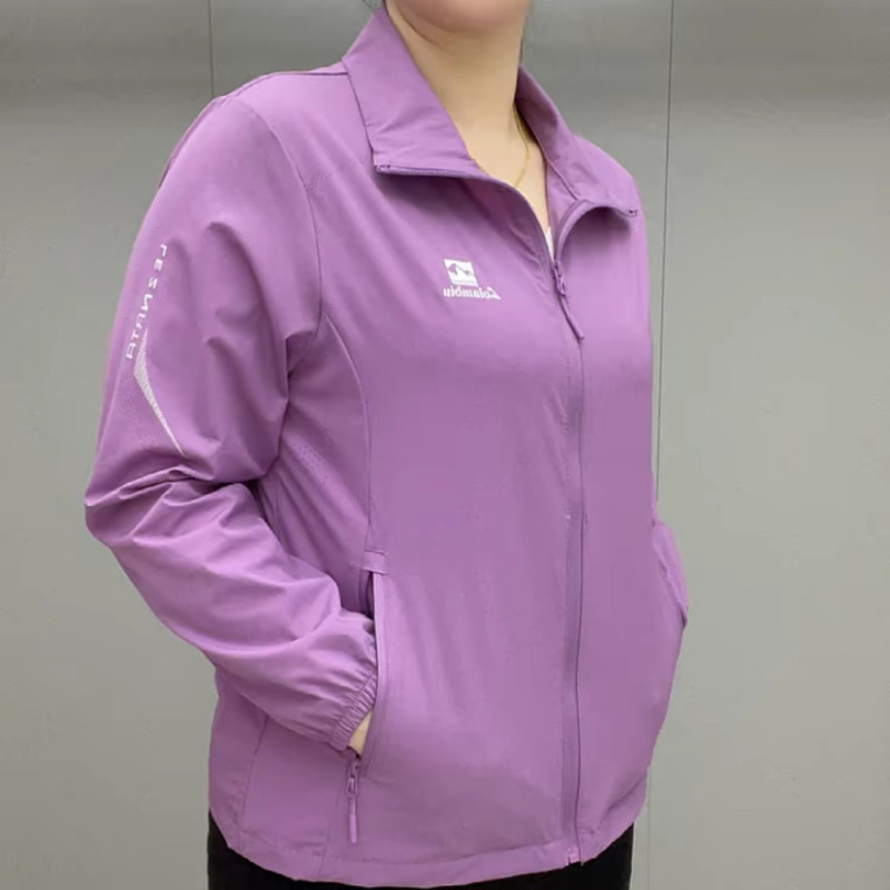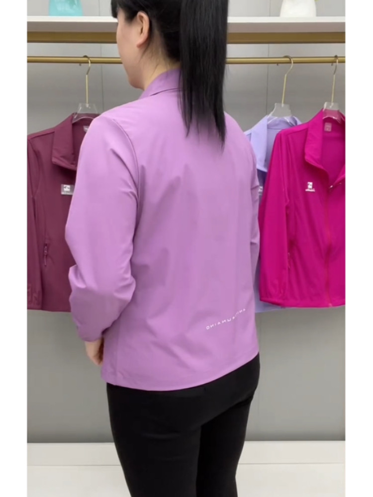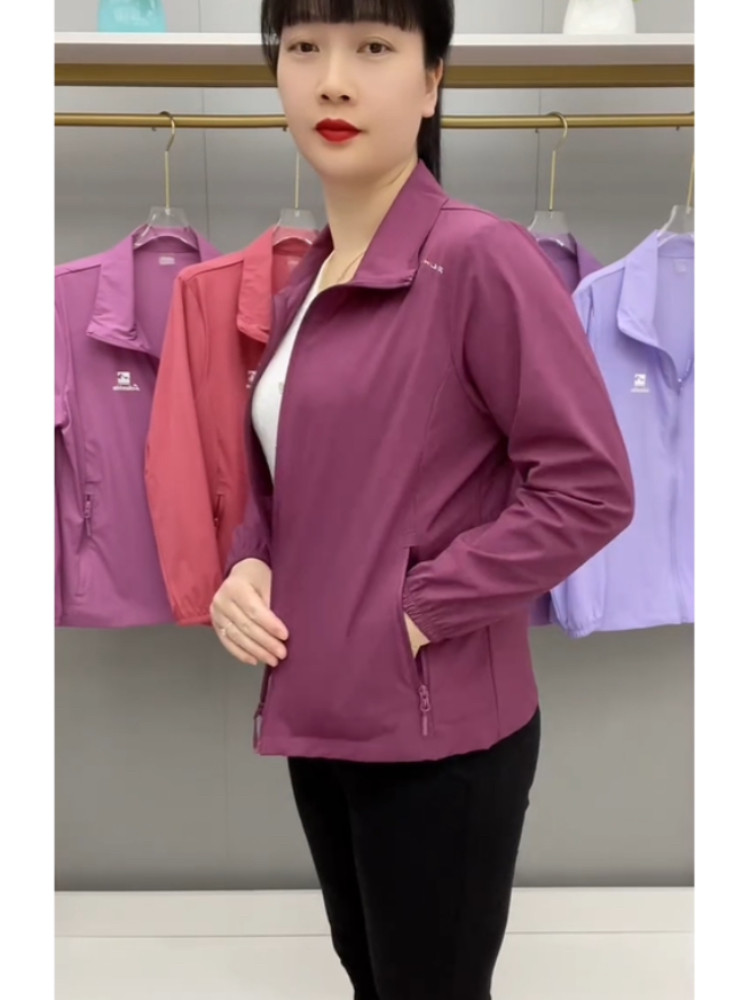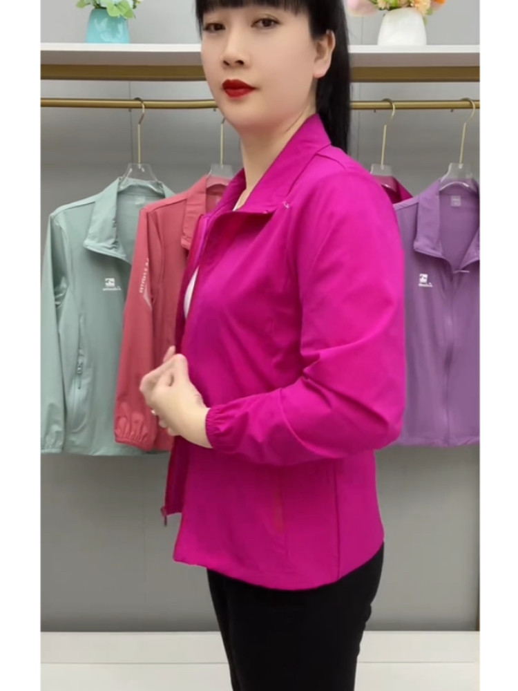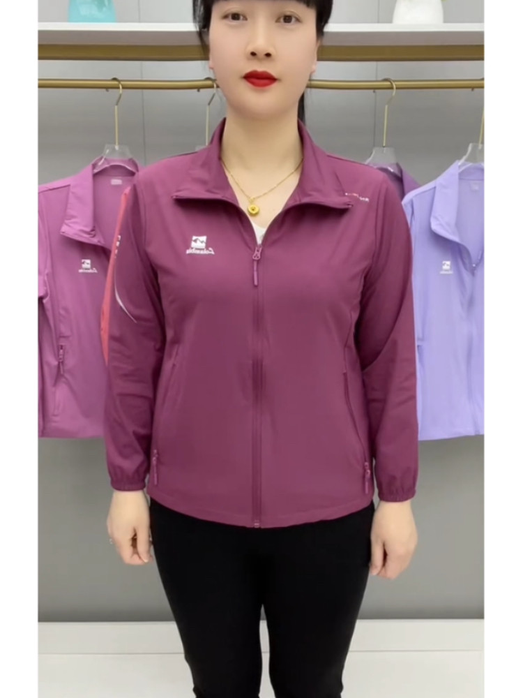 春夏薄款透氣外套拉鍊繙領中老年上衣薄料防曬衣休閒百搭減齡開衫