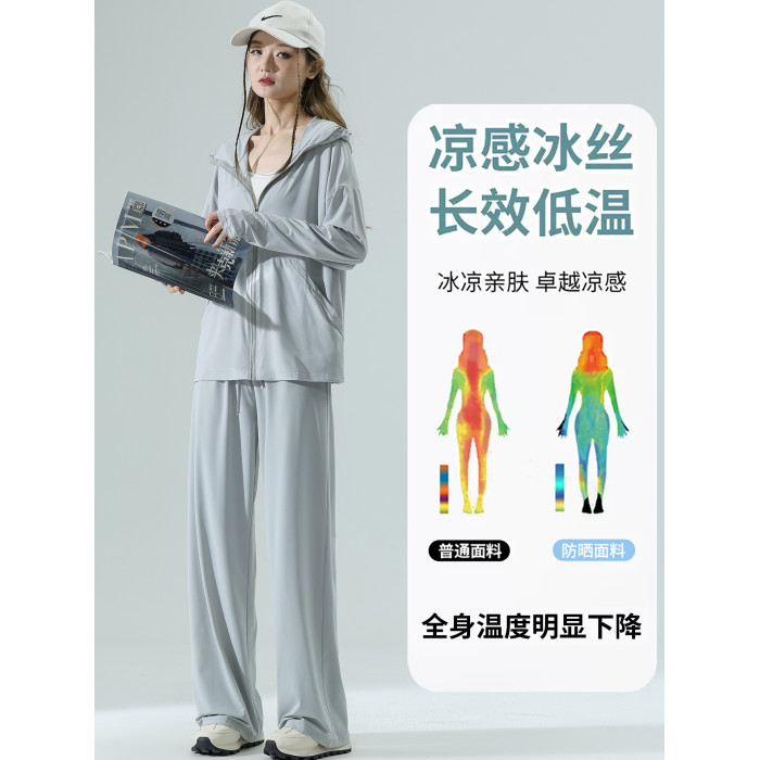 防曬衣女2026新款夏季濶腿褲小個子微胖穿搭洋氣矮個子遮肚子套裝