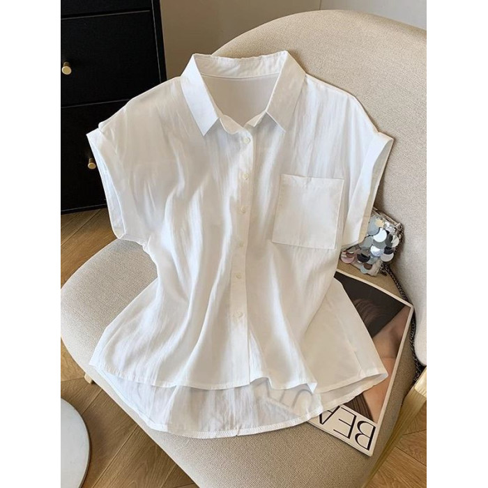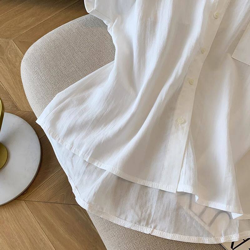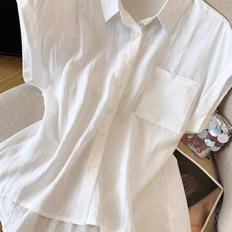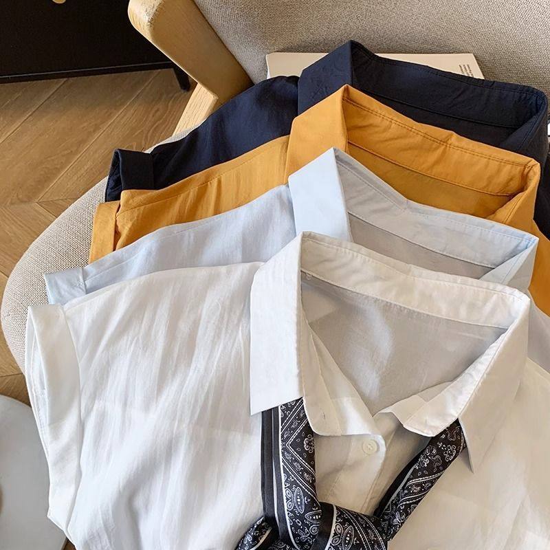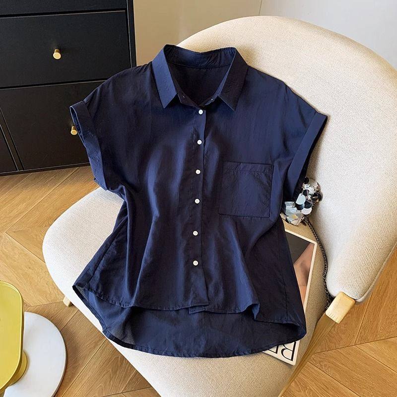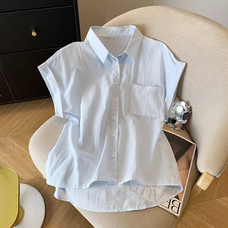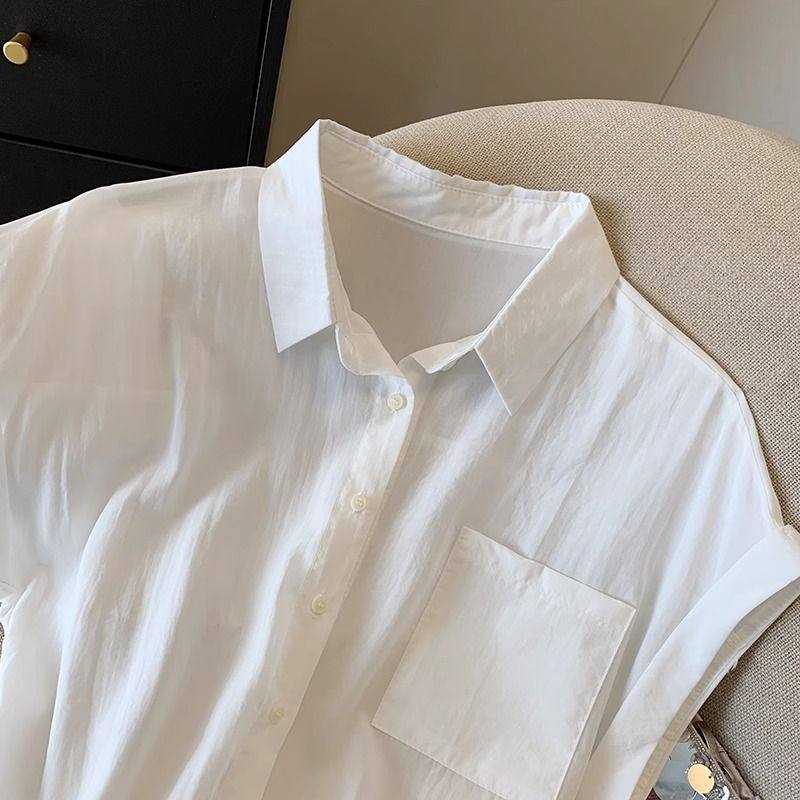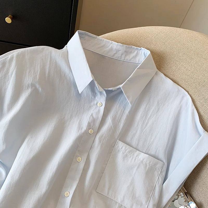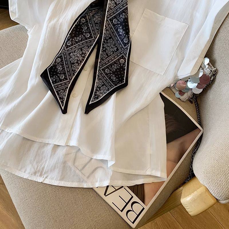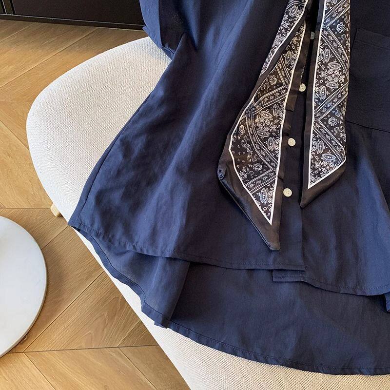 藍色polo領配絲巾無袖襯衫女夏2025新款寬鬆休閒襯衣氣質顯瘦上衣