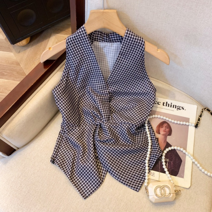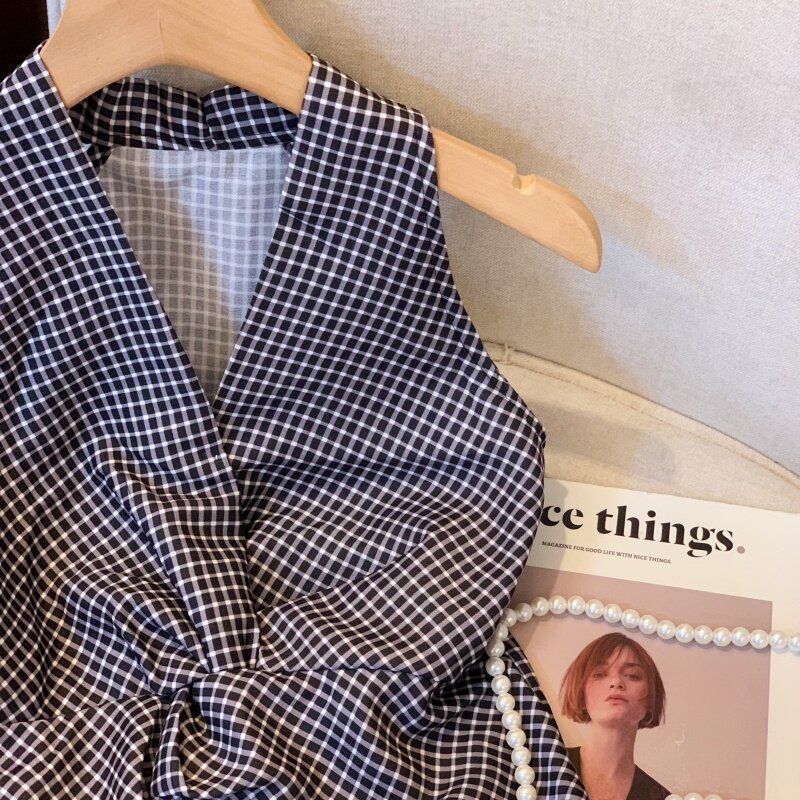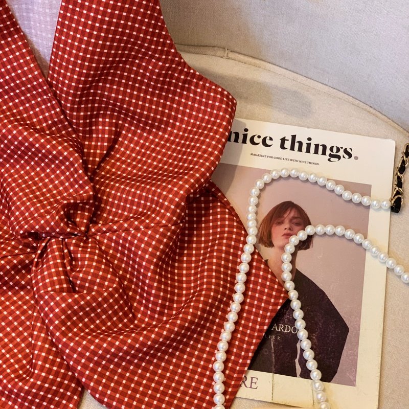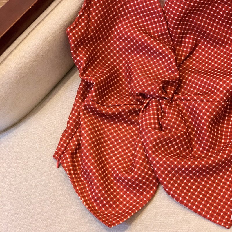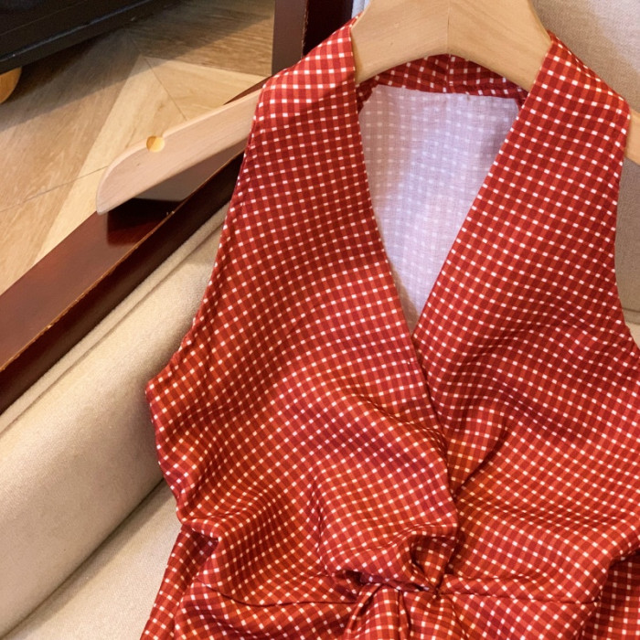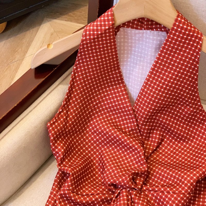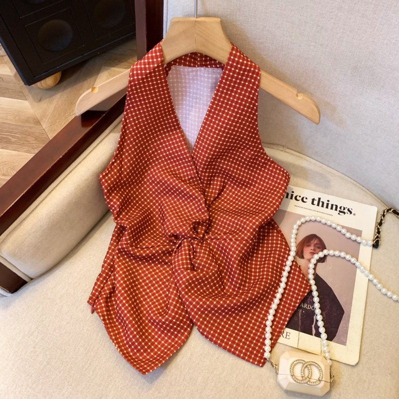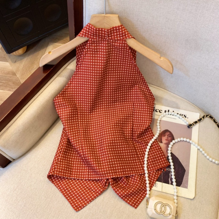 自畱爆款推薦~辣妹紅色扭結波點襯衫背心女2026夏甜辣掛脖小上衣