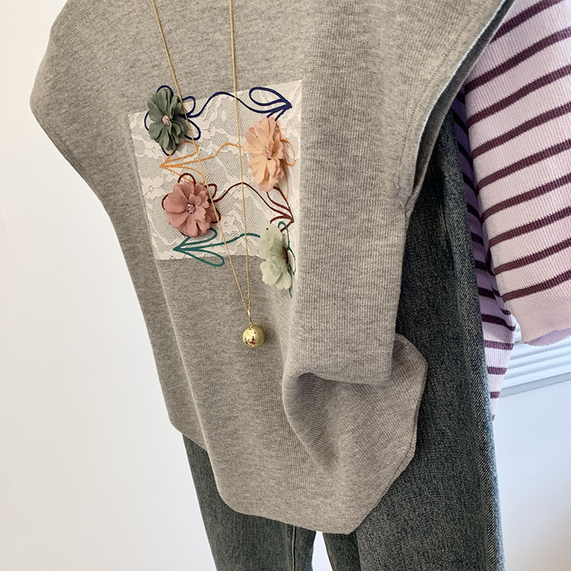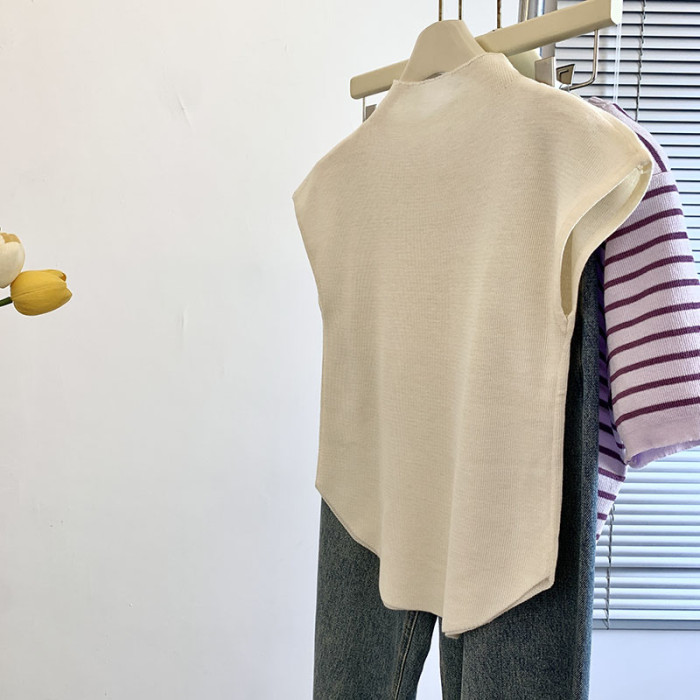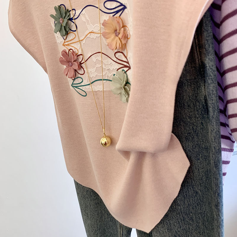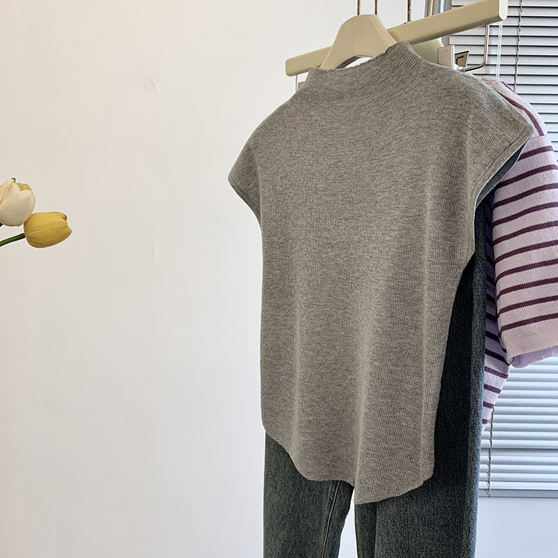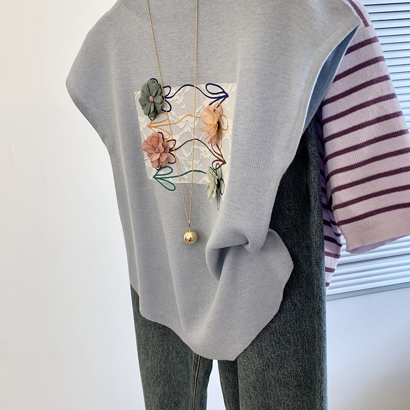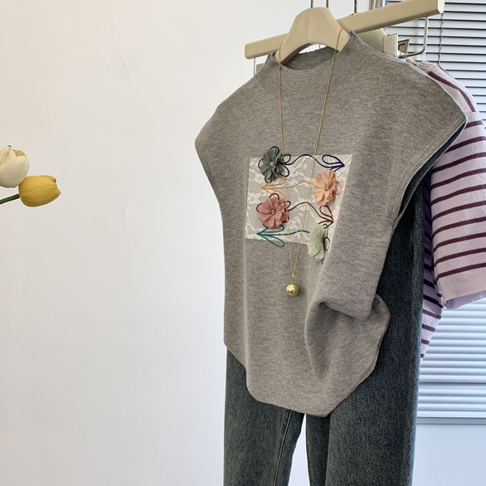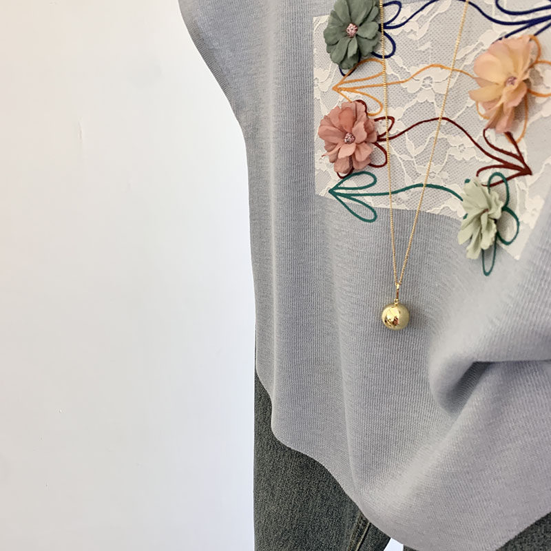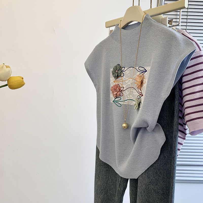 專櫃撤廻剪標立體花朵半高領短袖T恤女夏季新款正肩獨特修身上衣