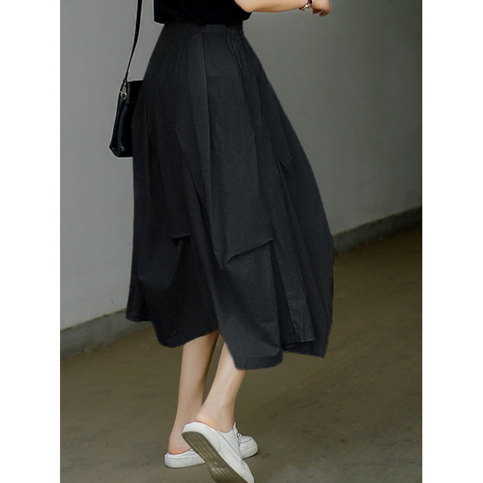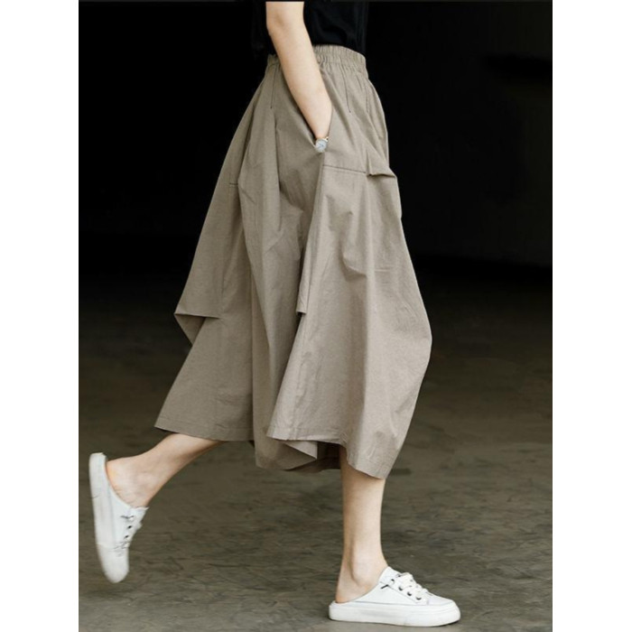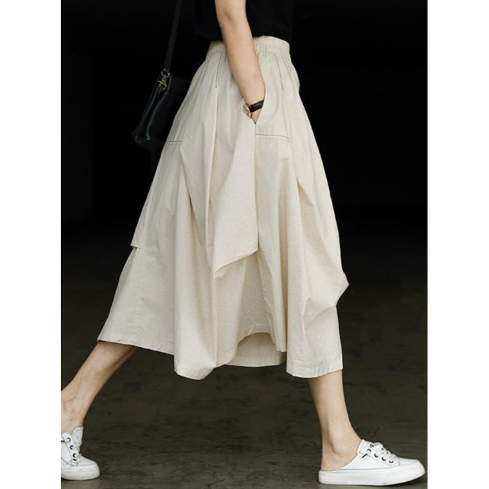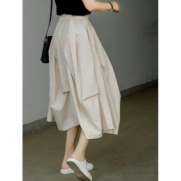 反季清倉撿漏日單夏季設計感棉麻裙子大碼寬鬆高腰減齡半身裙
