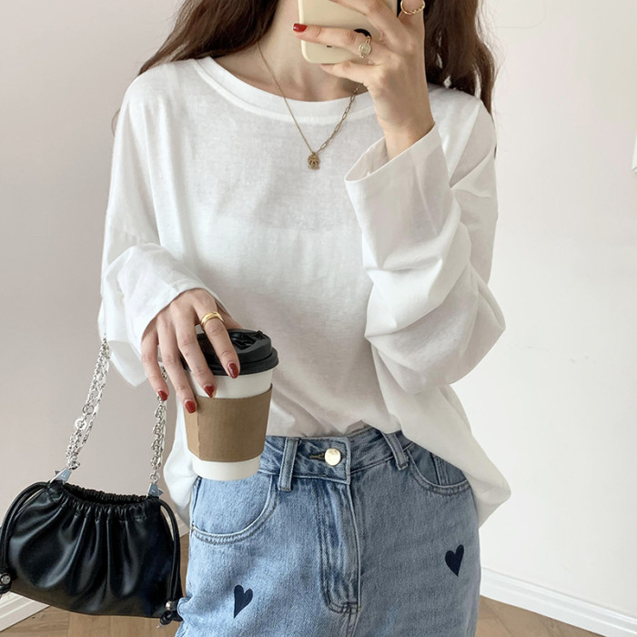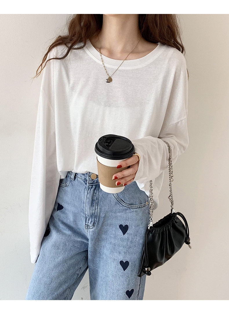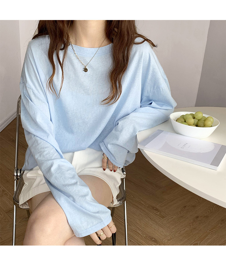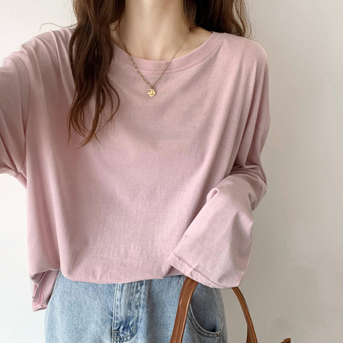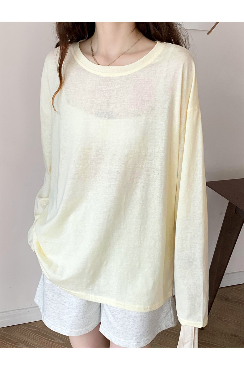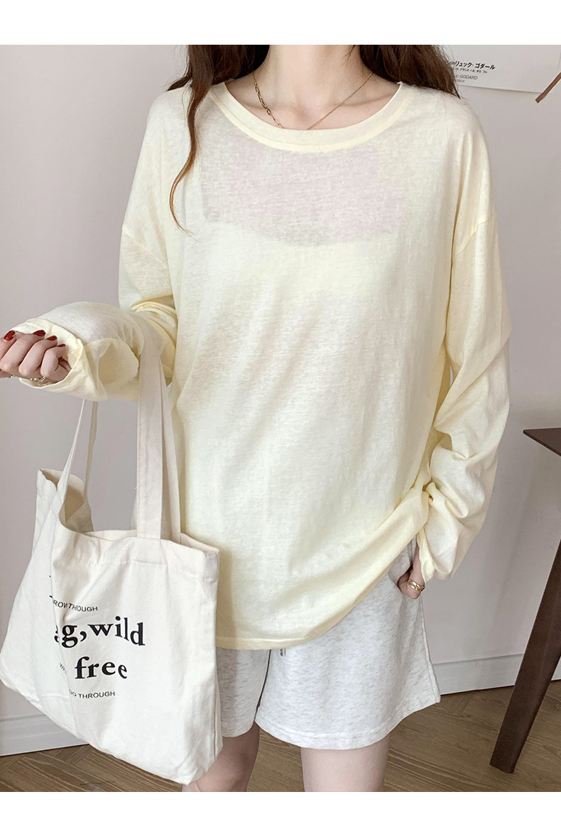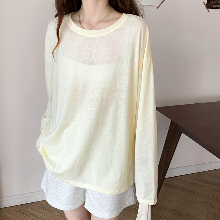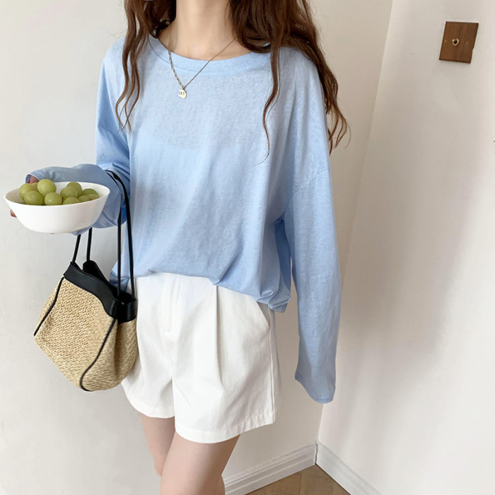 純色防曬衫女長袖薄款t恤2021新款寬鬆百搭打底顯瘦韓版chic上衣