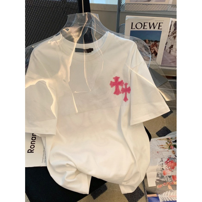 撿漏~專櫃撤廻大牌美式國潮oversize印花正肩短袖t恤男女