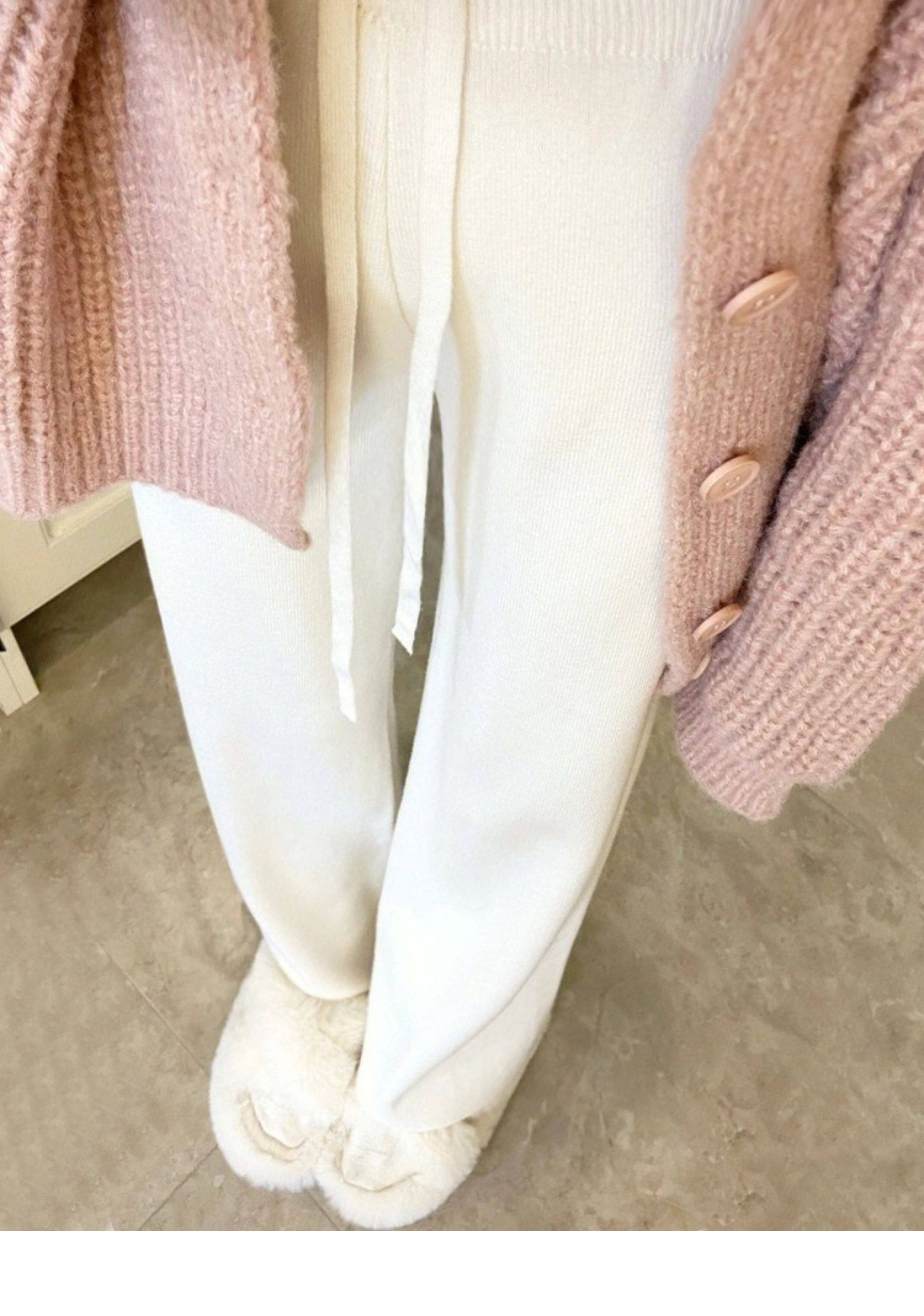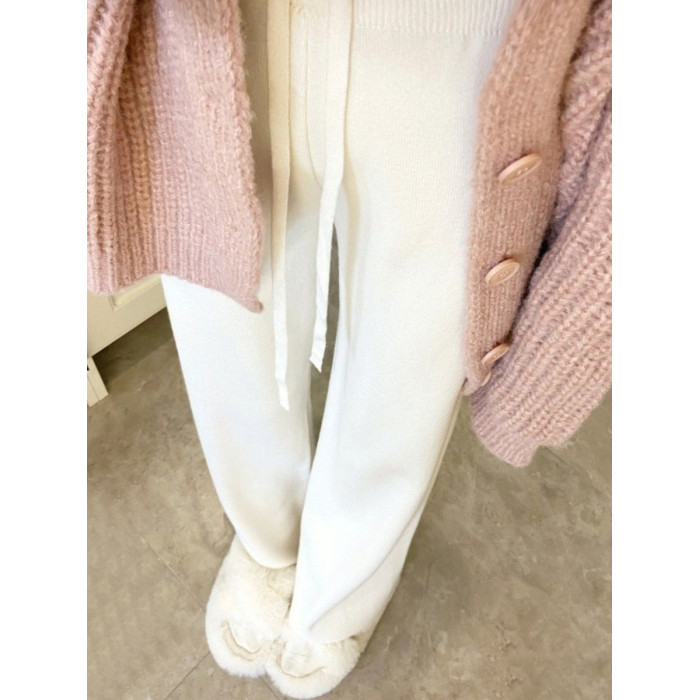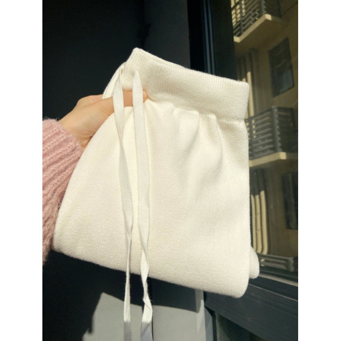 廣州十三行爆款撿漏~奶白色糯米褲子休閒高腰針織濶腿長褲女秋冬