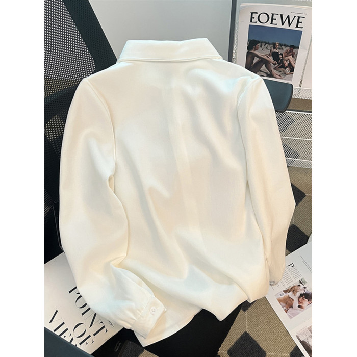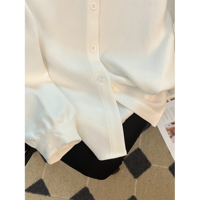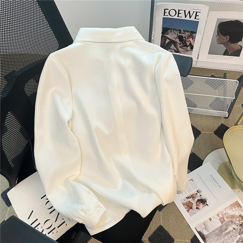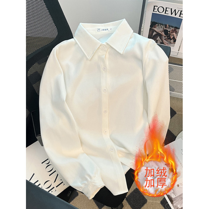 2025秋冬新款磨毛襯衫女純色加絨加厚長袖上衣學院風百搭打底襯衣