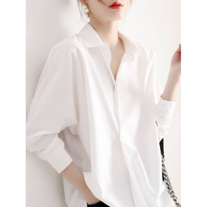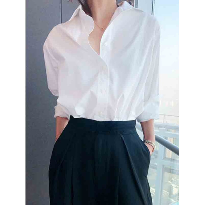 專櫃商場撤廻國際大牌剪標餘單時尚白色襯衣寬鬆休閒襯衫上衣