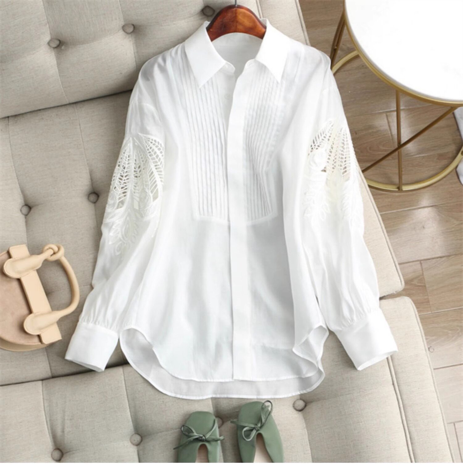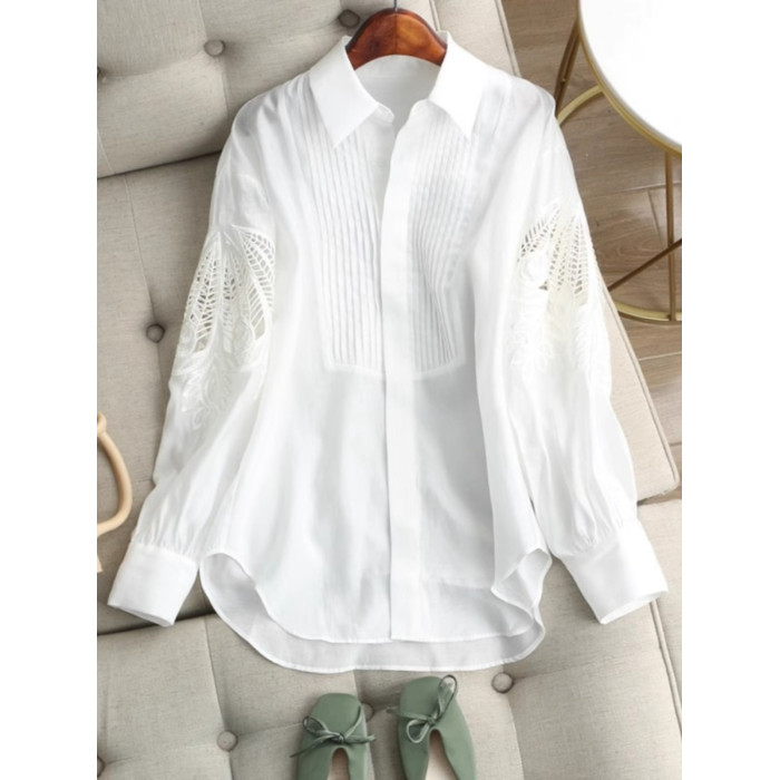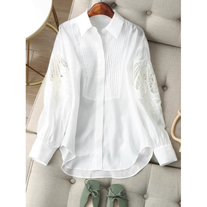 時尚高級感2025年新款春季女裝法式設計復古減齡刺綉鏤空長袖襯衫