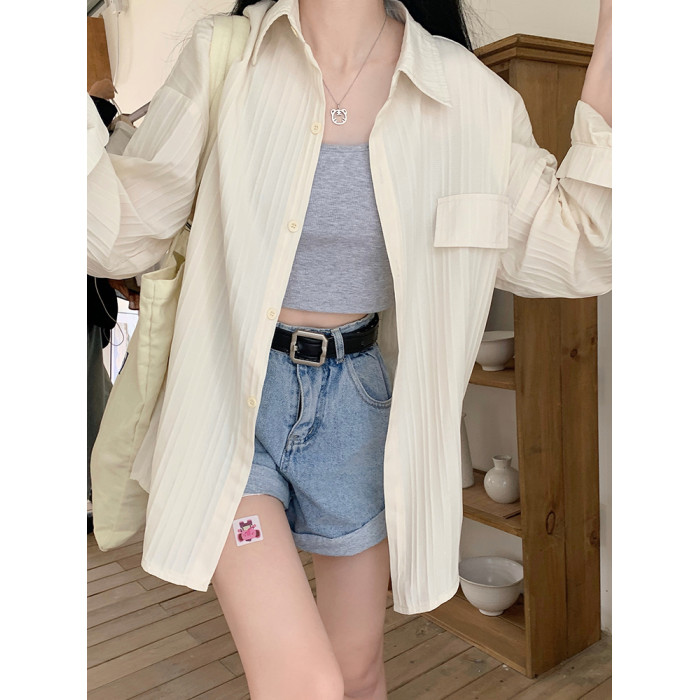 大碼遮陽防曬衣女夏季新款胖mm寬鬆顯瘦長袖繙領襯衣休閒外套上衣
