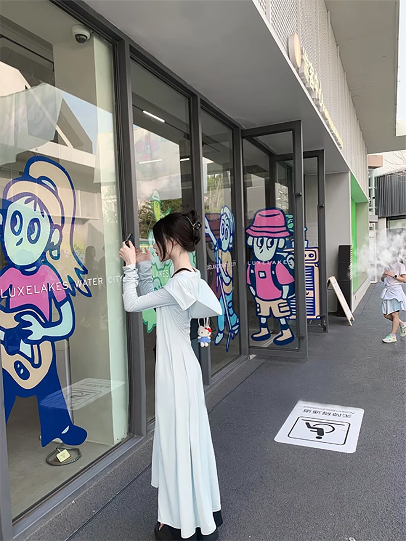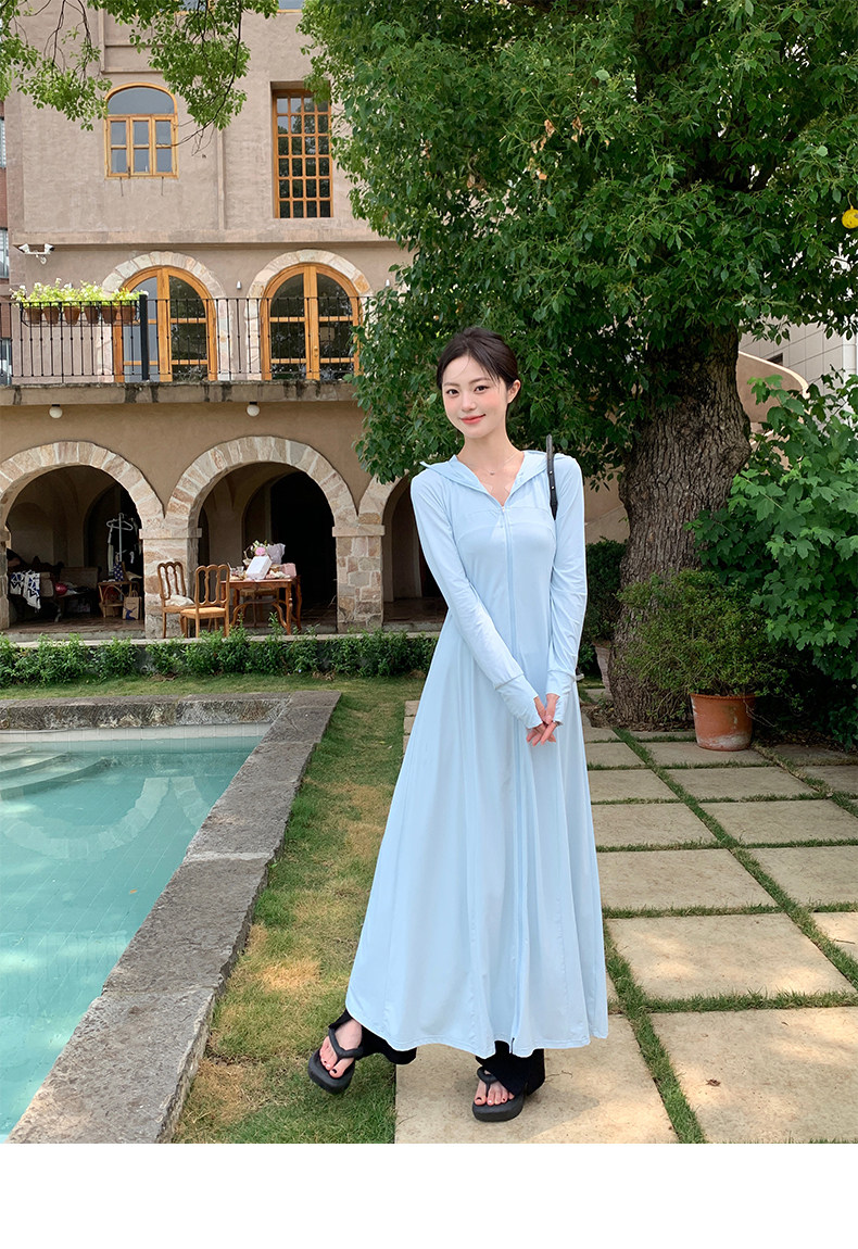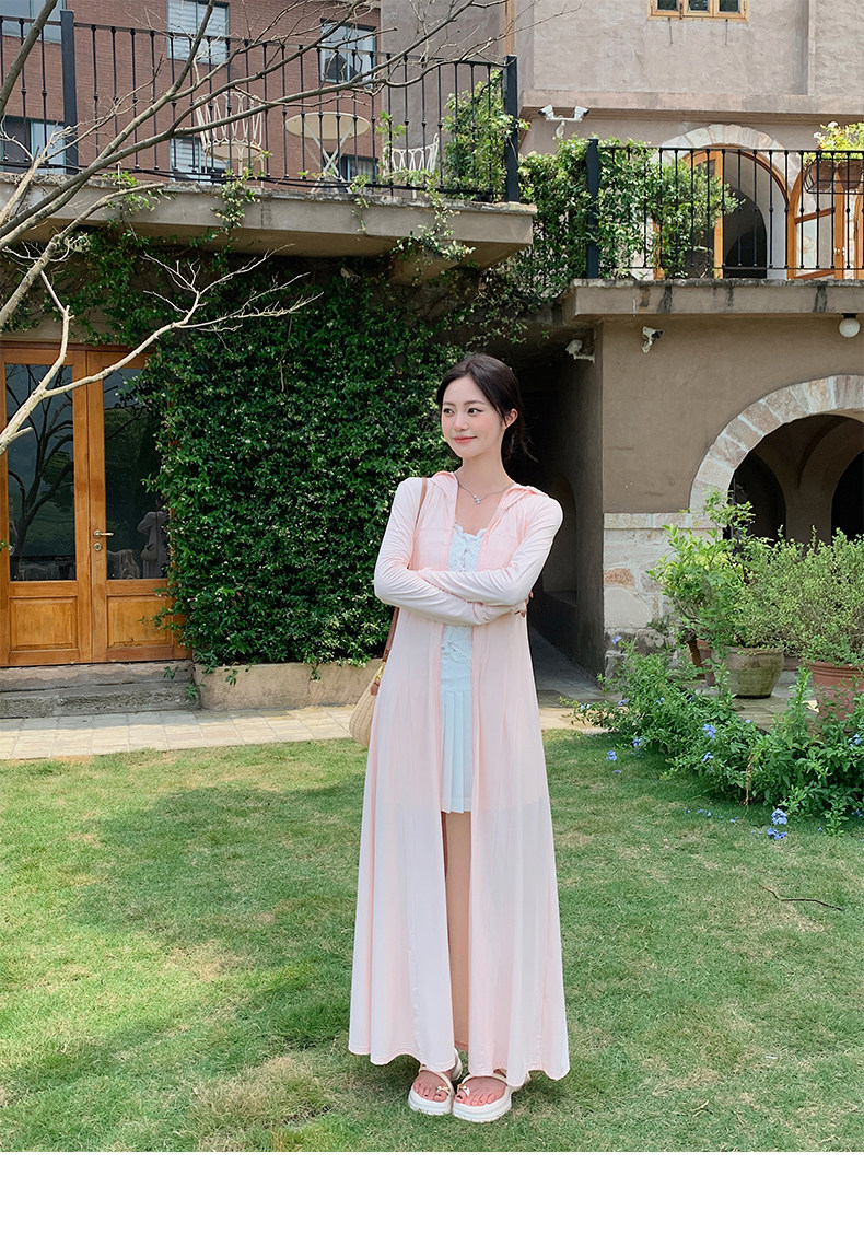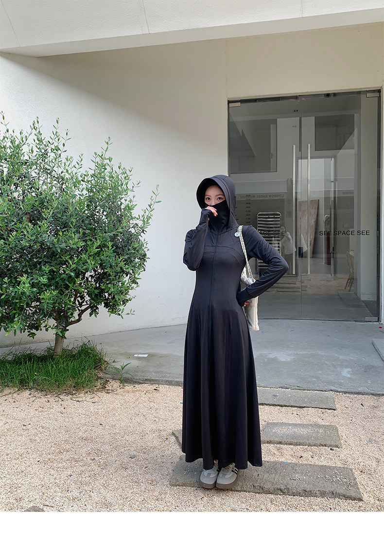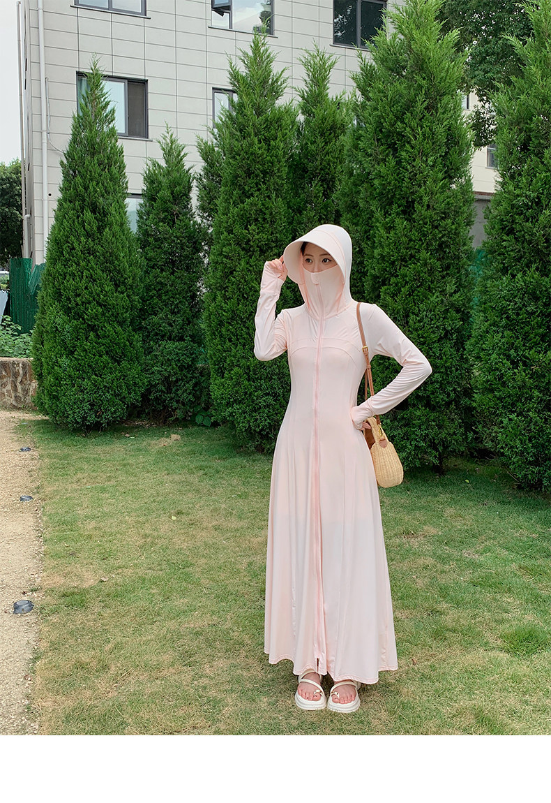 全身防曬衣女2025夏季新款修身收腰輕薄海邊防曬裙外套開衫超長款