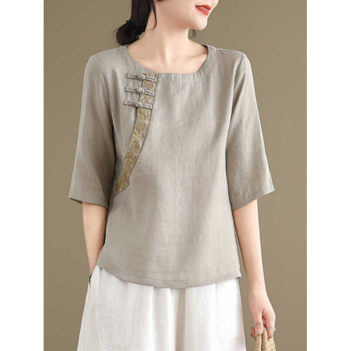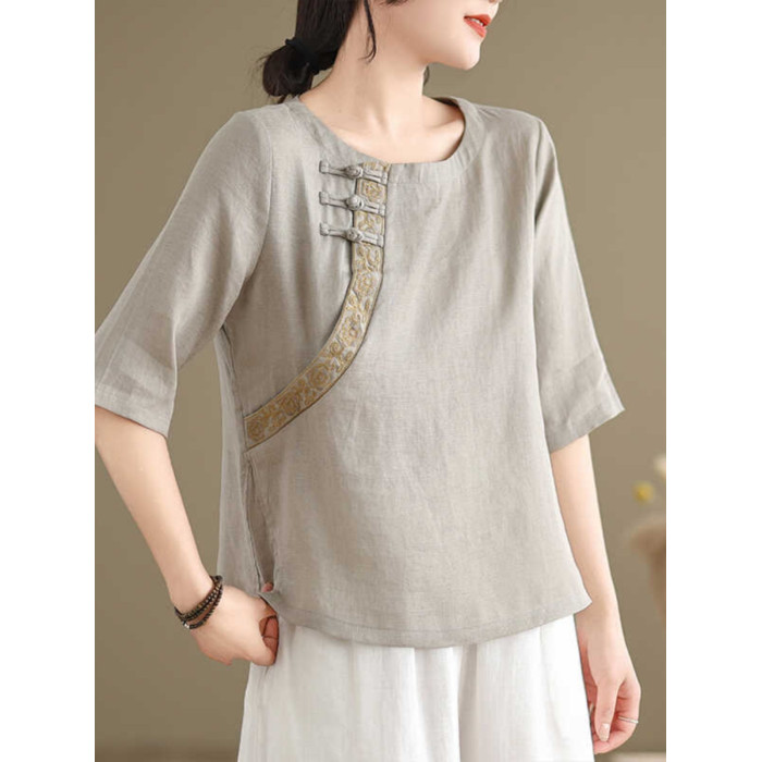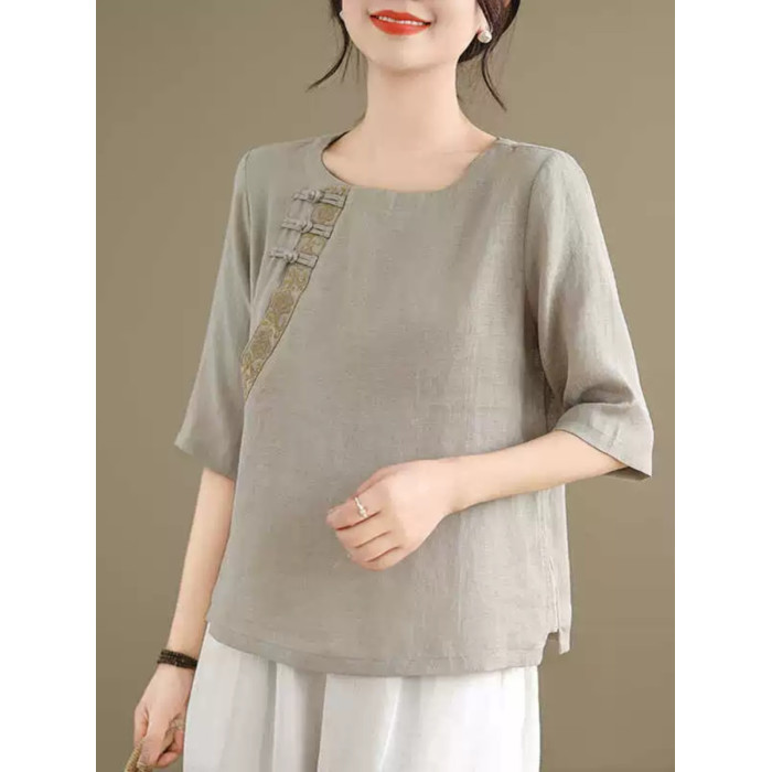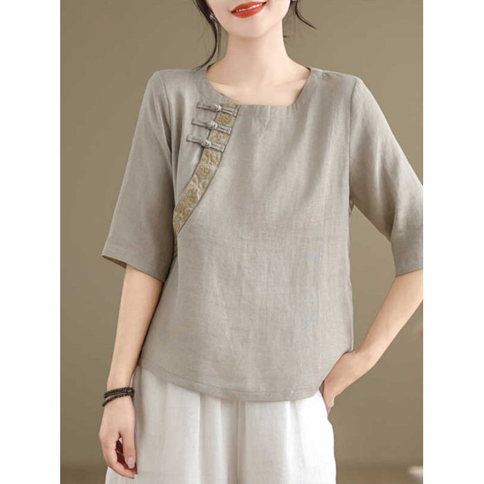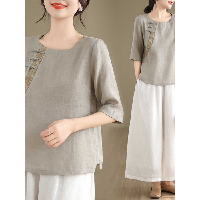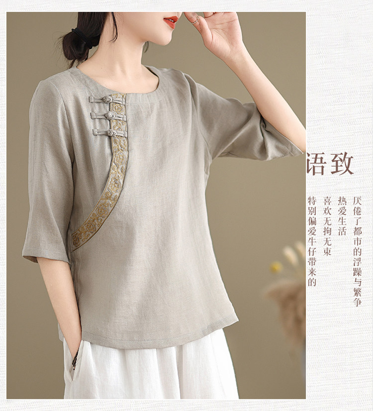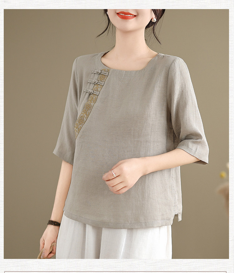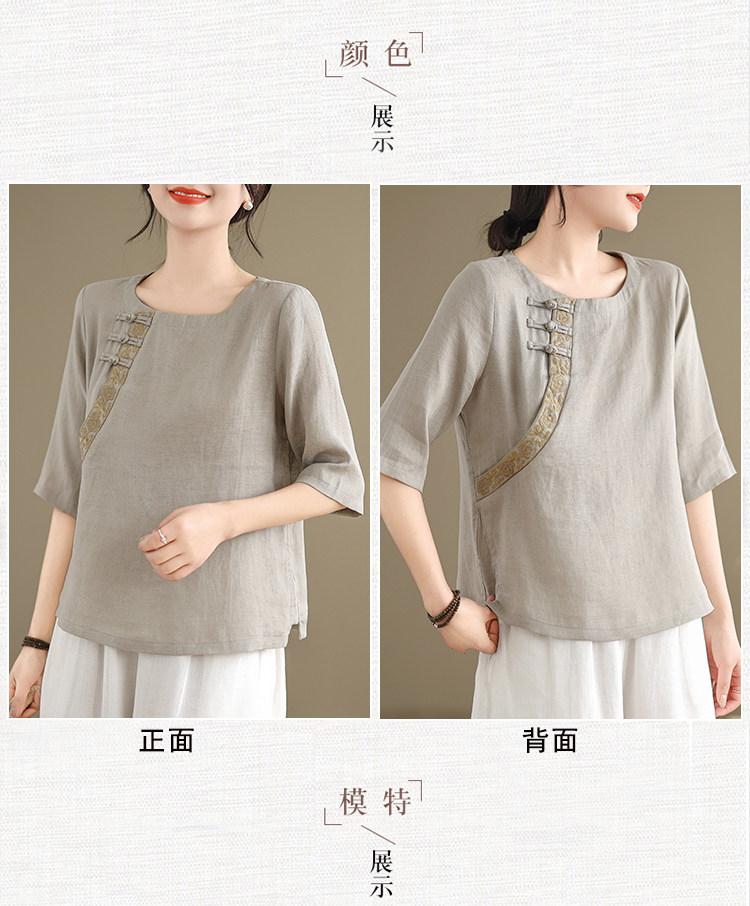 商場專櫃撤櫃女裝夏季中式棉麻半袖襯衫大碼氣質亞麻顯瘦t恤上衣