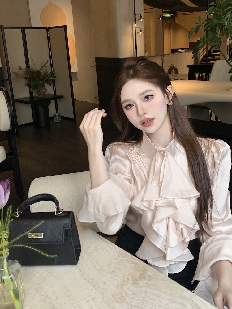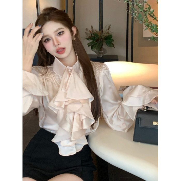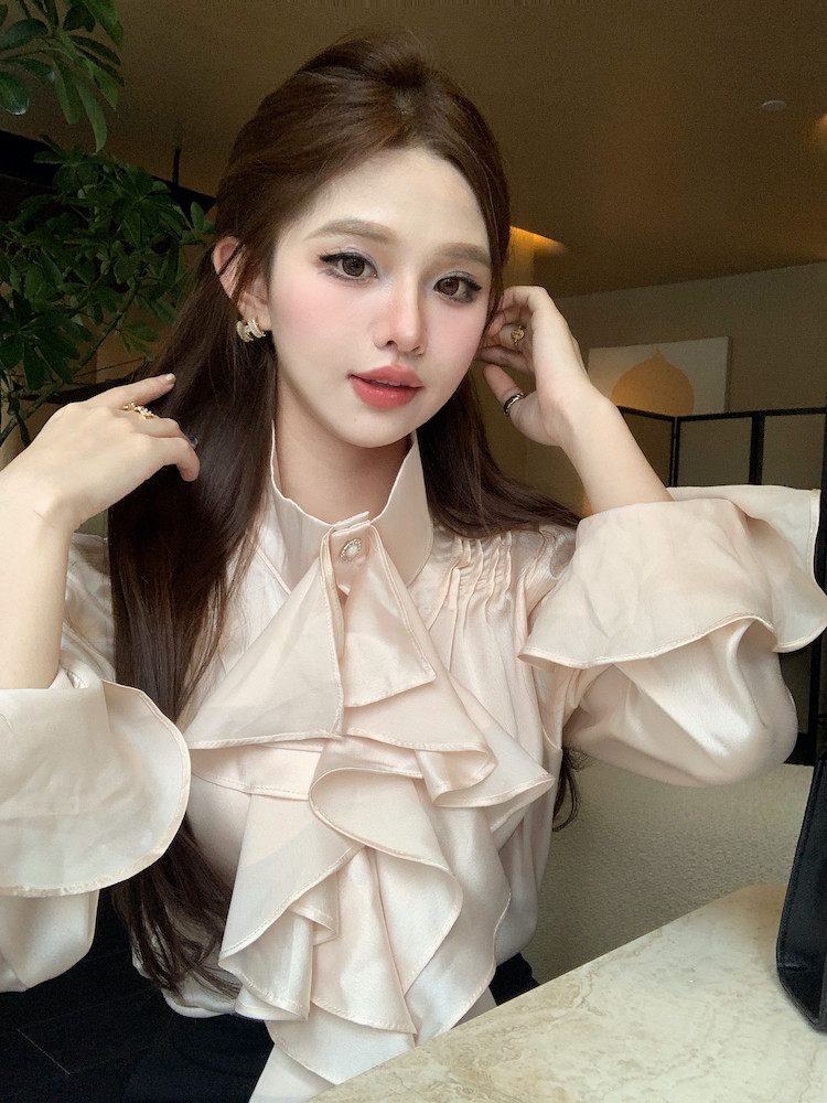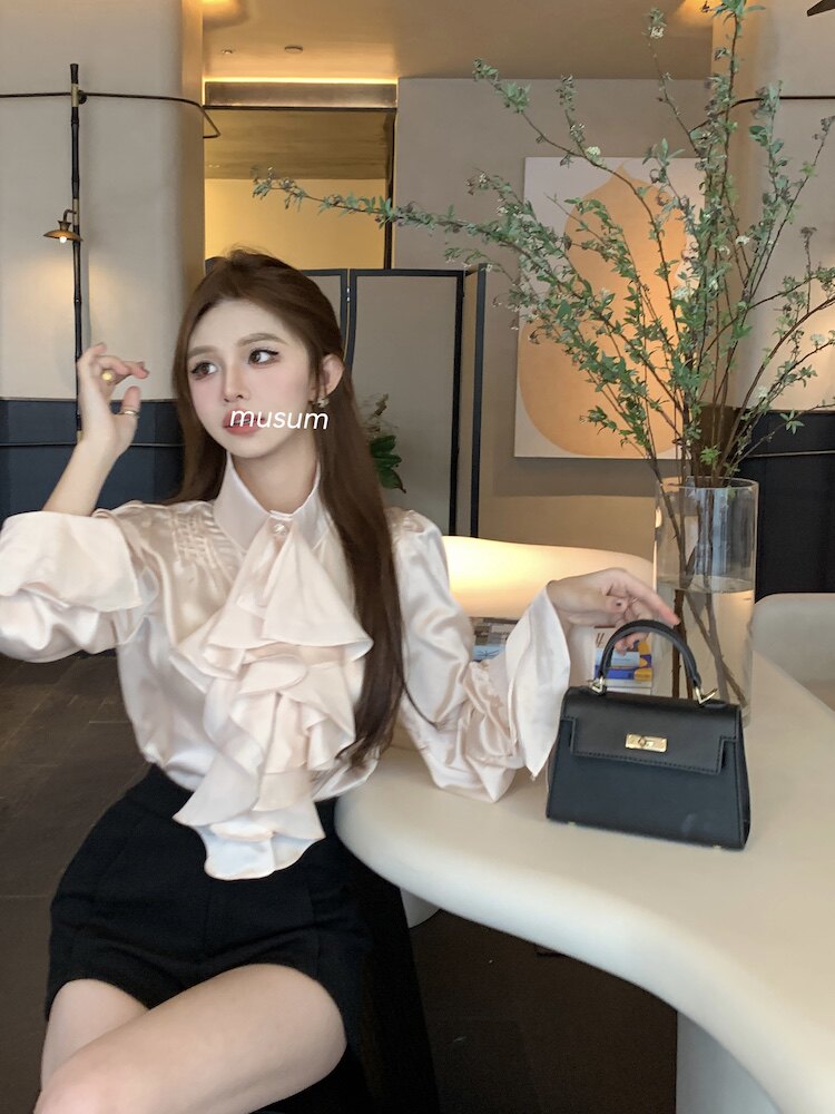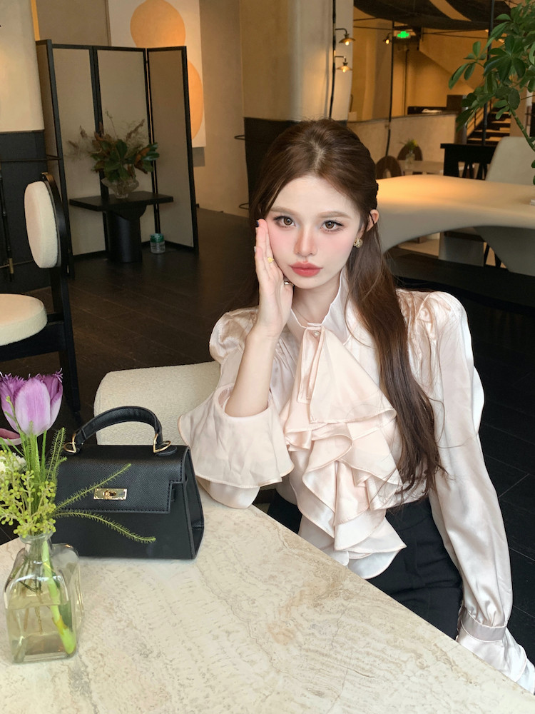 法式宮廷風立領緞面襯衫女裝長袖秋季輕熟氣質別致設計感小衆上衣