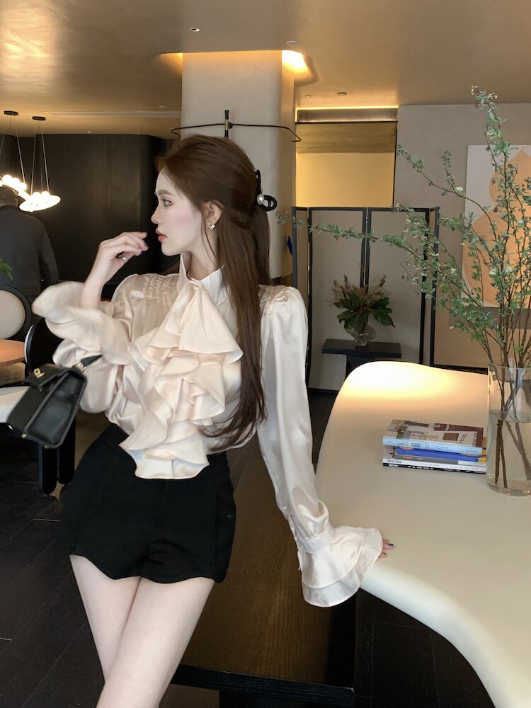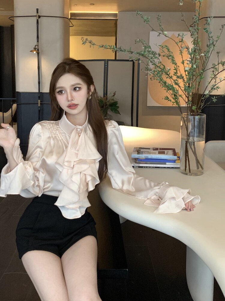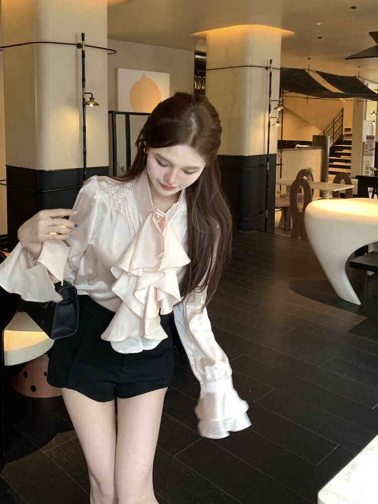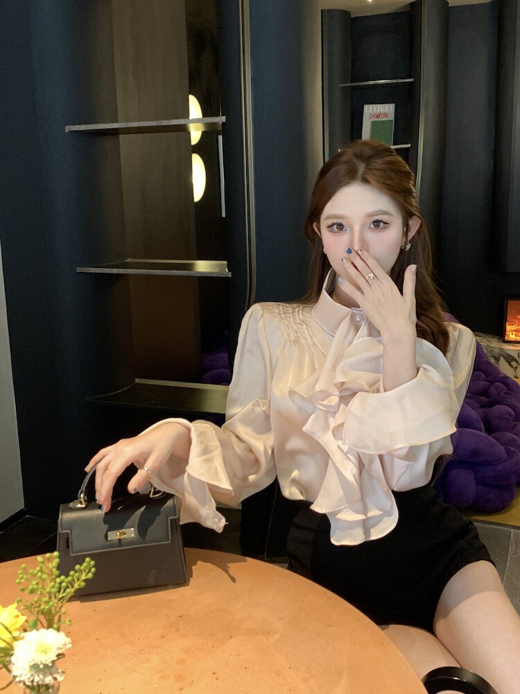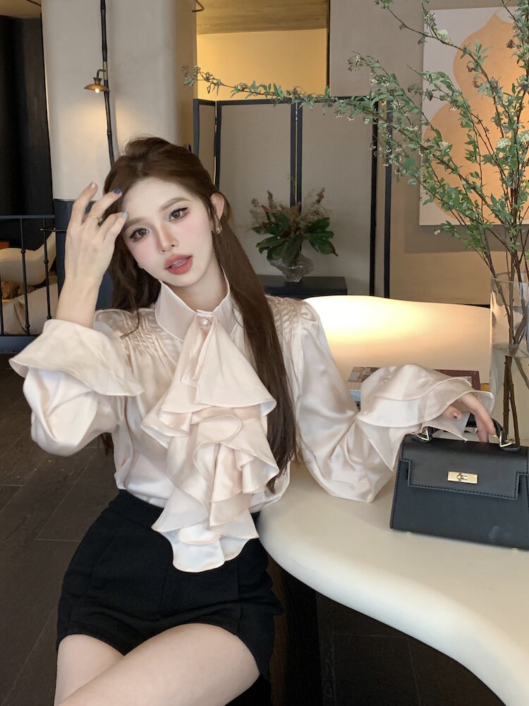 法式宮廷風立領緞面襯衫女裝長袖秋季輕熟氣質別致設計感小衆上衣
