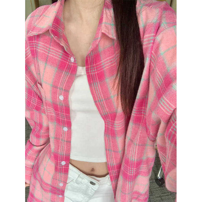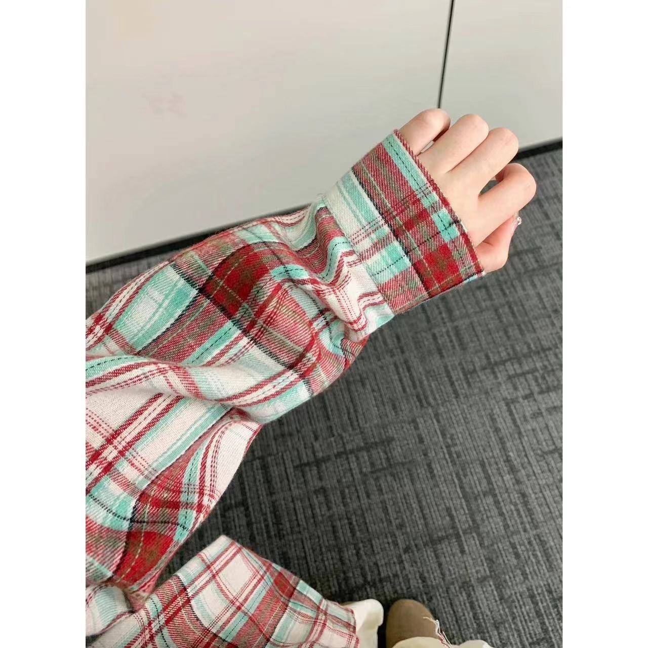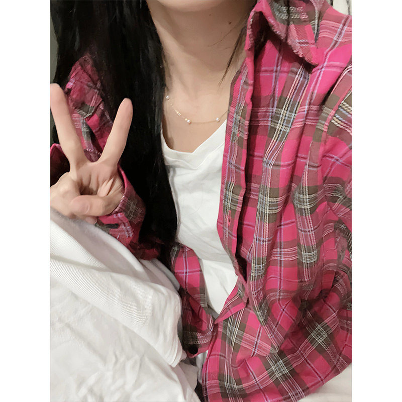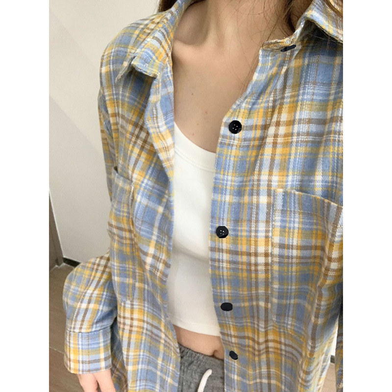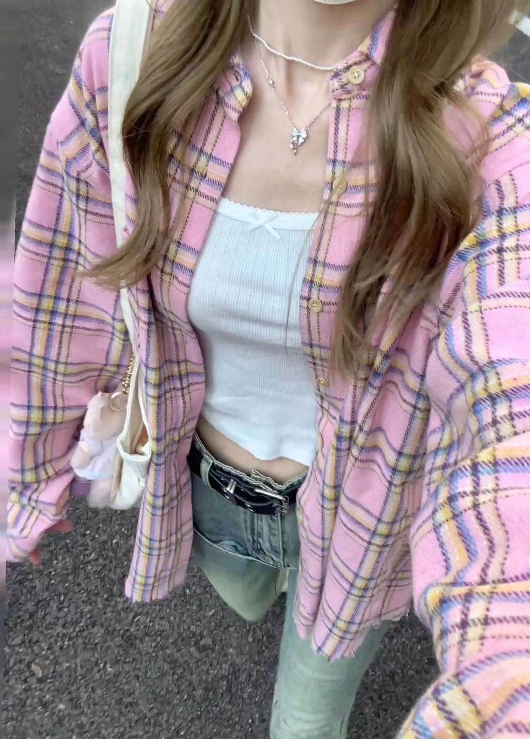 時尚洋氣多巴胺格子襯衫女外穿秋季新款寬鬆慵懶風薄款襯衣防曬衫