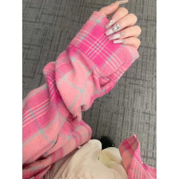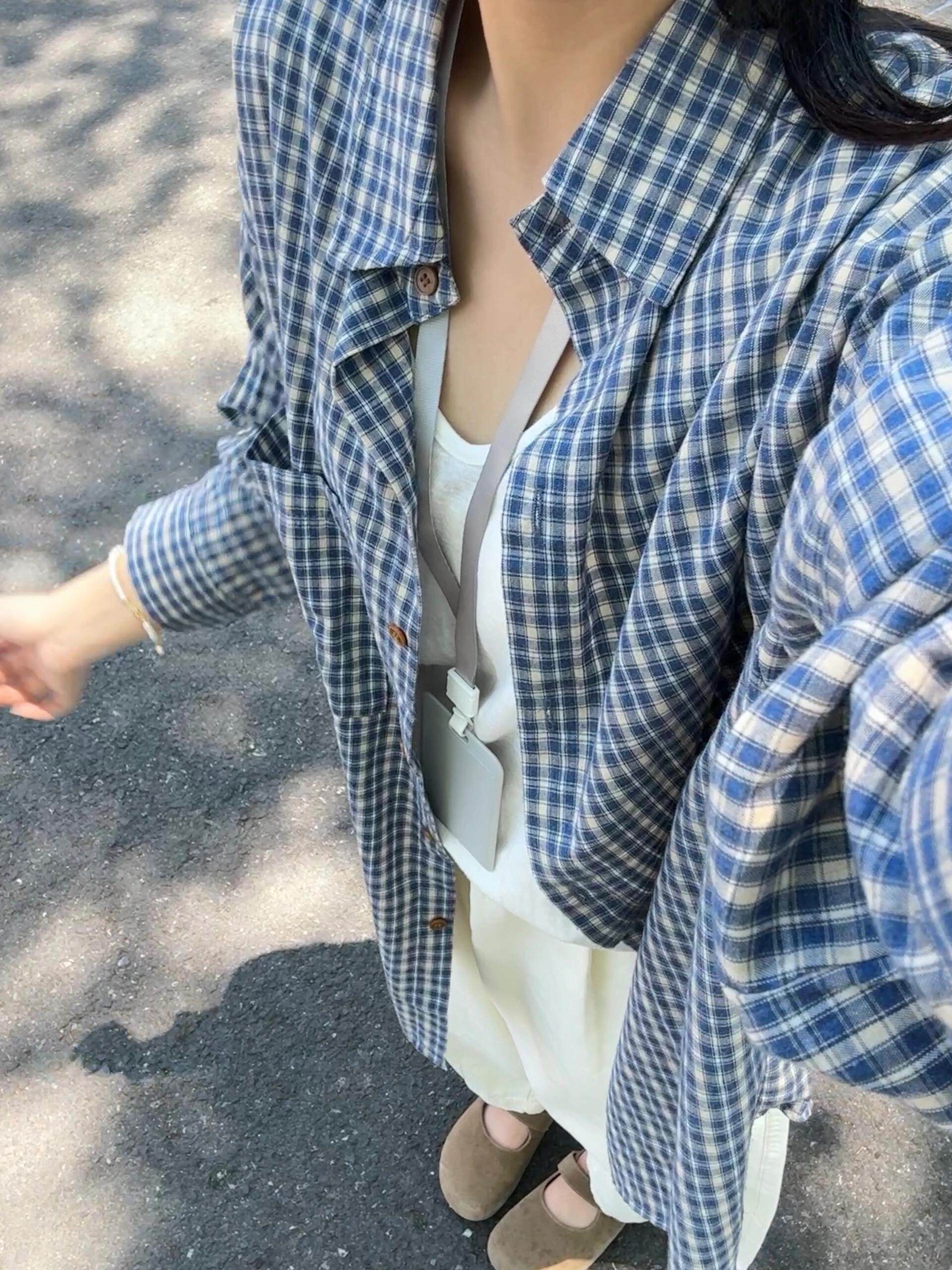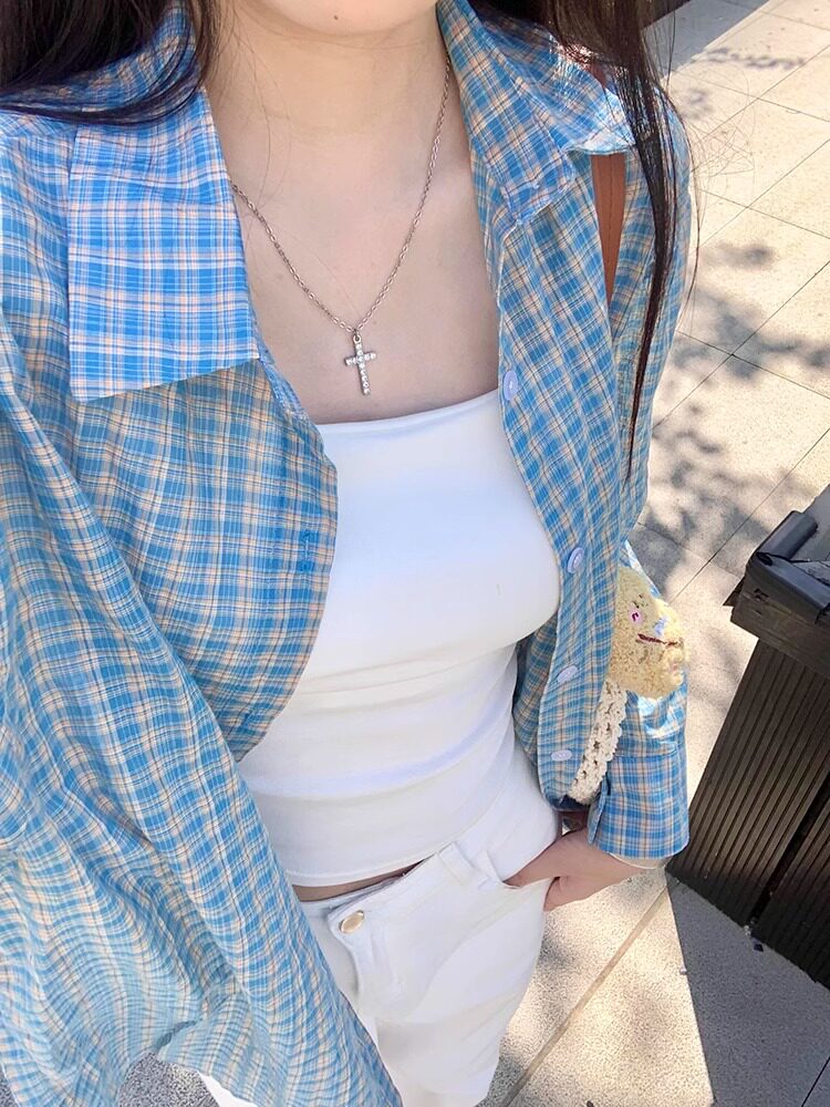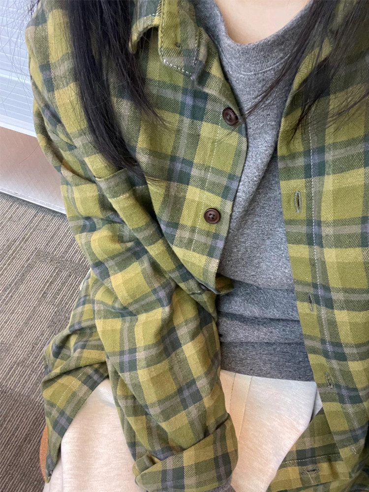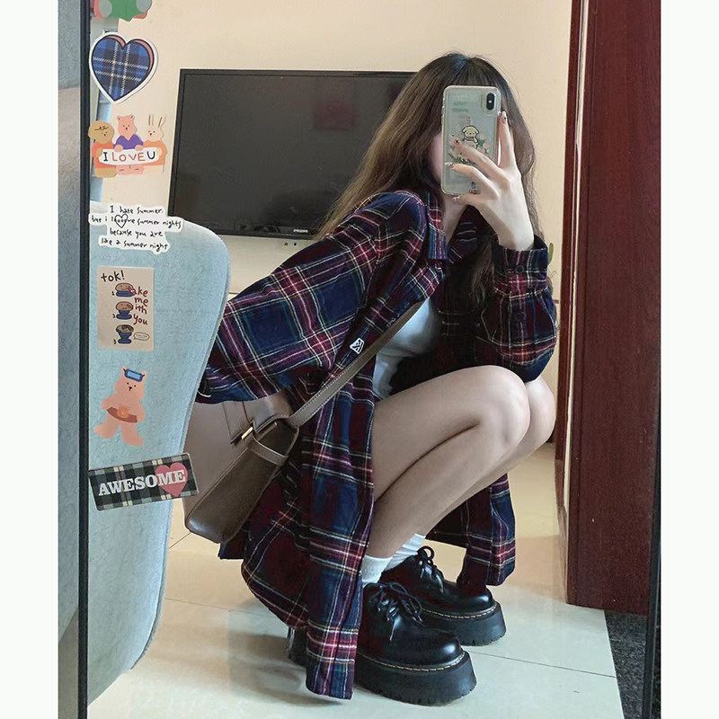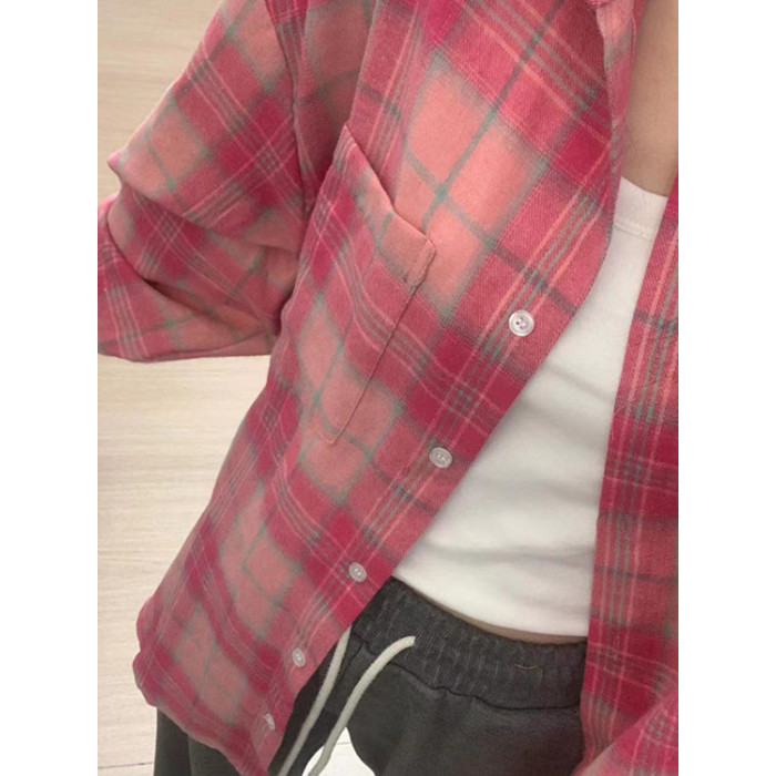 時尚洋氣多巴胺格子襯衫女外穿秋季新款寬鬆慵懶風薄款襯衣防曬衫