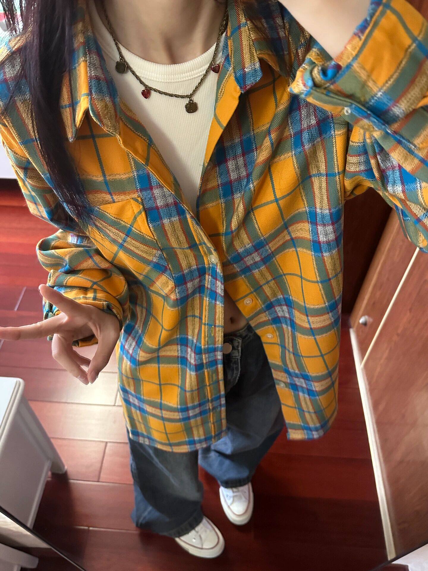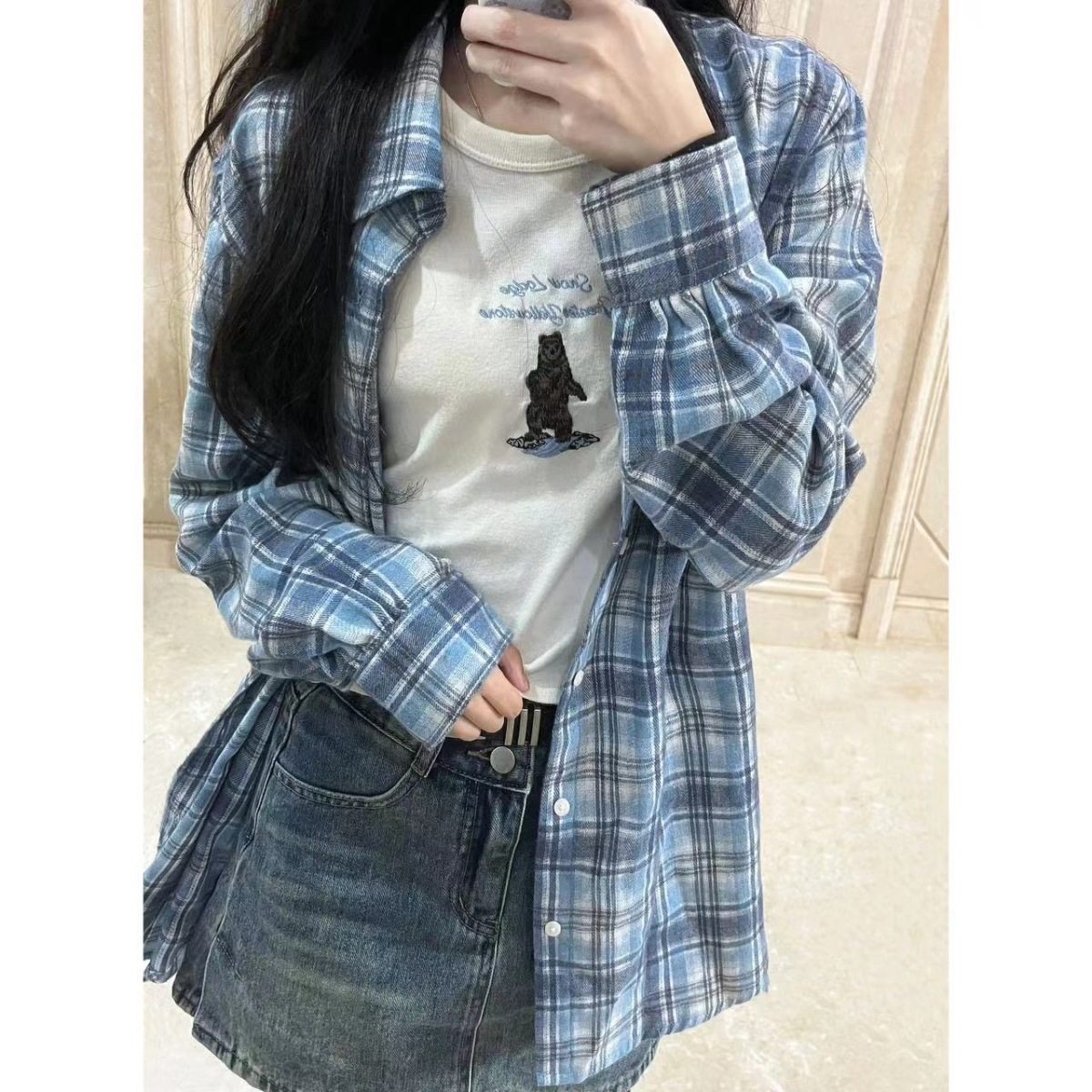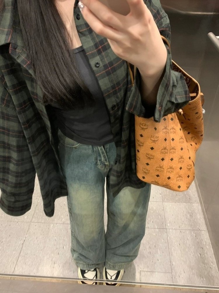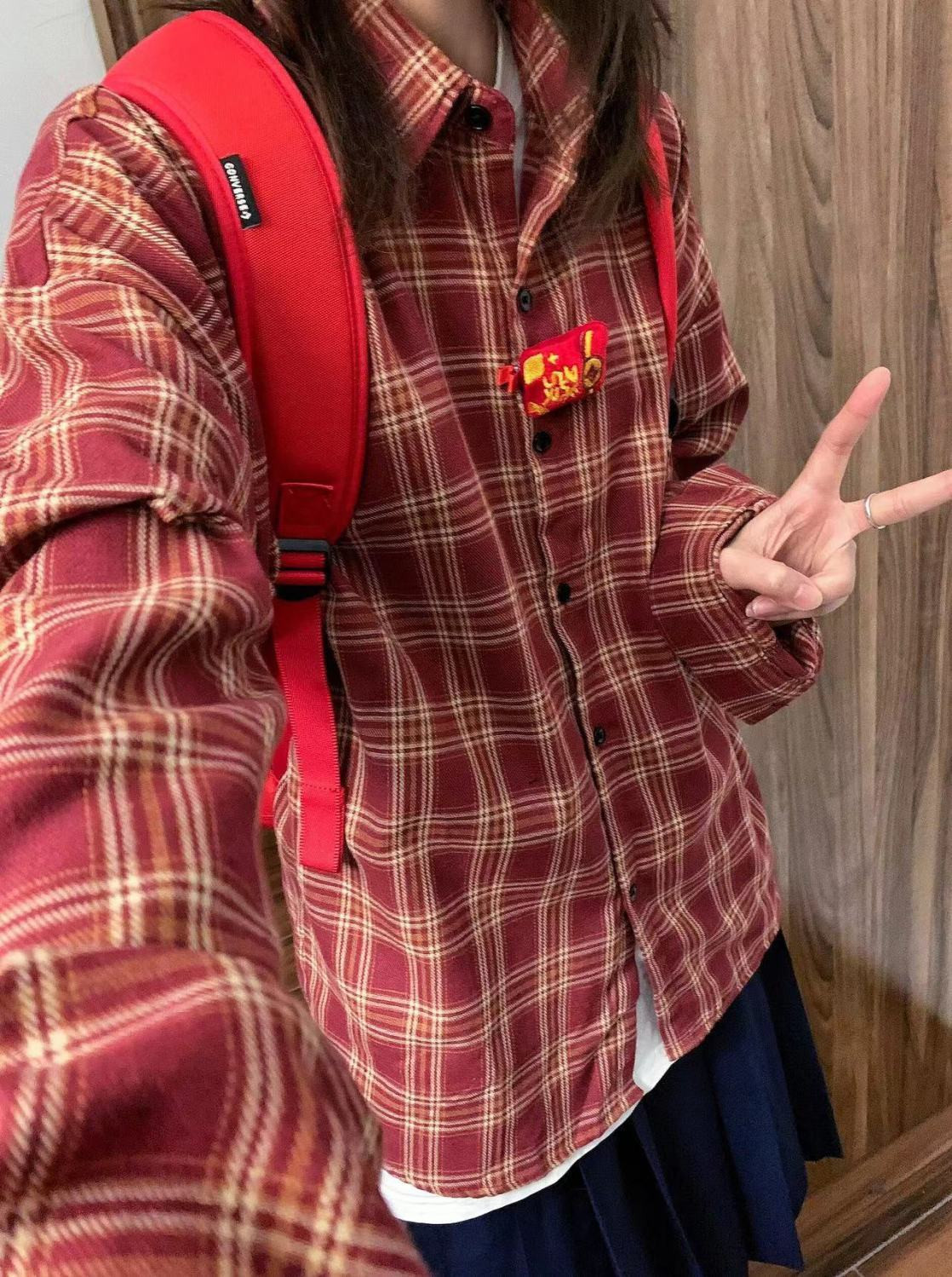 時尚洋氣多巴胺格子襯衫女外穿秋季新款寬鬆慵懶風薄款襯衣防曬衫