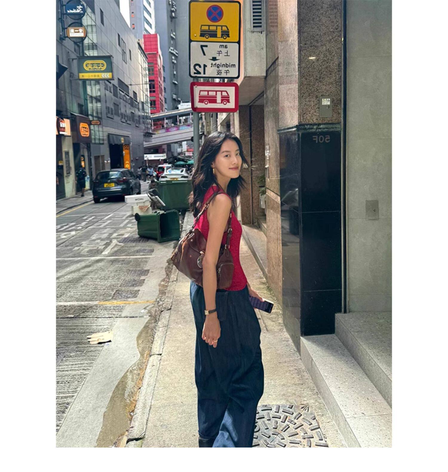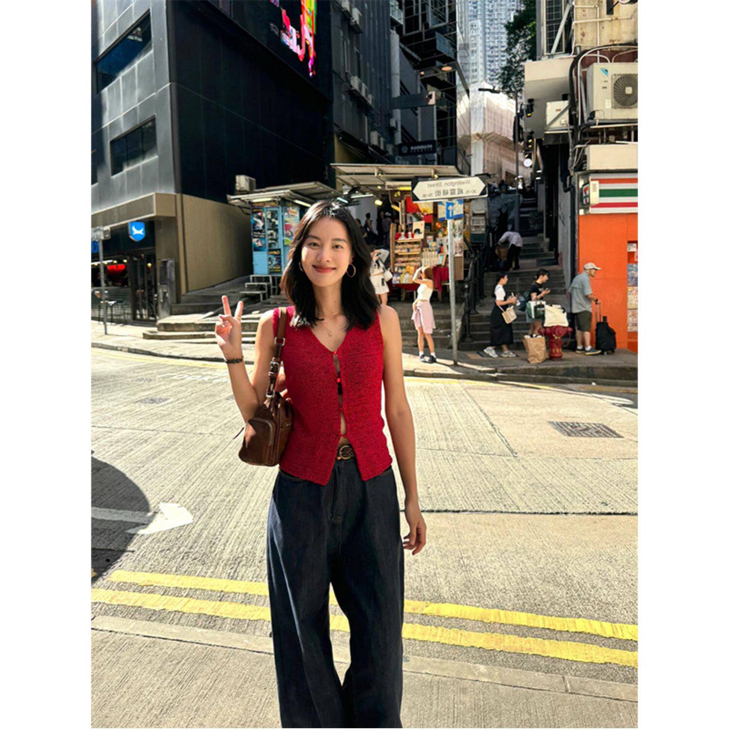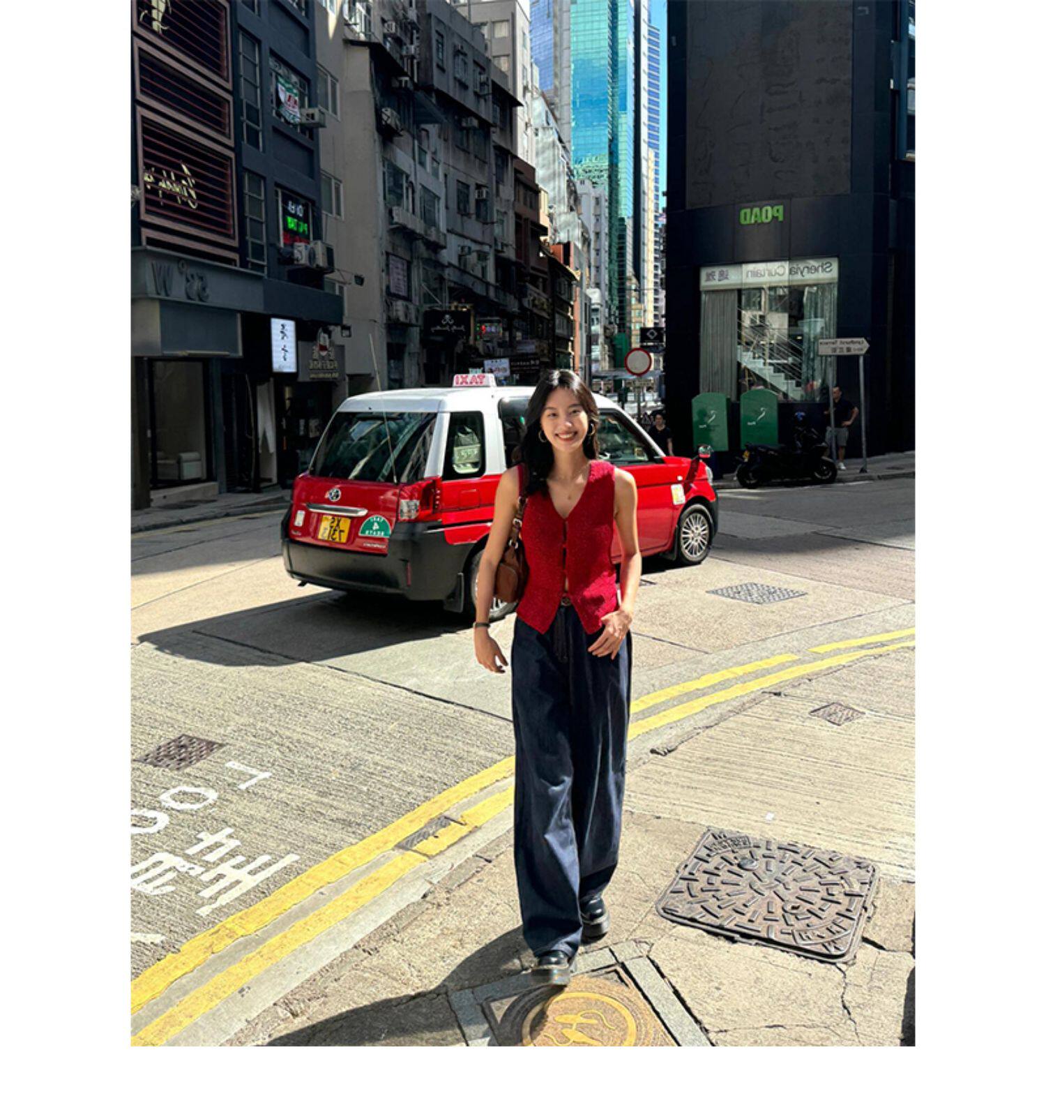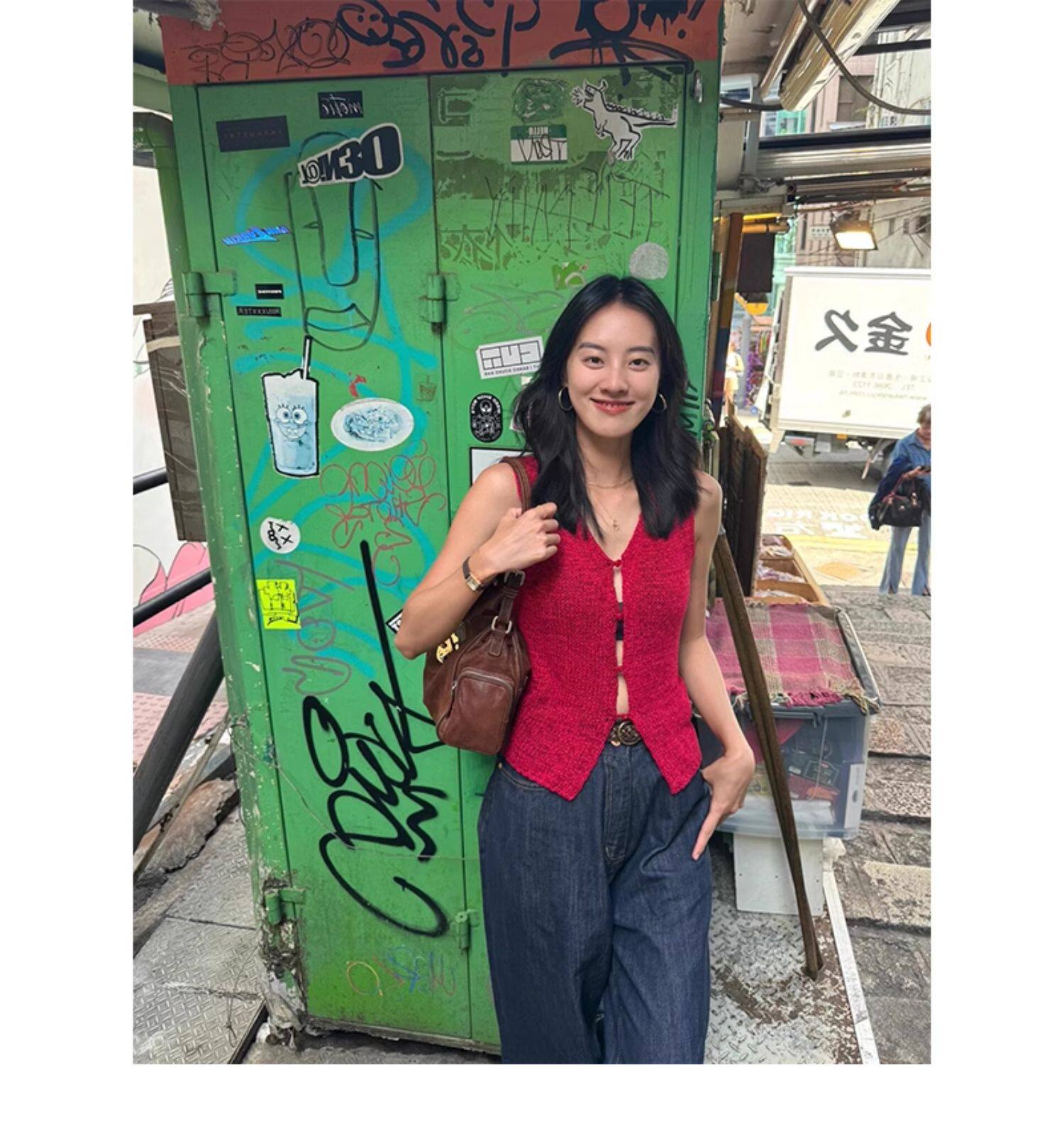 Turn right/陳大腿 氣質紅色V領針織背心馬甲女無袖內搭外穿上衣