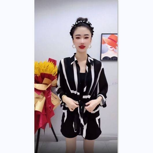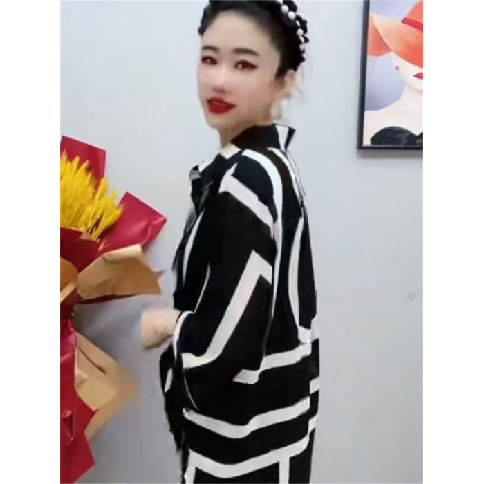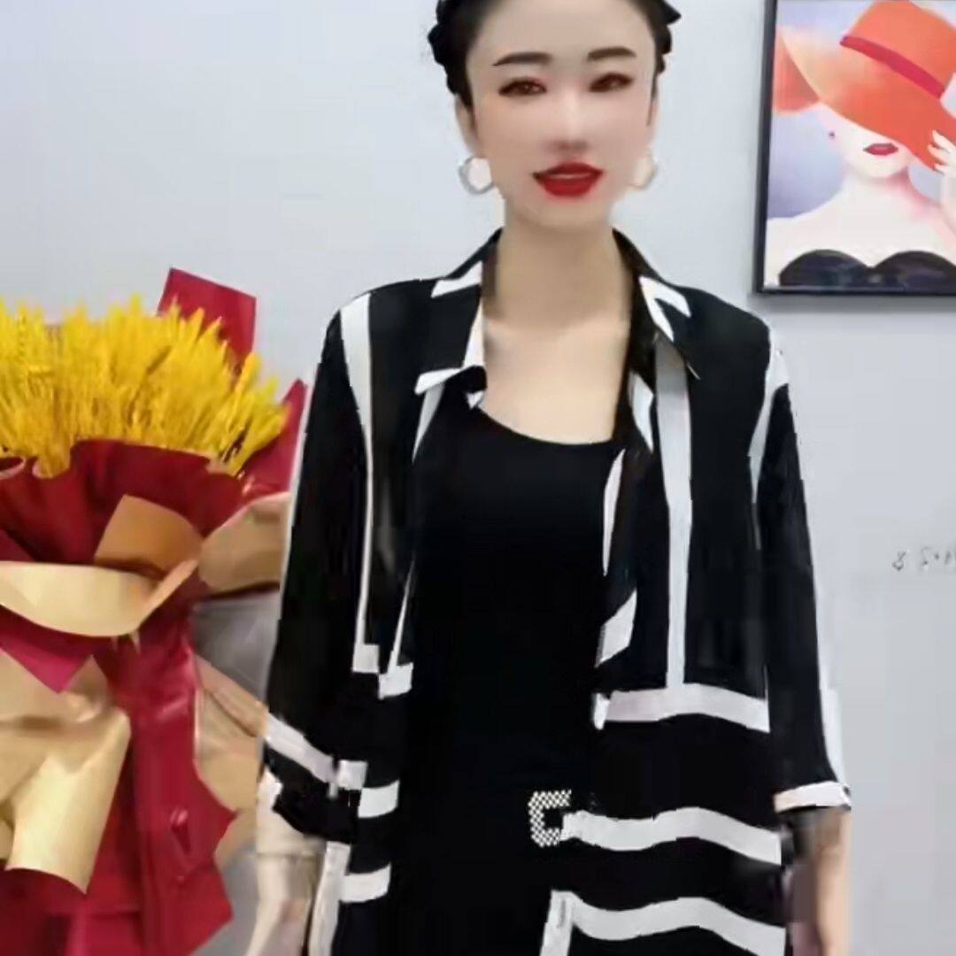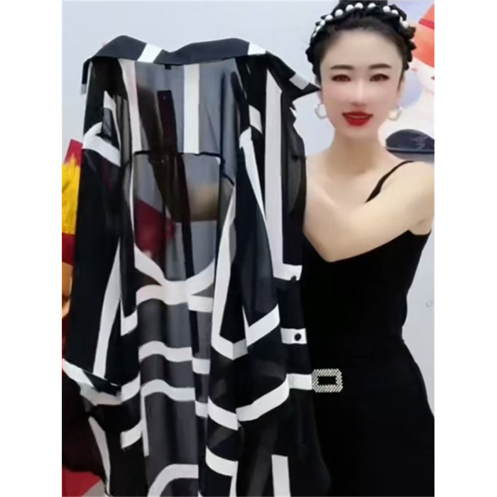時尚防曬衣雪紡衫女夏大碼寬鬆撞色條紋polo領中長款薄款透氣外套