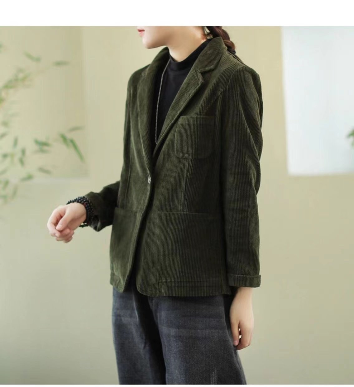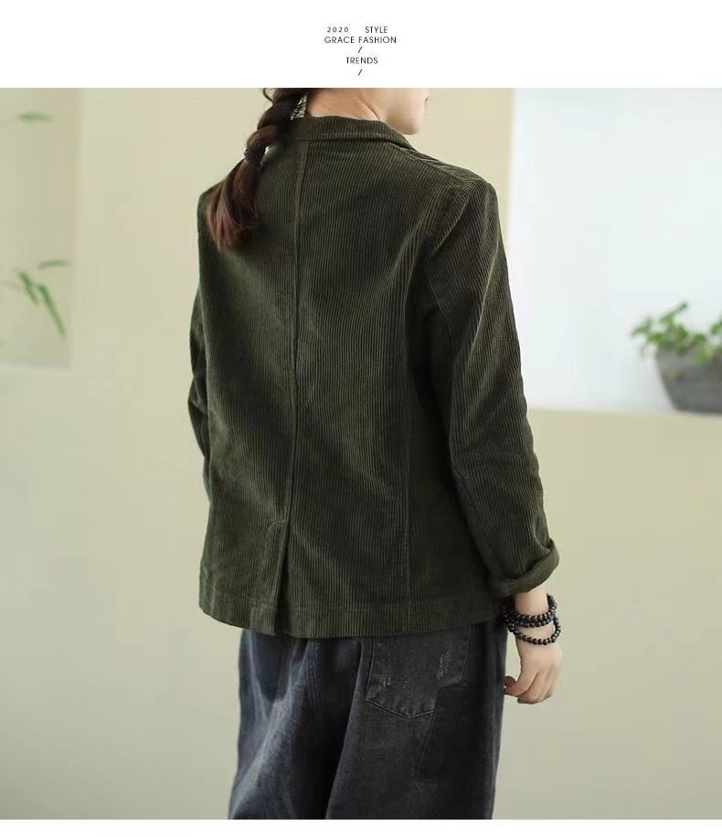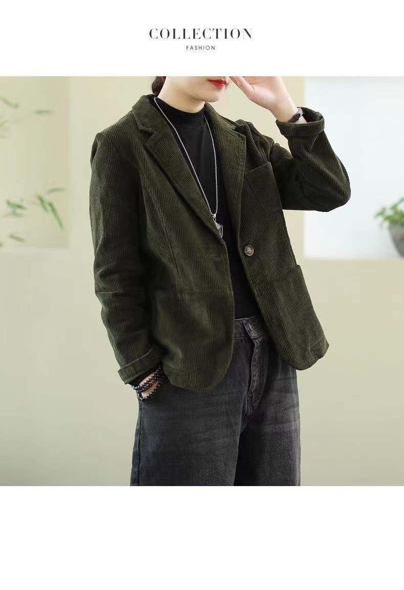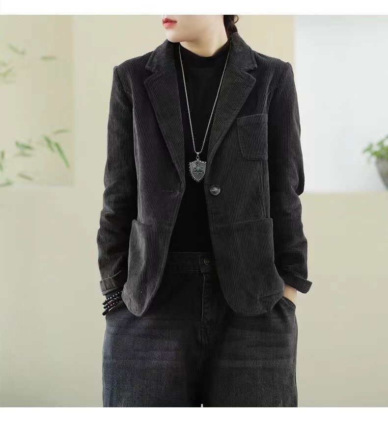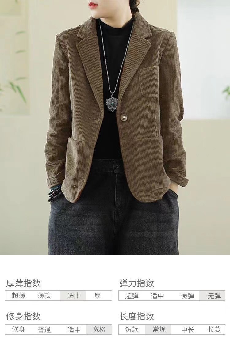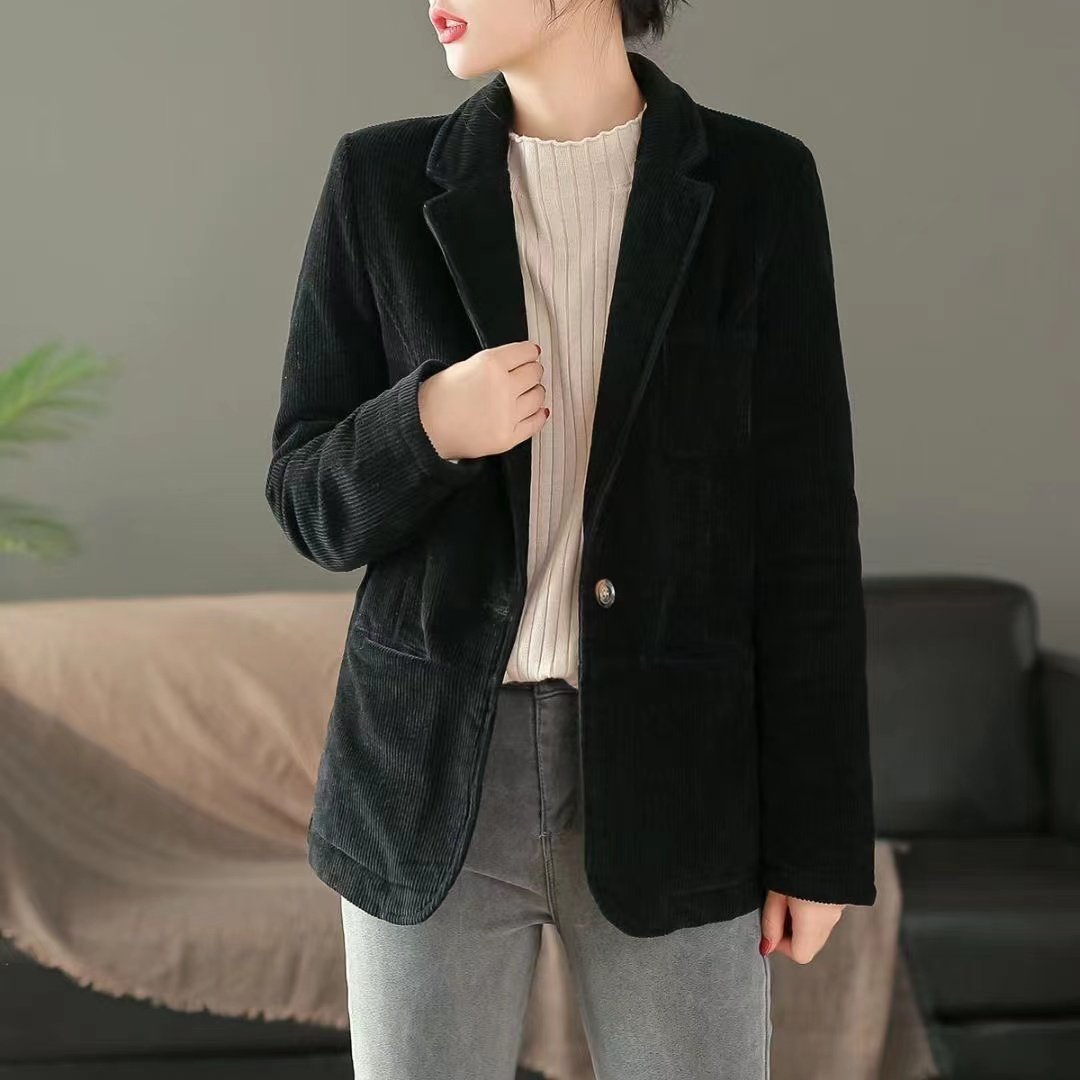 日系高級出口燈芯絨西裝外套女春秋季修身百搭寬鬆小西服上衣