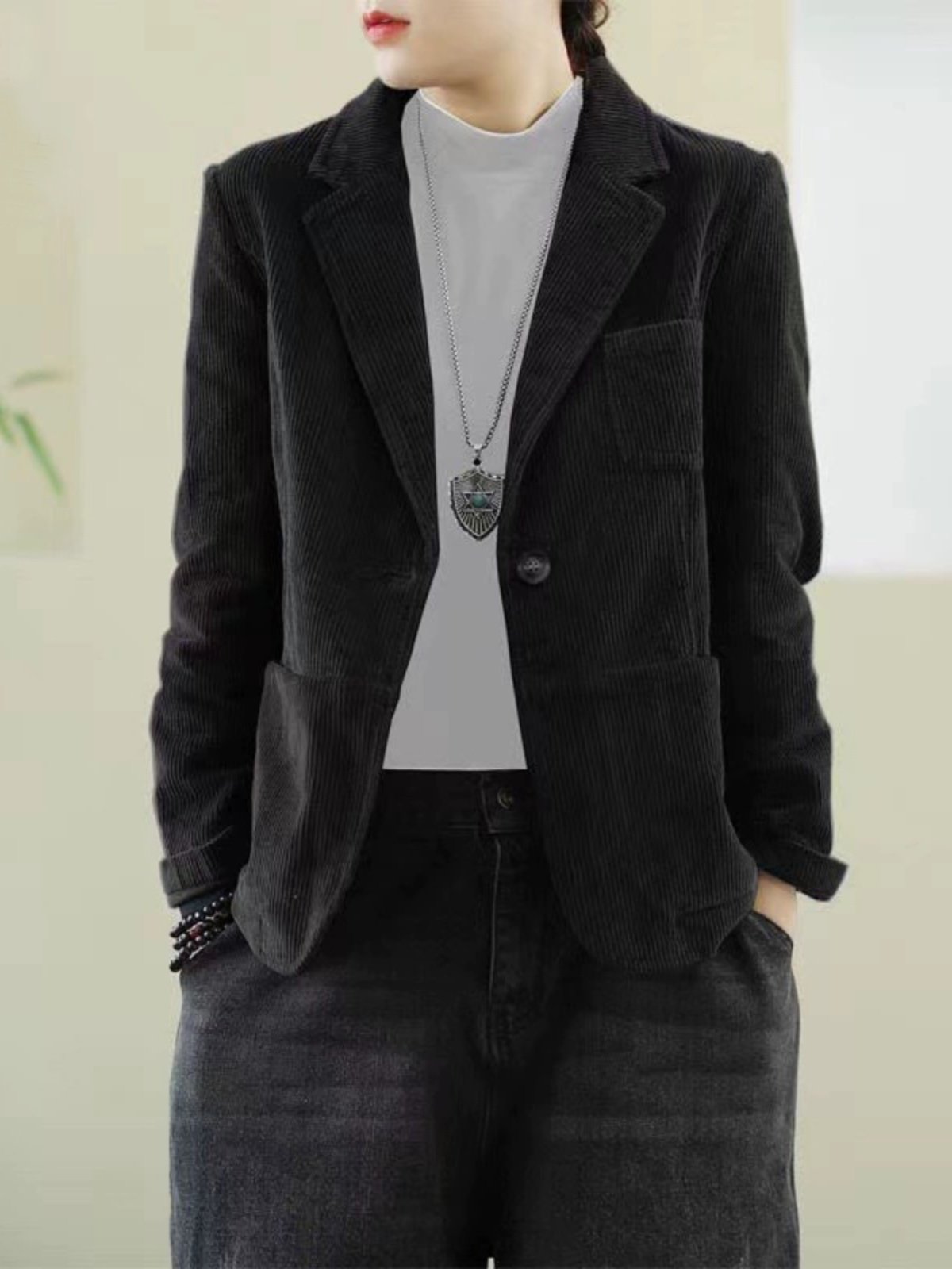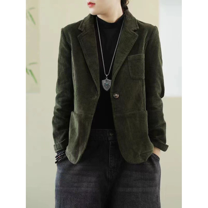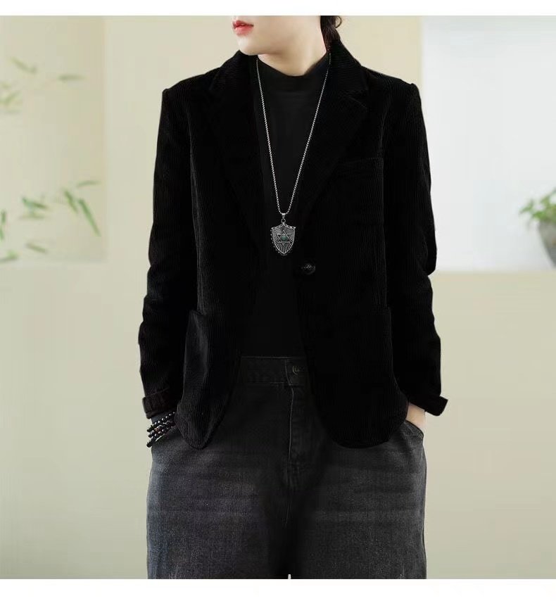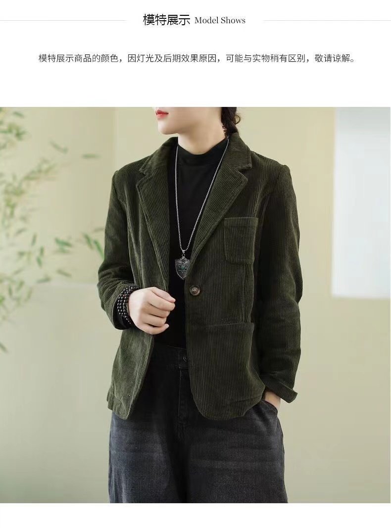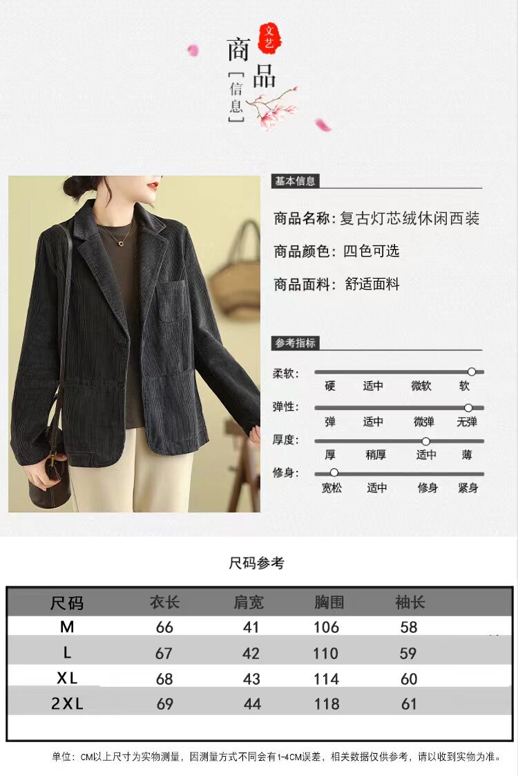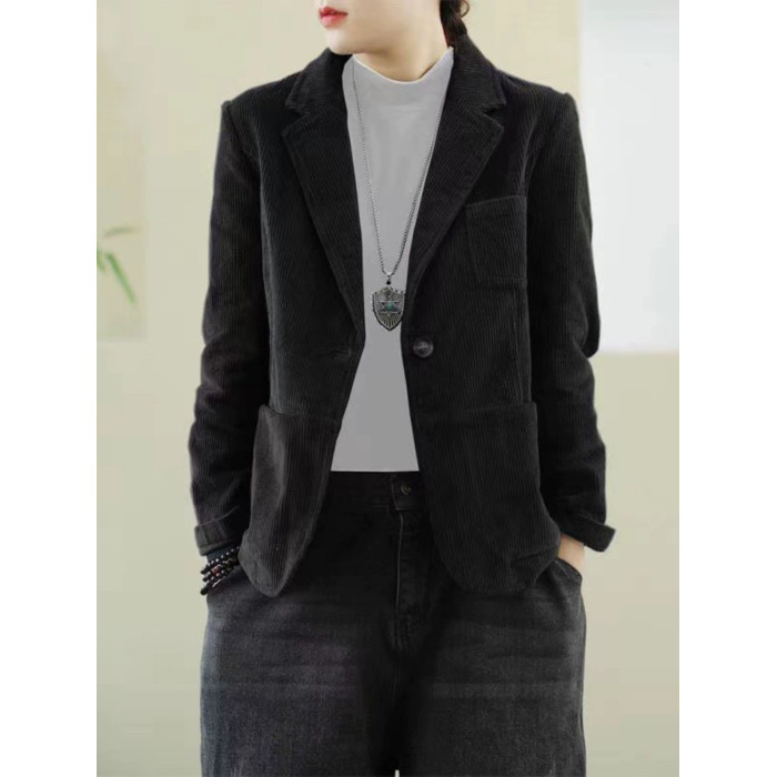 日系高級出口燈芯絨西裝外套女春秋季修身百搭寬鬆小西服上衣