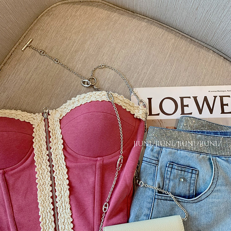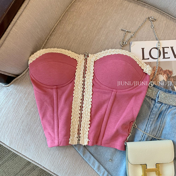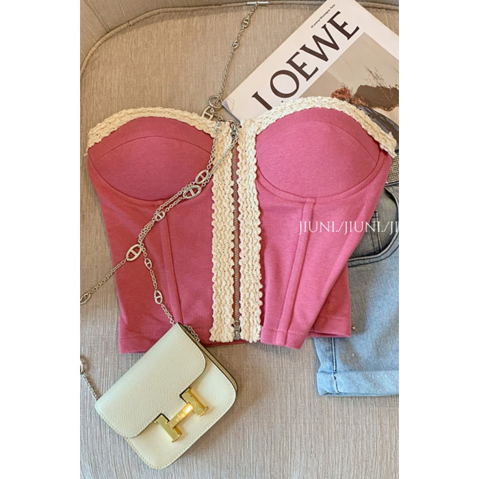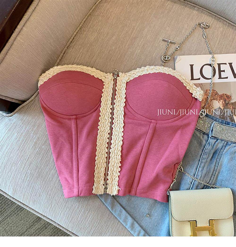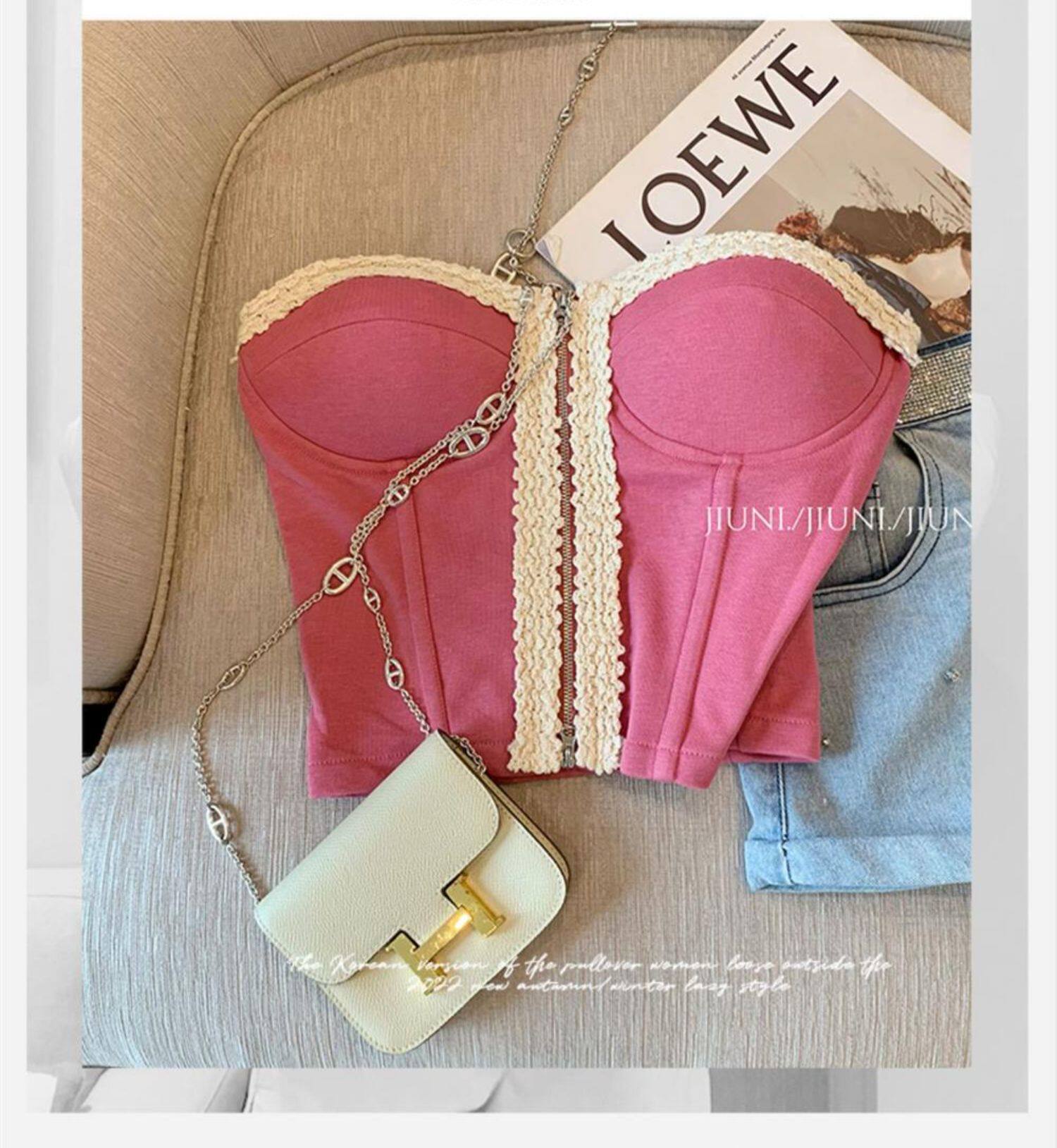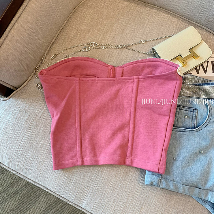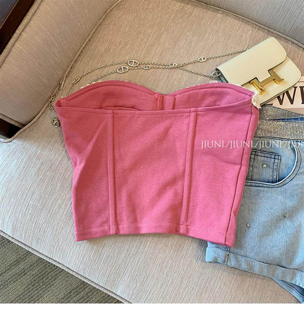 專櫃撤廻剪標玫粉色魚骨抹胸上衣女外穿2025新款氣質甜辣顯瘦吊帶