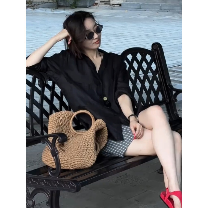 法式赫本風寬鬆顯瘦遮肉氣質襯衫女士春夏極簡風通勤休閒百搭上衣