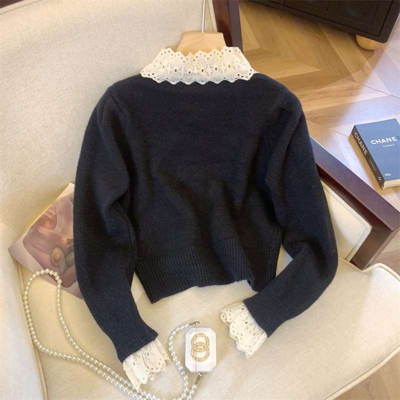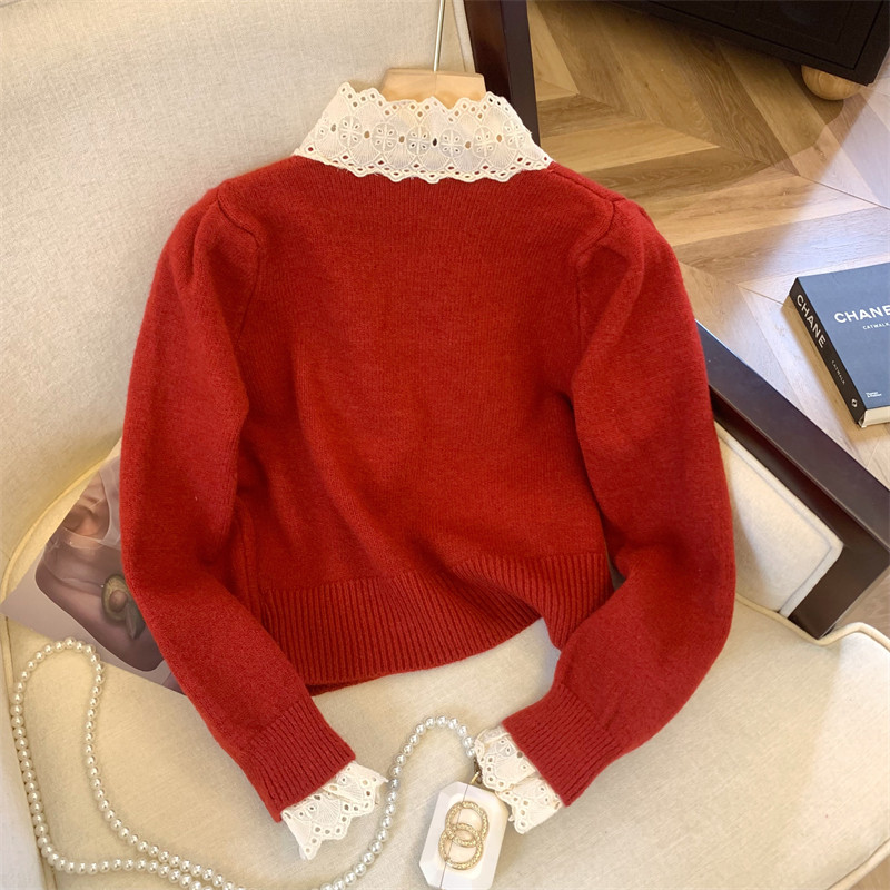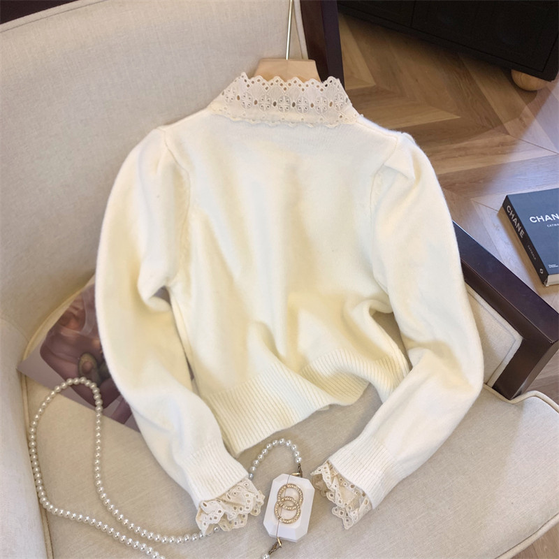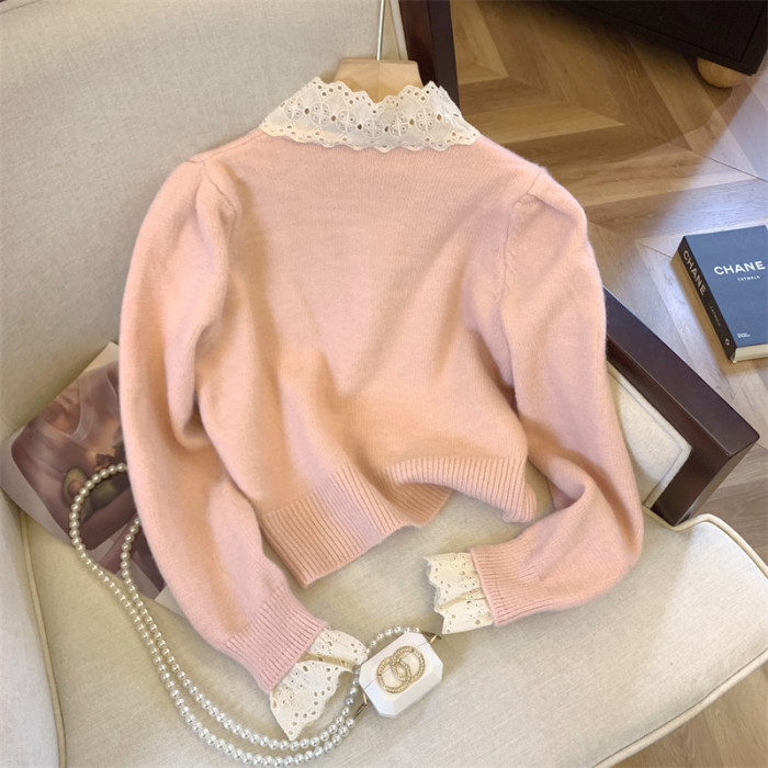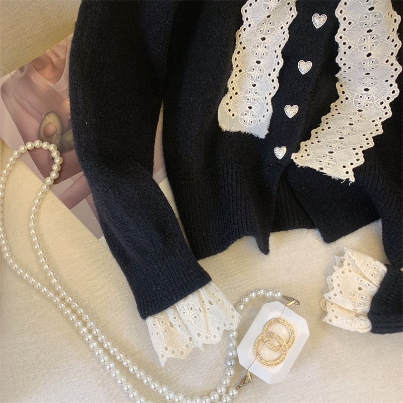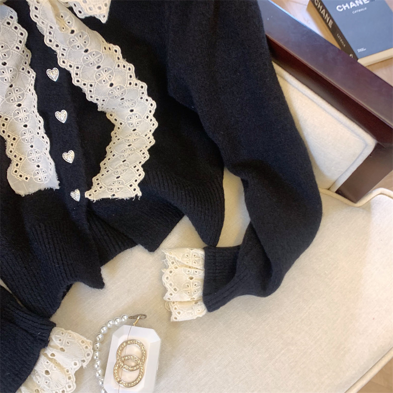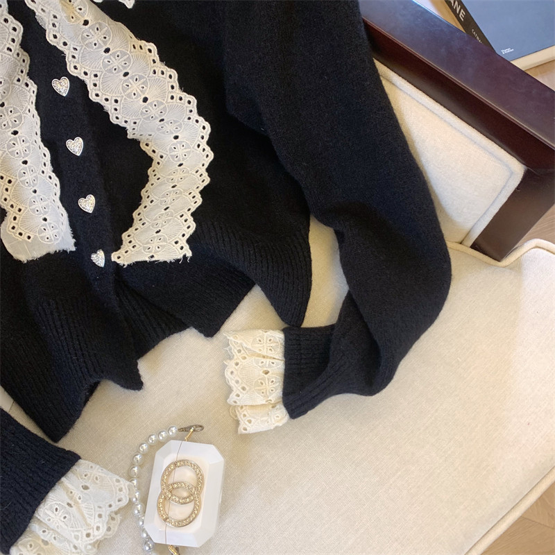 大牌買手店法式蕾絲花邊蝴蝶結針織開衫女冬季新款超好看毛衣外套