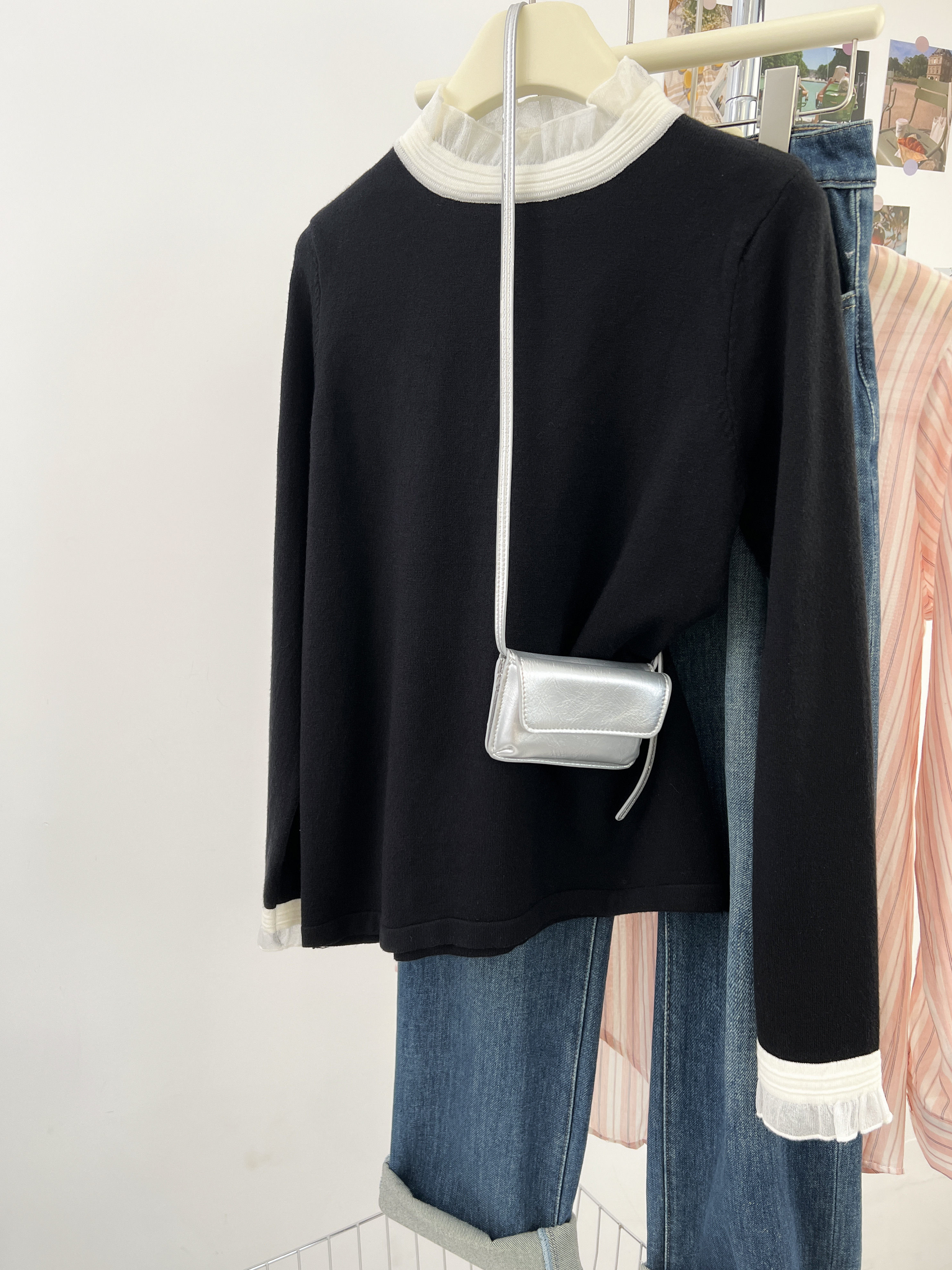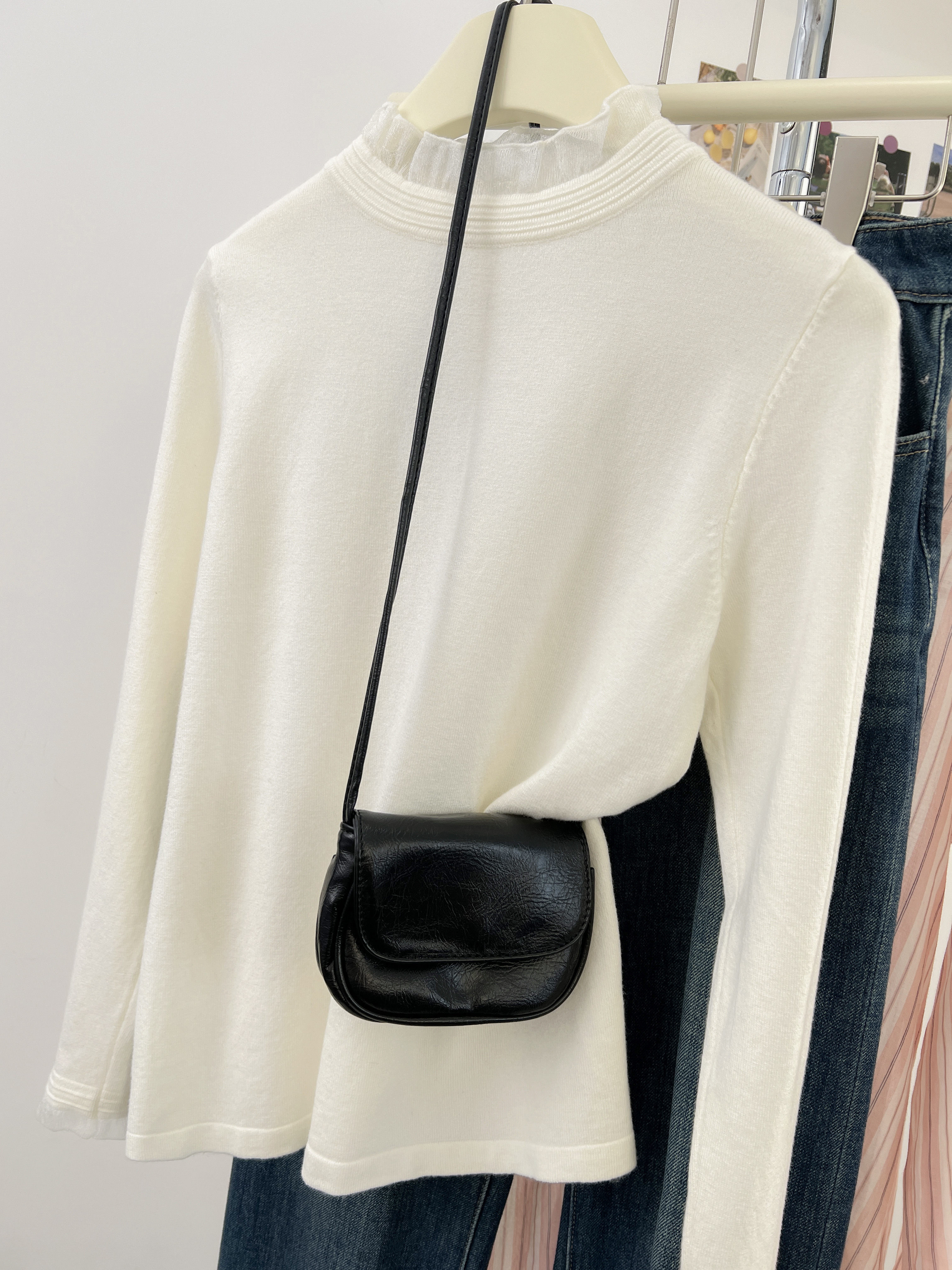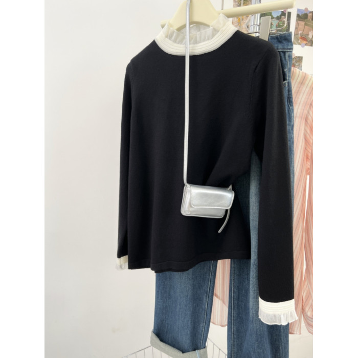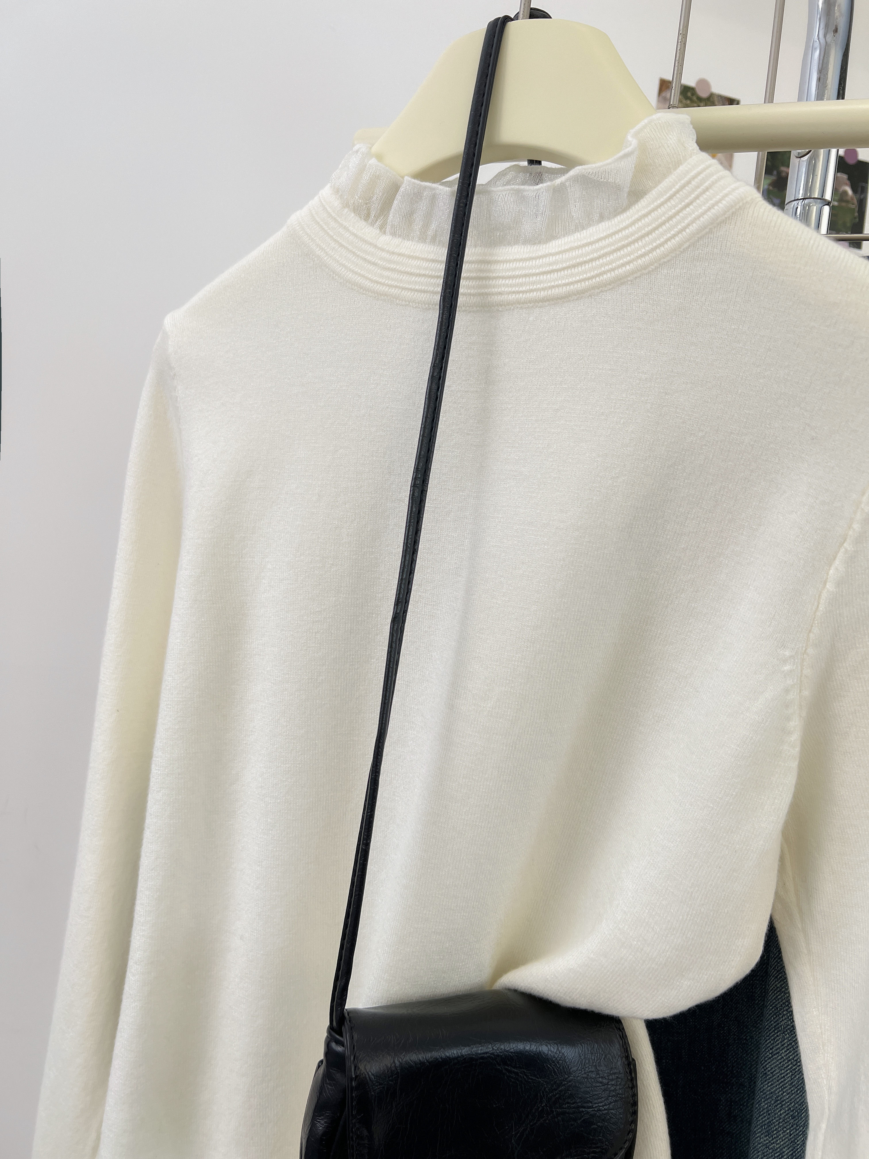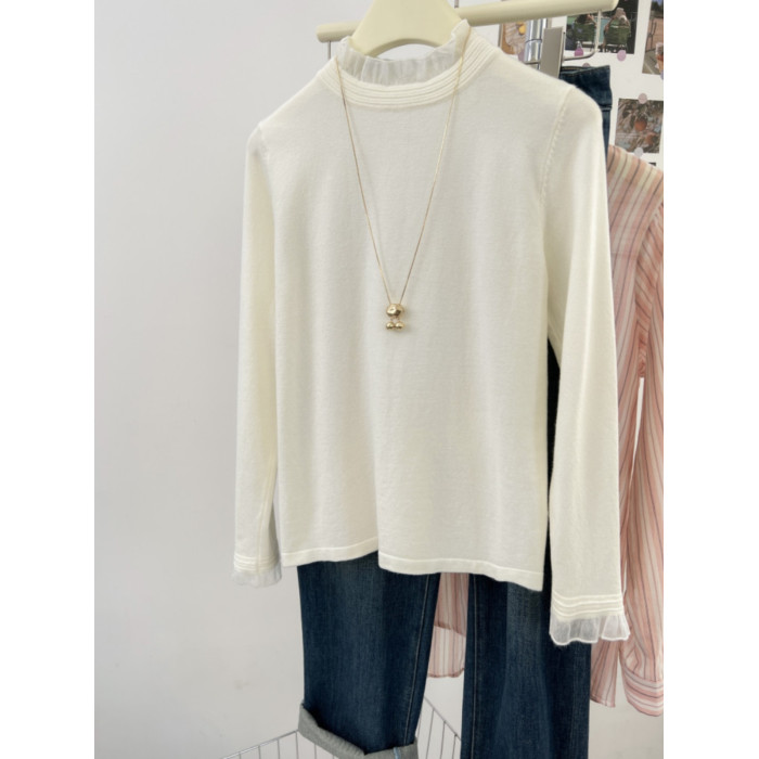 大牌撤櫃剪標花邊木耳領長袖針織衫女秋季設計感毛衣內搭打底上衣