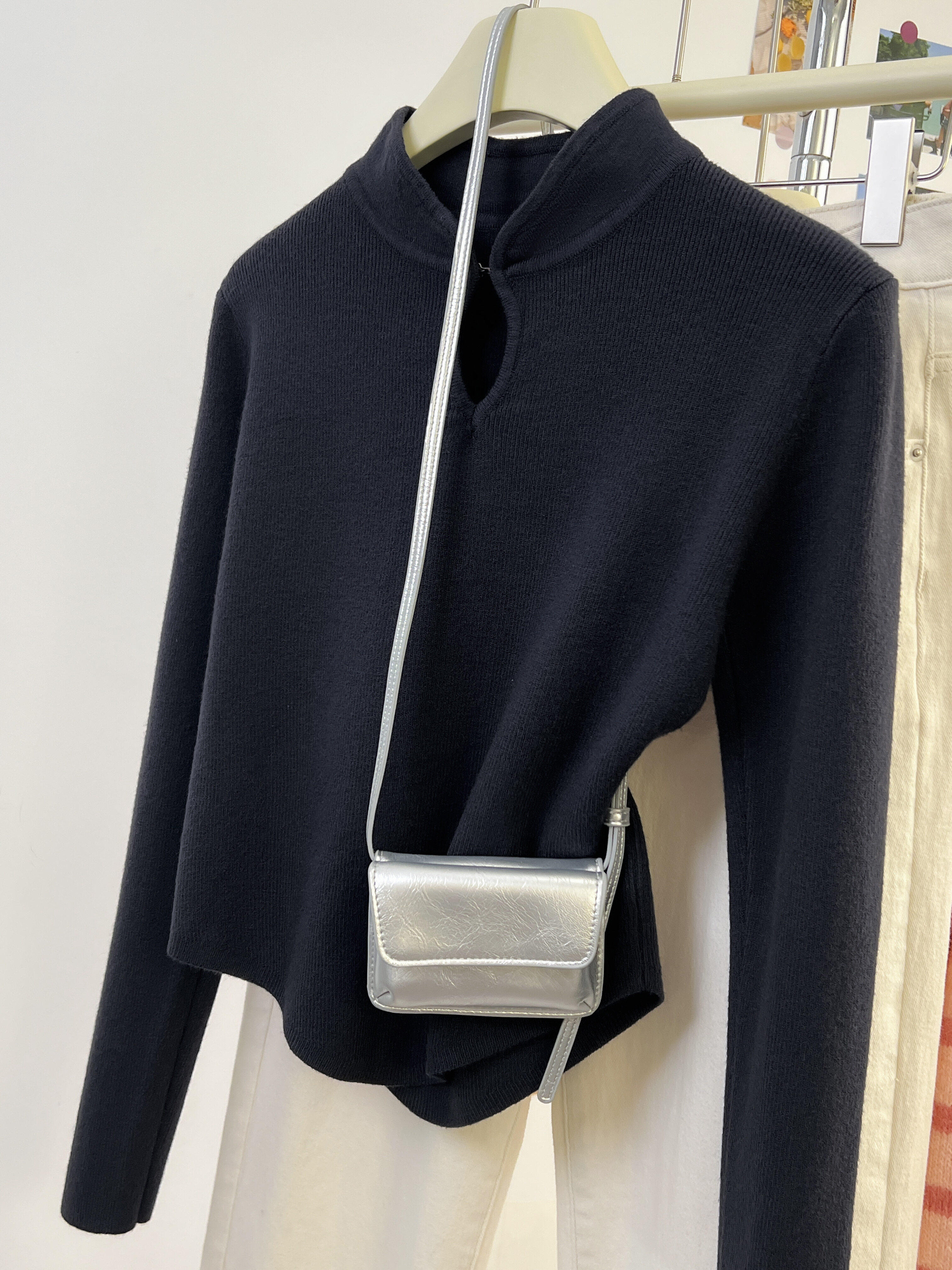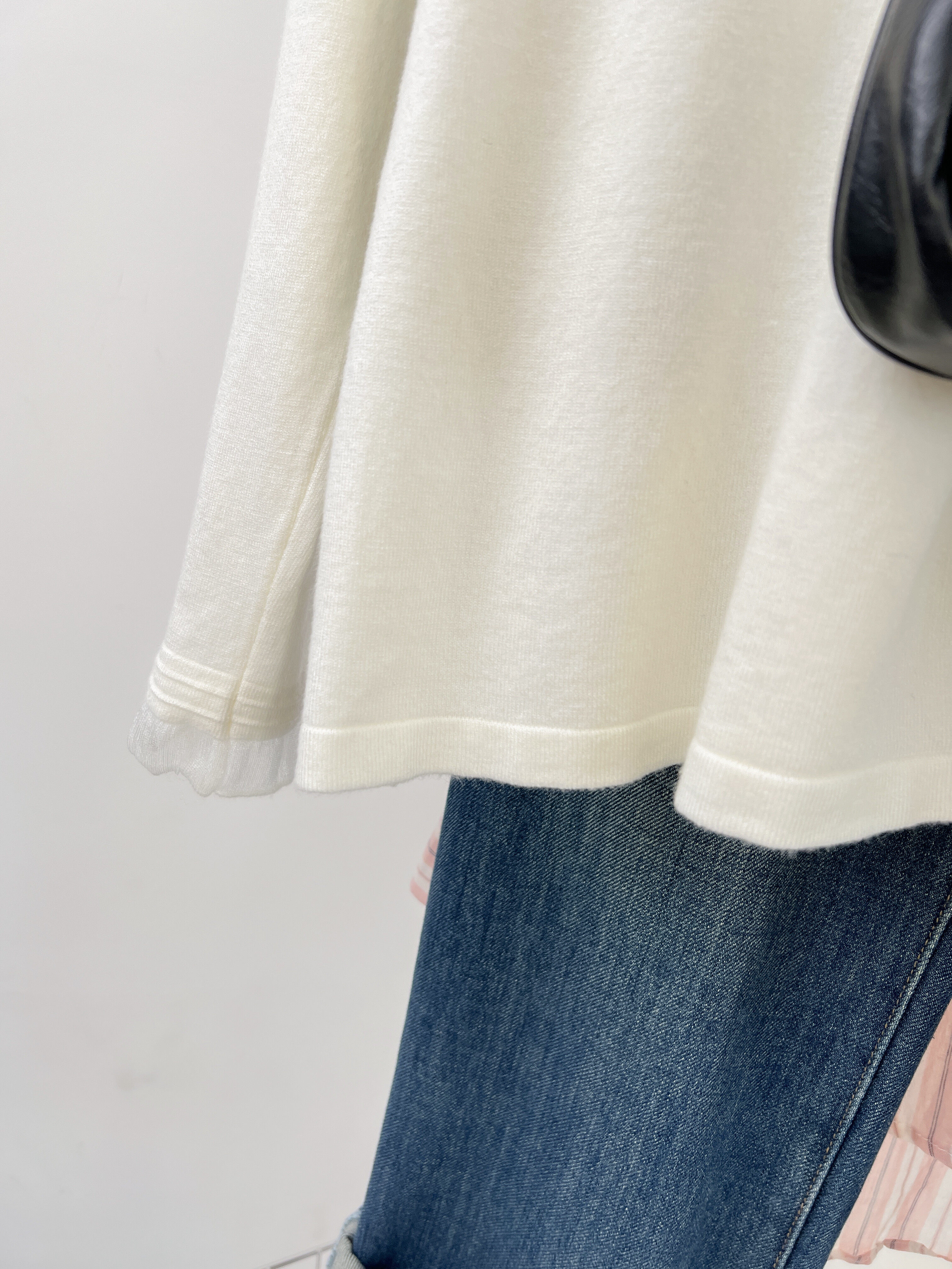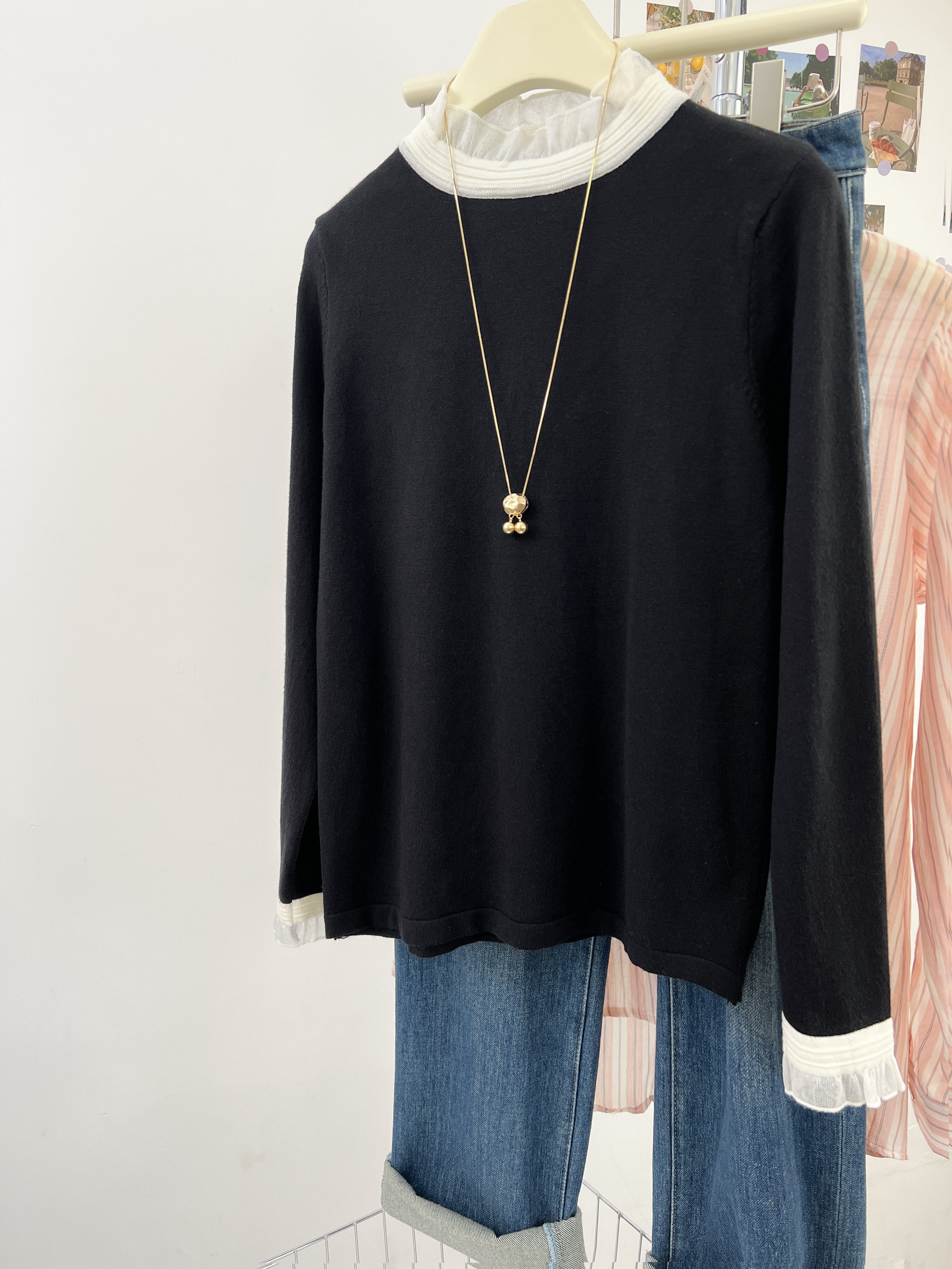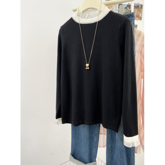 大牌撤櫃剪標花邊木耳領長袖針織衫女秋季設計感毛衣內搭打底上衣