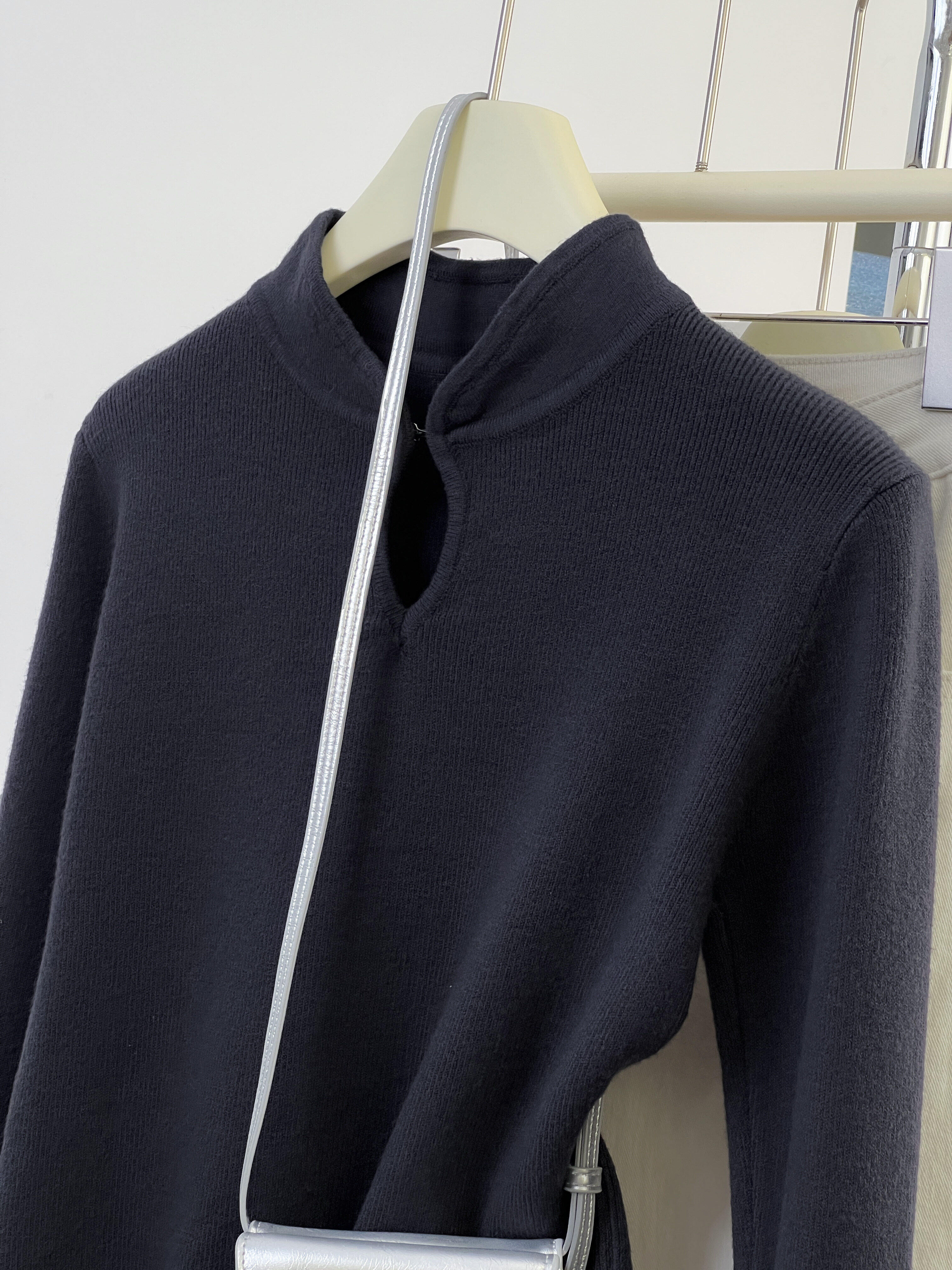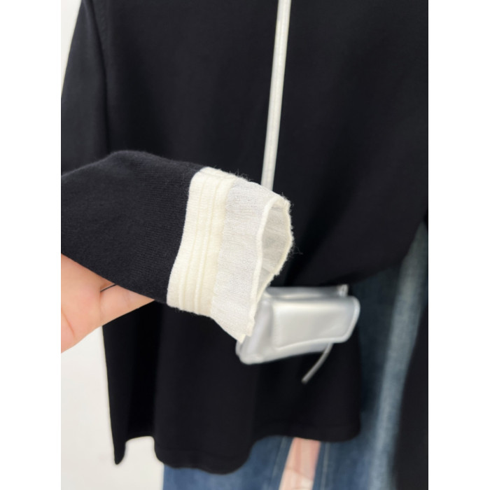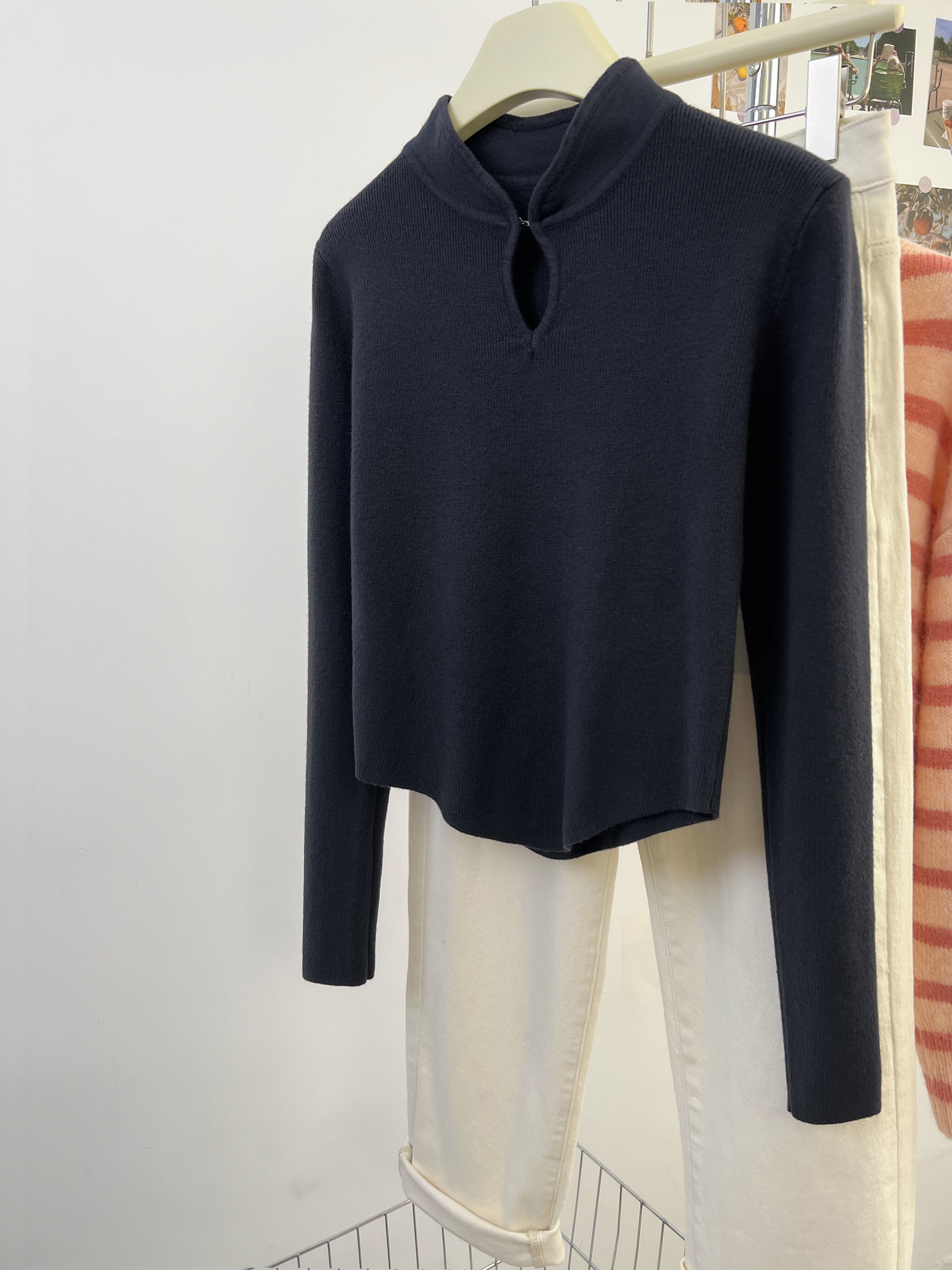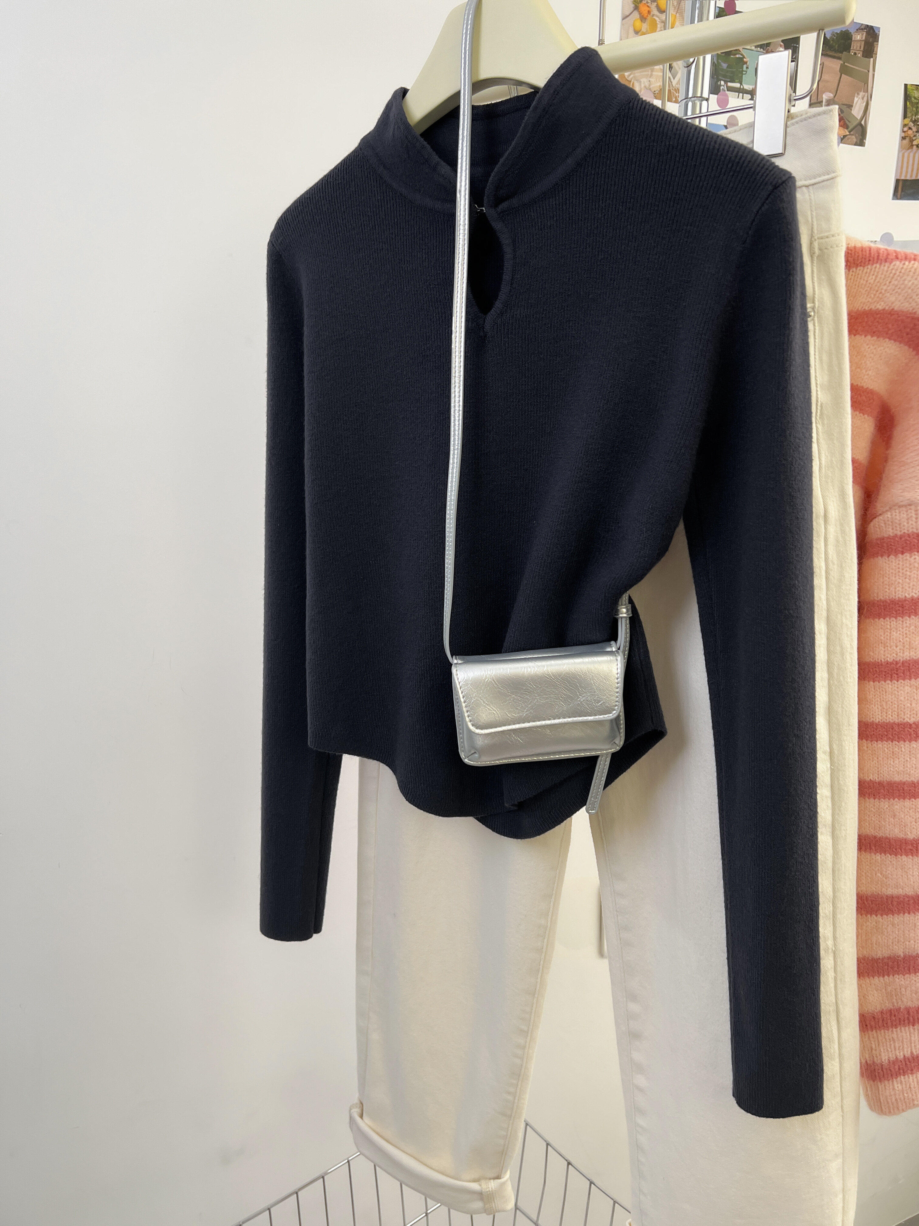 大牌撤櫃剪標花邊木耳領長袖針織衫女秋季設計感毛衣內搭打底上衣