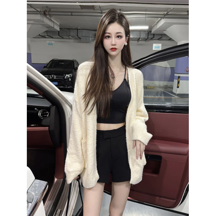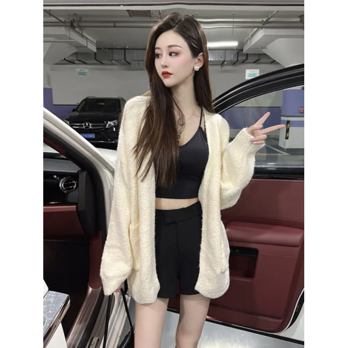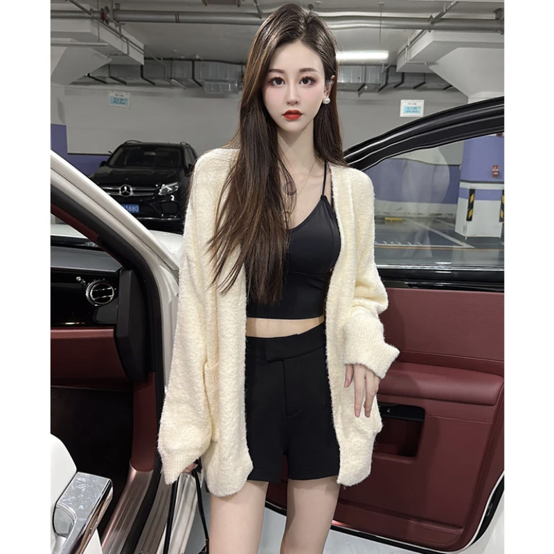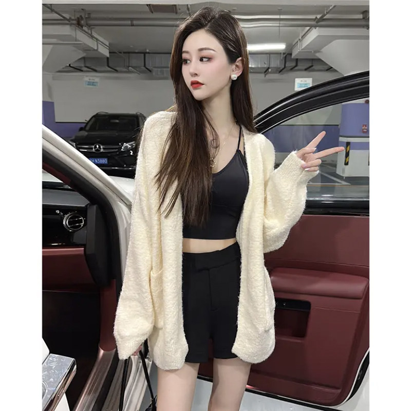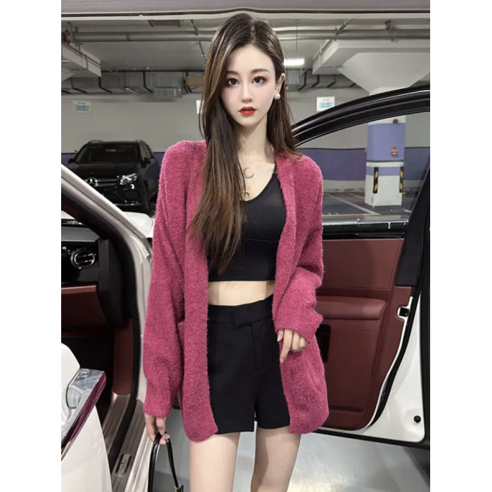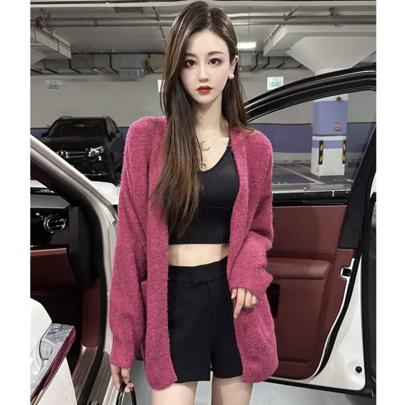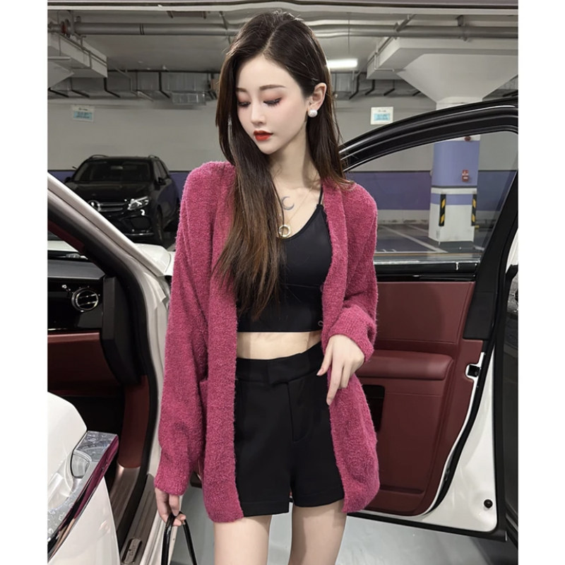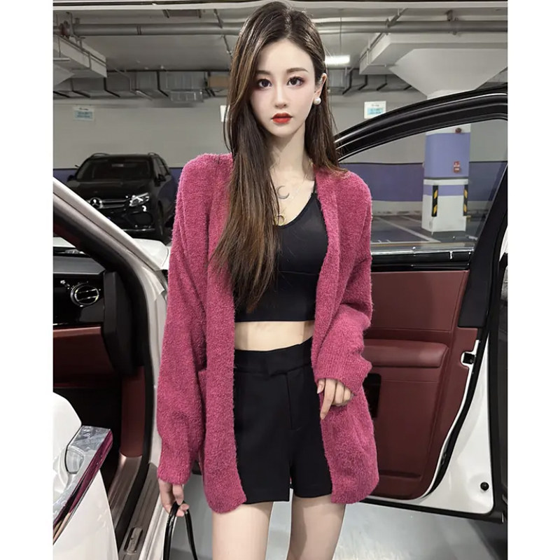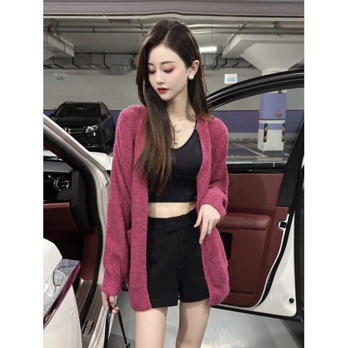 法式氣質玫紅色長袖針織開衫外套女秋季2025女裝新款時尚慵懶毛衣