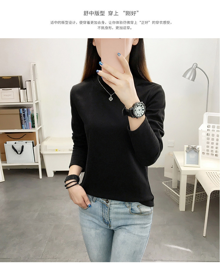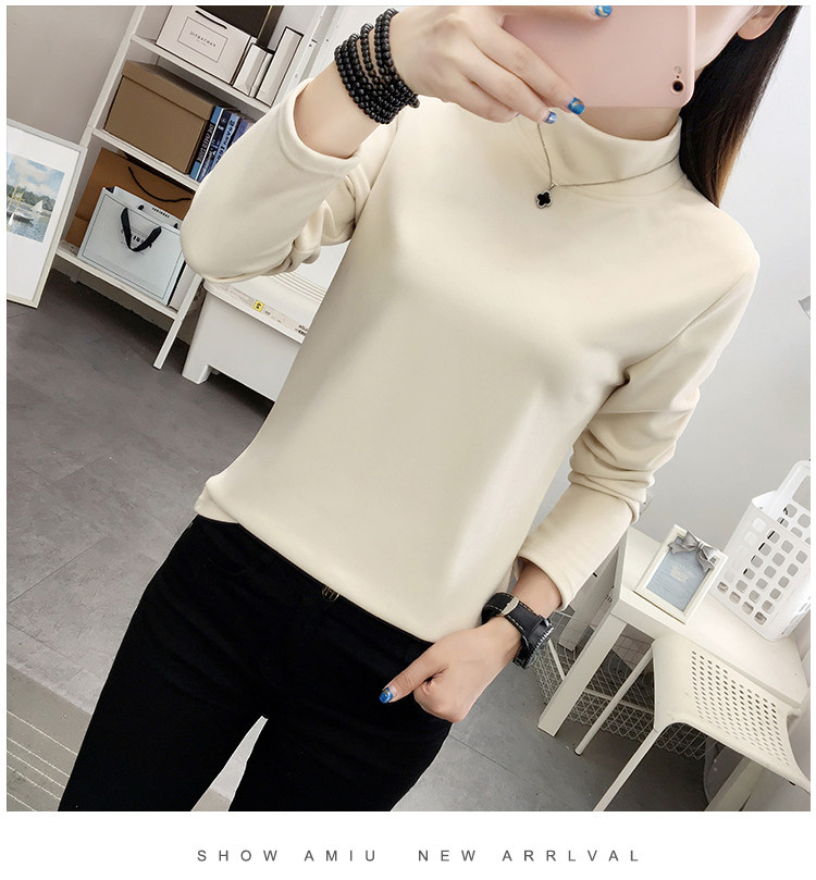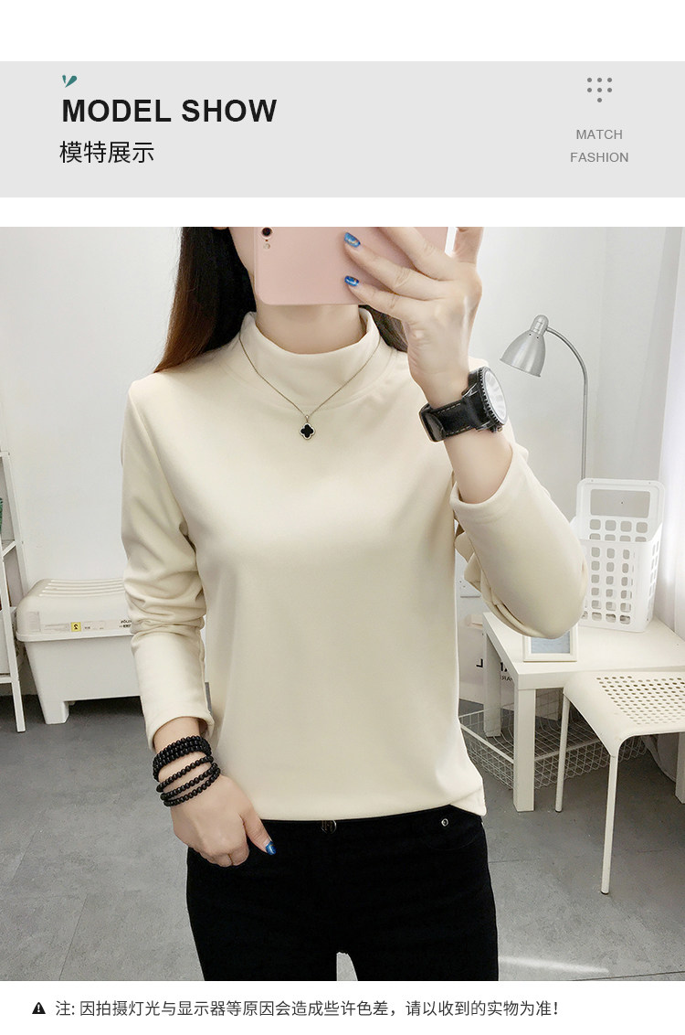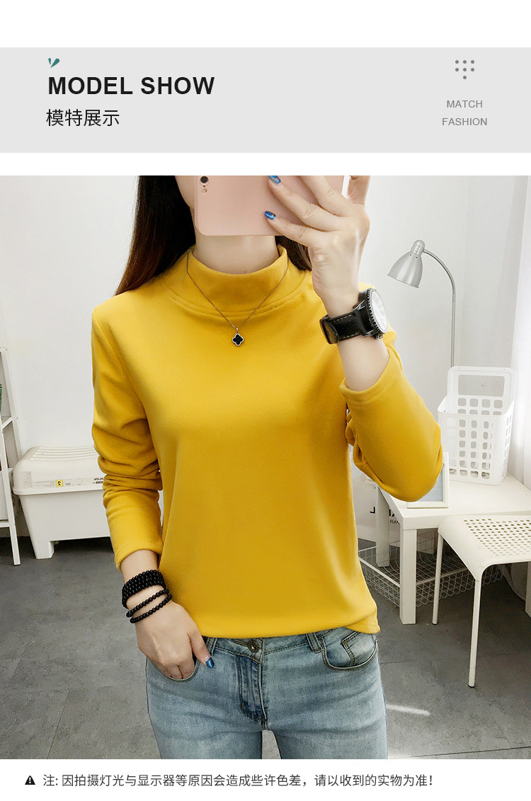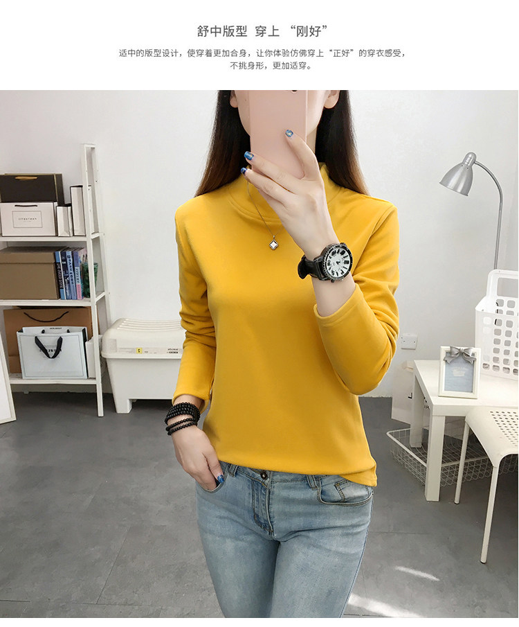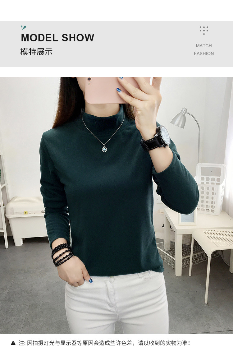 德絨高領打底衫女秋冬百搭加絨加厚保暖內搭修身媽媽純色長袖上衣