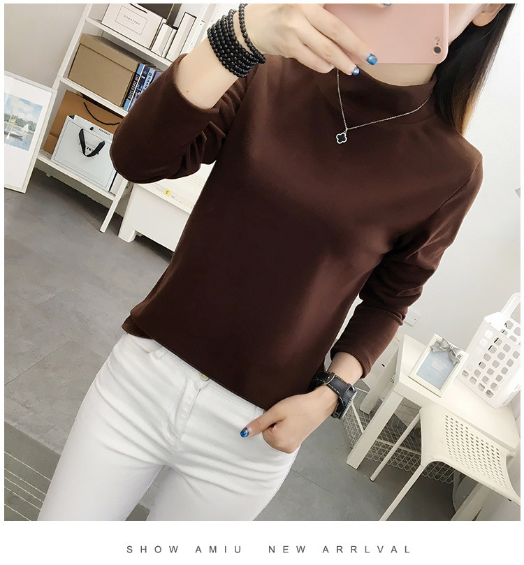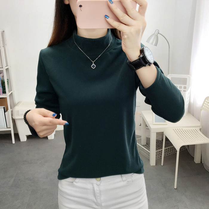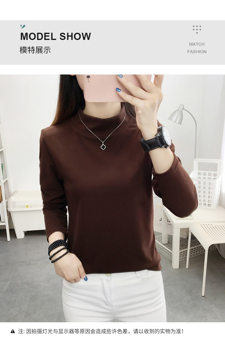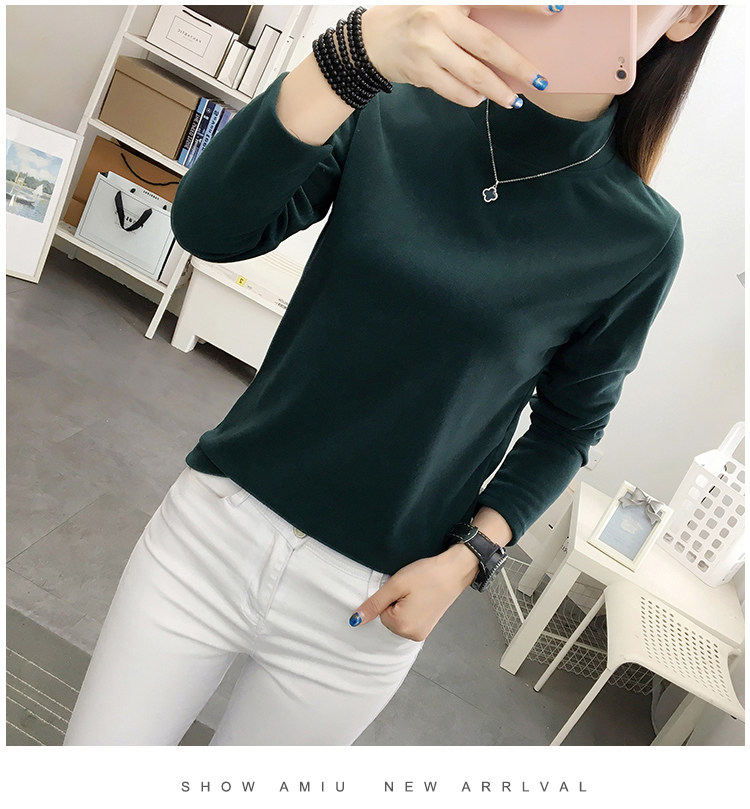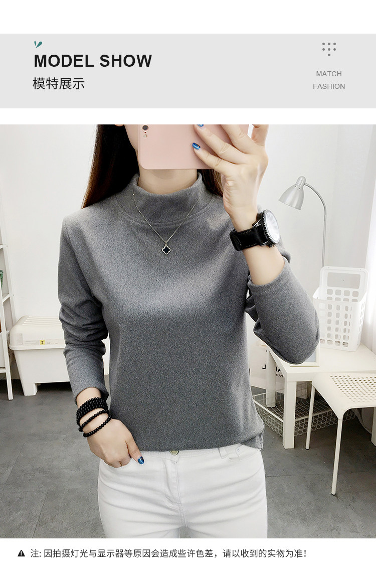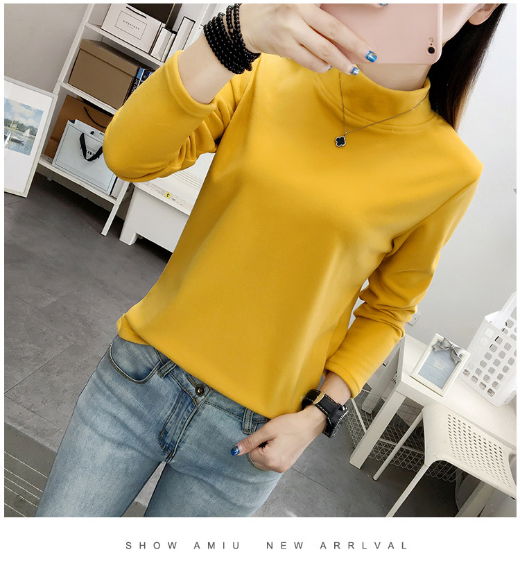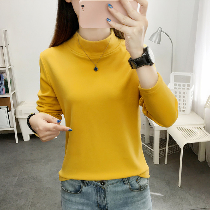 德絨高領打底衫女秋冬百搭加絨加厚保暖內搭修身媽媽純色長袖上衣